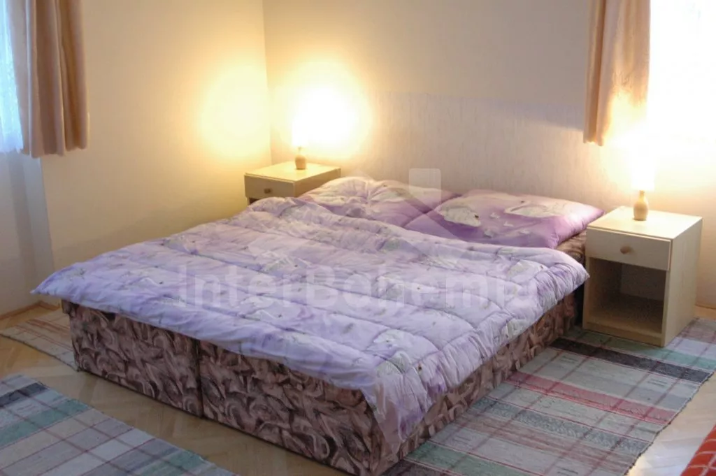 Volně stojící, prostorná vila k samostatnému obývání, komfortně zařízená. Vchod, malá chodba a hala. Obývací místnost, sedací souprava, jídelní stůl a televize se satelitním příjmem. Kuchyně, malý jídelní stůl pro 2 osoby, lednice, elektrický sporák, kávovar a varná konvice. Koupelna s vanou, WC zvlášť. Ložnice s dvojlůžkem a posezením, druhá ložnice se dvěma rozkládacími lůžky. Nahoře je ložnice s dvojlůžkem a balkon a ložnice se dvěma rozkládacími lůžky. Druhá koupelna s vanou, WC zvlášť. Velká oplocená zahrada, zahradní nábytek se slunečníkem, přenosný gril a ohniště. Vlastní parkoviště a garáž pro 2 auta. Plynové ústřední topení.