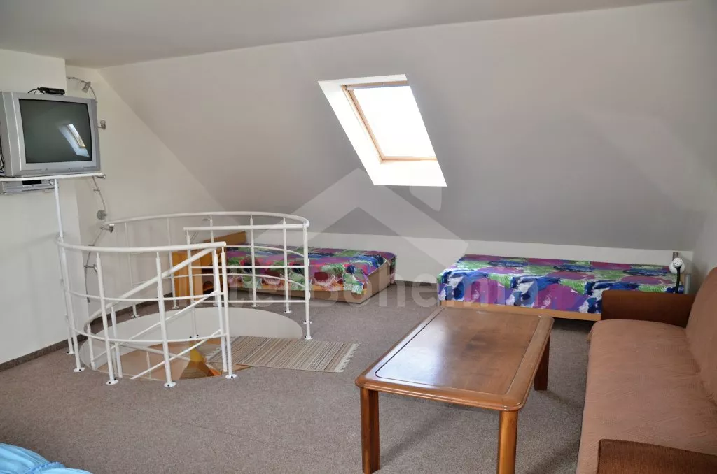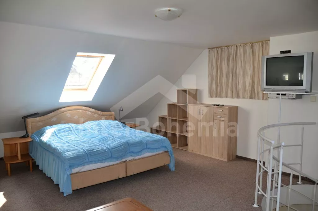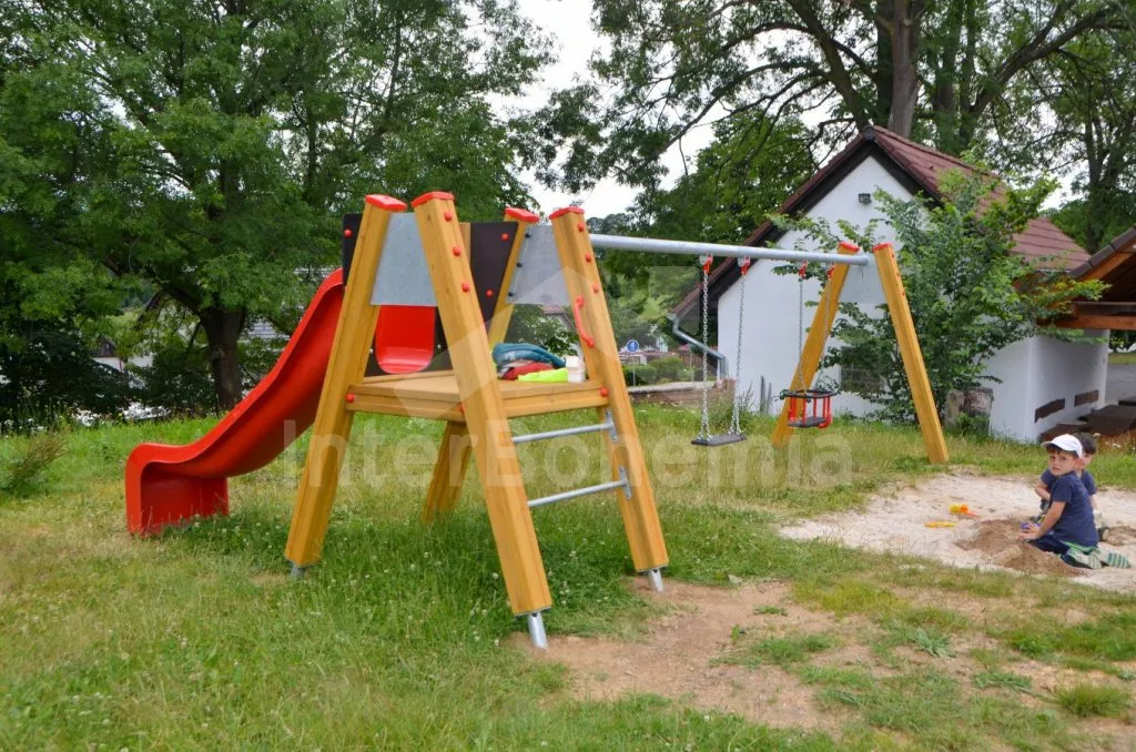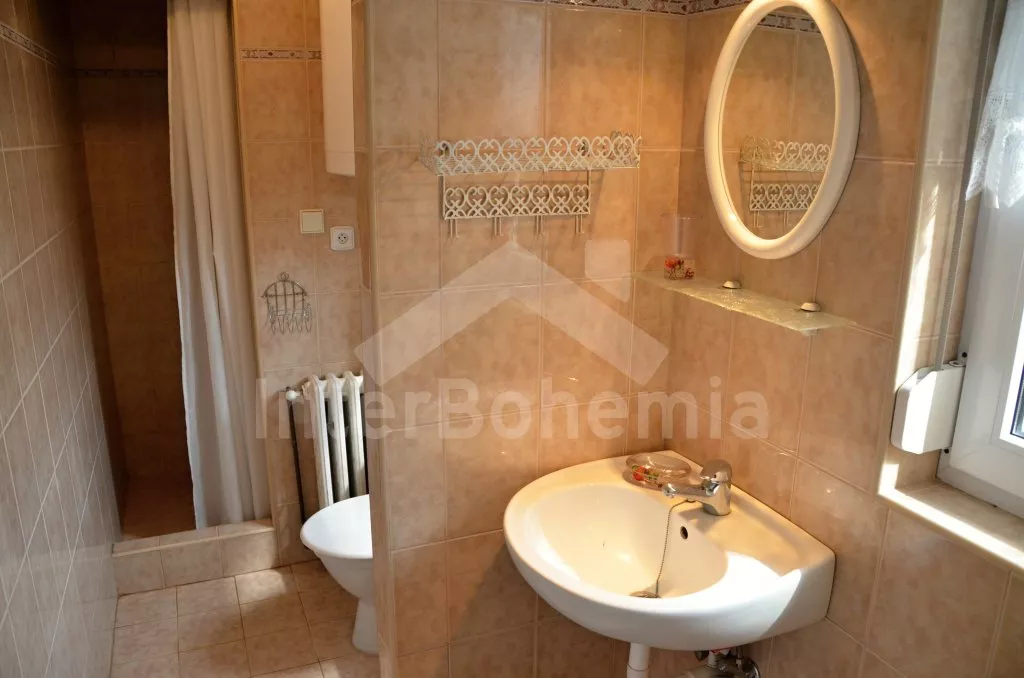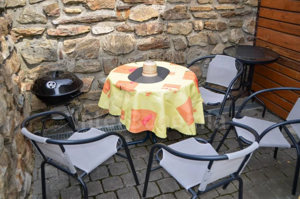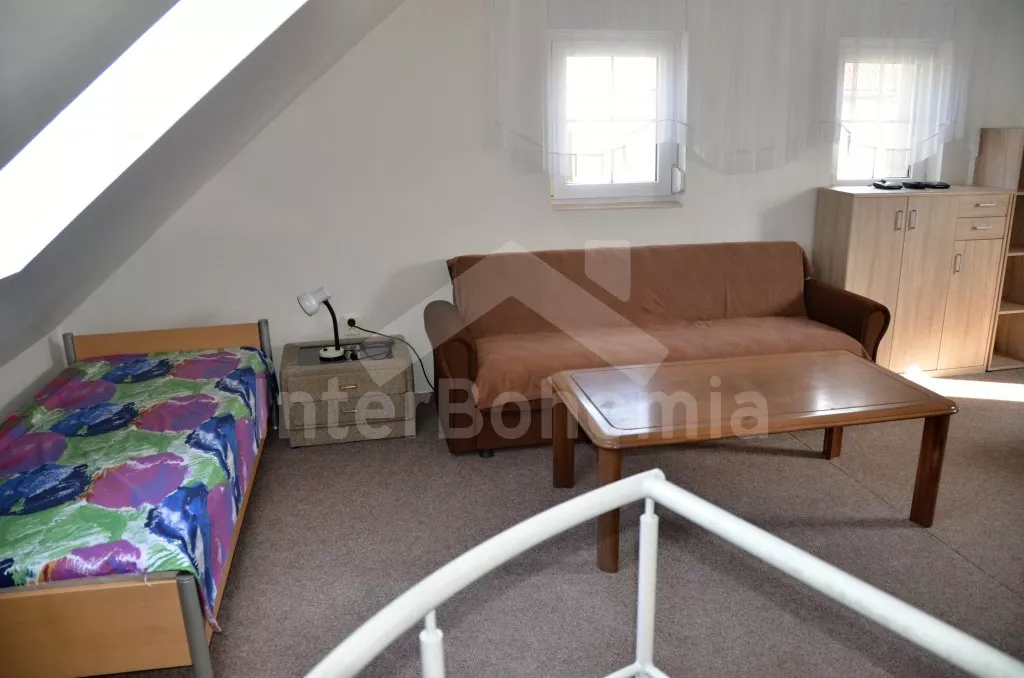 Volně stojící rekreační domek, po rekonstrukci v roce 2015, pěkně a pohodlně zařízený. Vstup, zádveří, obývací pokoj s posezením, krbovými kamny, barem a kuchyňským koutem s elektrickou varnou deskou, mikrovlnnou troubou, chladničkou a varnou konvicí. Koupelna s toaletou, sprchovým koutem a umyvadlem. Po točitém schodišti vystoupáte do prvního patra, které slouží jako velmi prostorná obývací ložnice s posezením (gauč slouží také jako menší přistýlka), TV, jedním dvojlůžkem a dvěma samostatnými postelemi. Objekt je vytápěn centrálně a krbovými kamny. Dům stojí na vlastním pozemku ještě s domem pronajímatele, k dispozici je venkovní posezení a přenosný gril. Parkování před objektem a na pozemku.