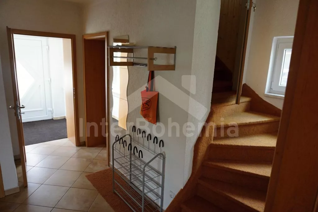 Volně stojící venkovský domek, v roce 2009 kompletně hezky zrenovovaný, dobře a pohodlně zařízený. Vstup, hala, obývací pokoj se sedací soupravou (zároveň rozkládací lůžko – 1,5 lůžka), krbovými kamny a televizí s DVD. Moderní kuchyně s jídelním stolem, elektrickým sporákem, lednicí, kávovarem, varnou konvicí a mikrovlnnou troubou. Ložnice s dvojlůžkem a možností jedné přistýlky (matrace na zemi). Koupelna se sprchou a samostatná toaleta. V horním patře se nachází obývací pokoj/ložnice s rozkládací pohovkou - dvojlůžkem, jednou přistýlkou (1,5 lůžka) a TV. Ložnice s dvojlůžkem. Koupelna se sprchou a toaletou. Ústřední vytápění krbovými kamny a vytápění na topný olej. Zahrada je částečně oplocená, vjezd s pojížděcí bránou. K dispozici je zahradní nábytek se slunečníkem, přenosný gril, pískoviště a stůl na ping pong.