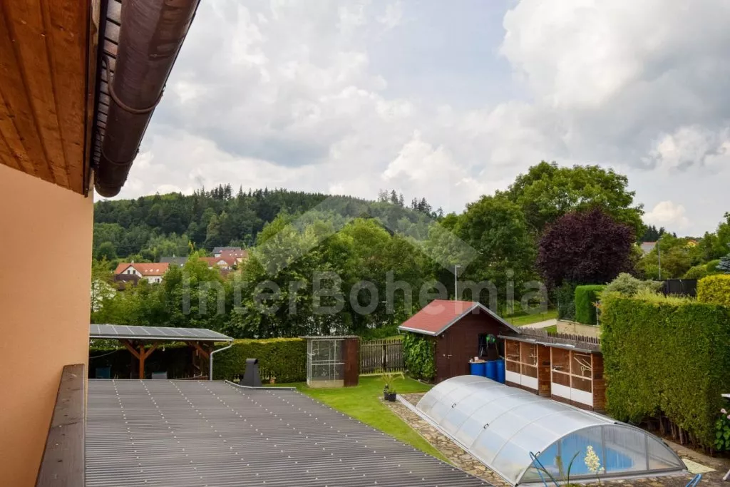 Krásné prostředí (město Prachatice a okolí), vybavení objektu (terasa s grilem, bazén...).
