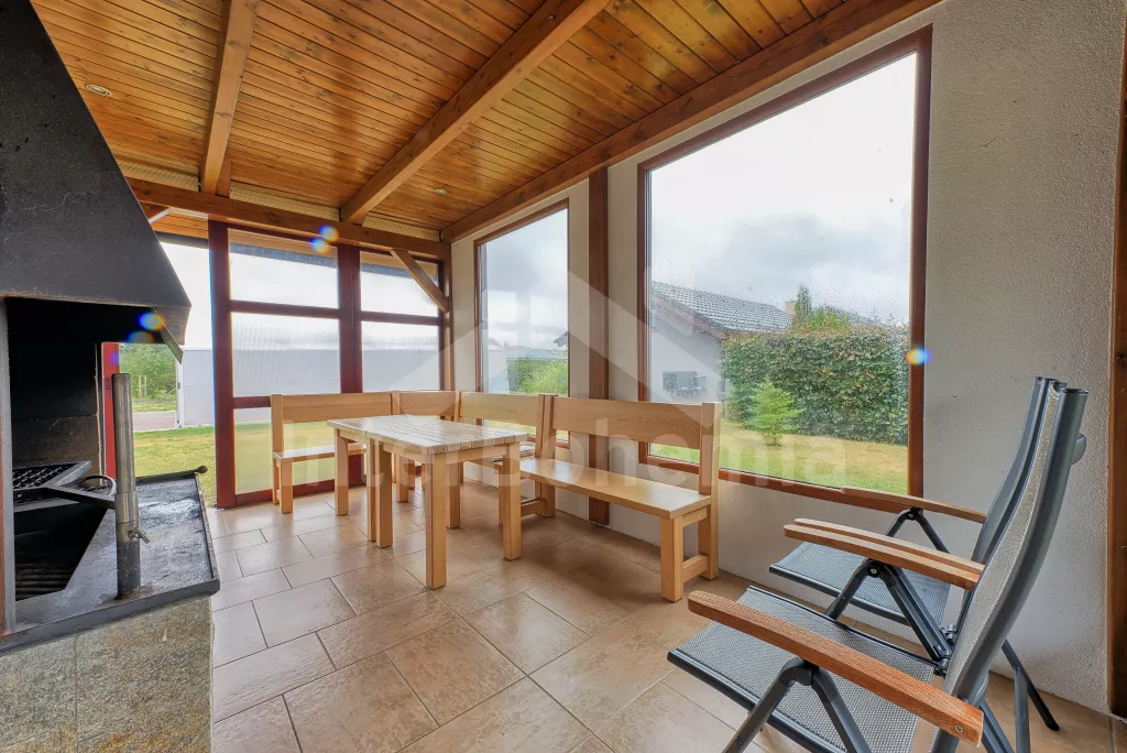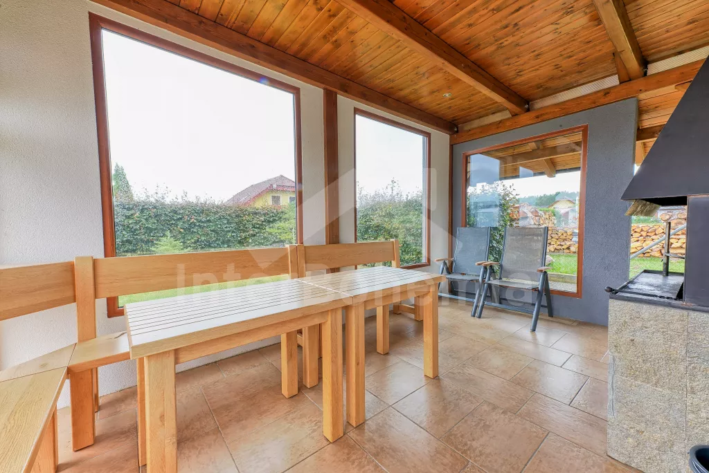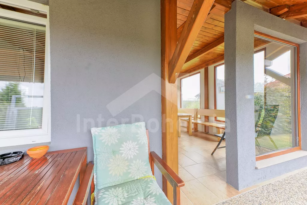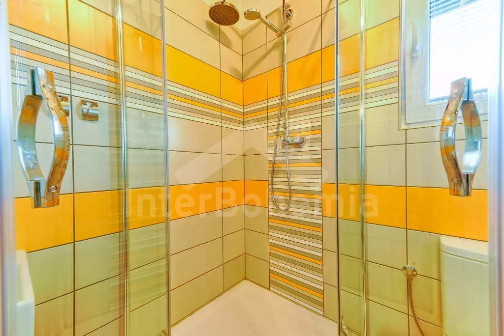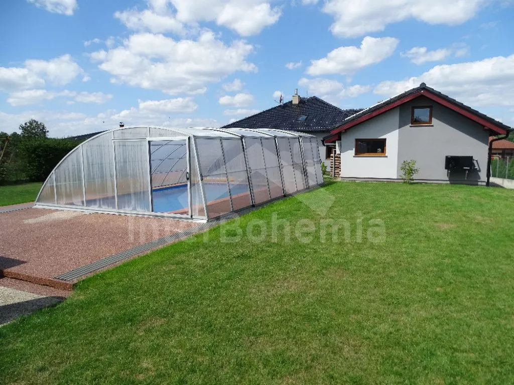 Malý rodinný bungalov, 48 m2, novostavba z roku 2014, kompletně, moderně a luxusně zařízený. Vstup přímo do obývací kuchyně s jídelním stolem pro dva, lednicí, varnou deskou, malou troubou, myčkou nádobí, kávovarem a mikrovlnnou troubou. Ložnice s manželskou postelí a TV se satelitním příjmem a DVD. Koupelna se sprchovým koutem a WC. Elektrické topení. Terasa s posezením (stůl s lavičkami), zahradním krbem a přístupem do oplocené zahrady se zahradním nábytkem se slunečníkem. Soukromý bazén s osvětlením a zastřešením. Soukromé parkoviště. Po domluvě s majitelem lze také pronajmout garáž.