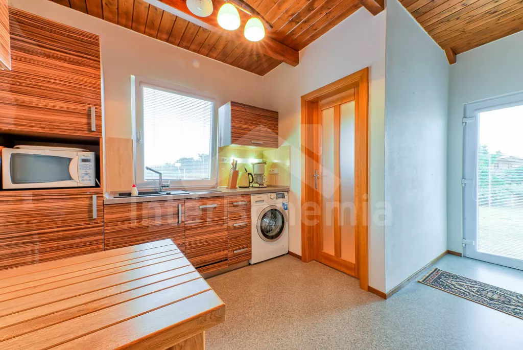 Malý rodinný bungalov, 48 m2, novostavba z roku 2014, kompletně, moderně a luxusně zařízený. Vstup přímo do obývací kuchyně s jídelním stolem pro dva, lednicí, varnou deskou, malou troubou, myčkou… Více informací