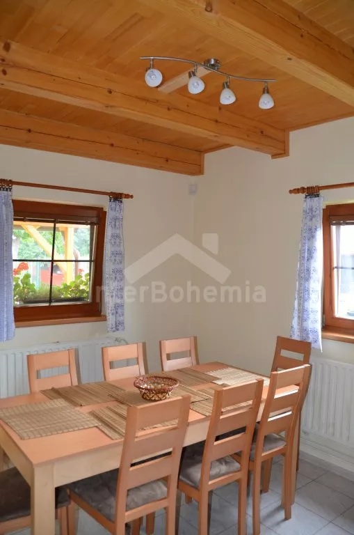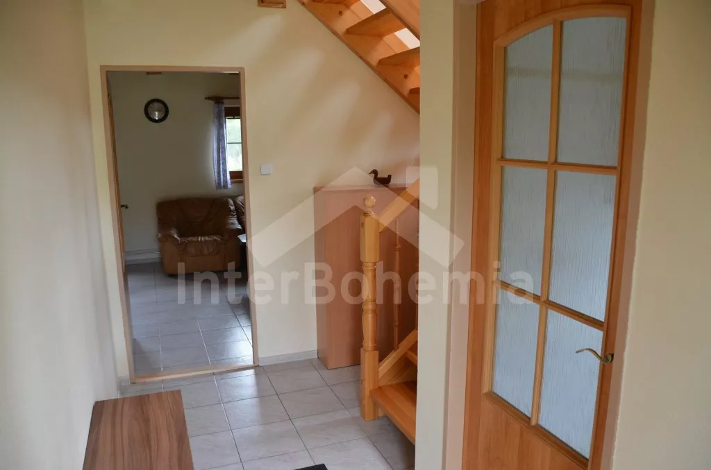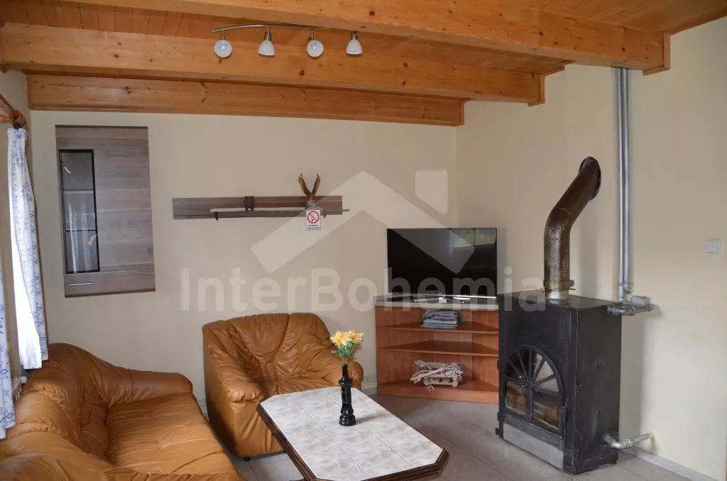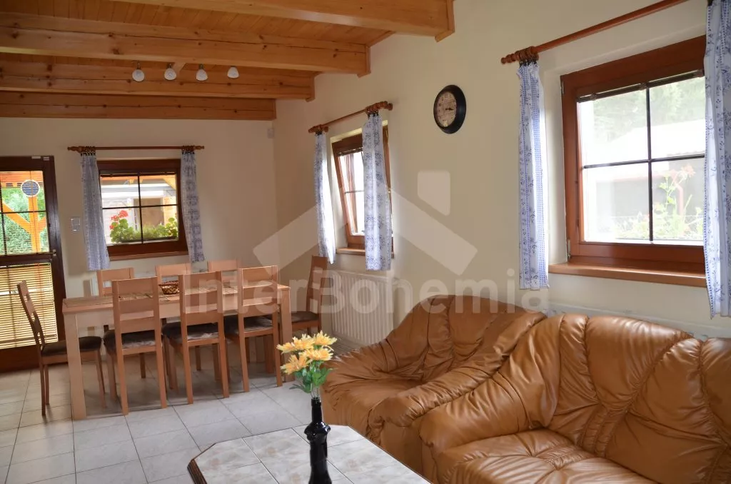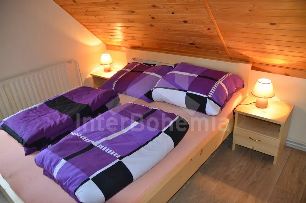 Volně stojící domek s vlastní, oplocenou zahradou. Vstup, prostorný obývací pokoj se 2 pohovkami, kamny, jídelním stolem pro 4 osoby, televizí, spojený s kuchyní se sporákem, troubou a chladničkou. Z obývacího pokoje je přímý vstup na terasu a zahradu. V přízemí dále prostorná koupelna se sprchovým koutem a wc, v prvním patře 3 samostatné ložnice, první s dvoulůžkem, druhá s dvoulůžkem a dvěma jednolůžky, třetí s dvěma jednolůžky. Možnost 2 přistýlek. Vytápění řešeno kamny. K objektu náleží prostorná oplocená zahrada s terasou, k dispozici je také vířivá vana, gril a posezení u ohně. Parkování na vlastním oploceném pozemku.