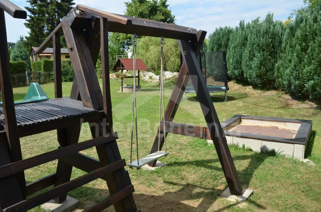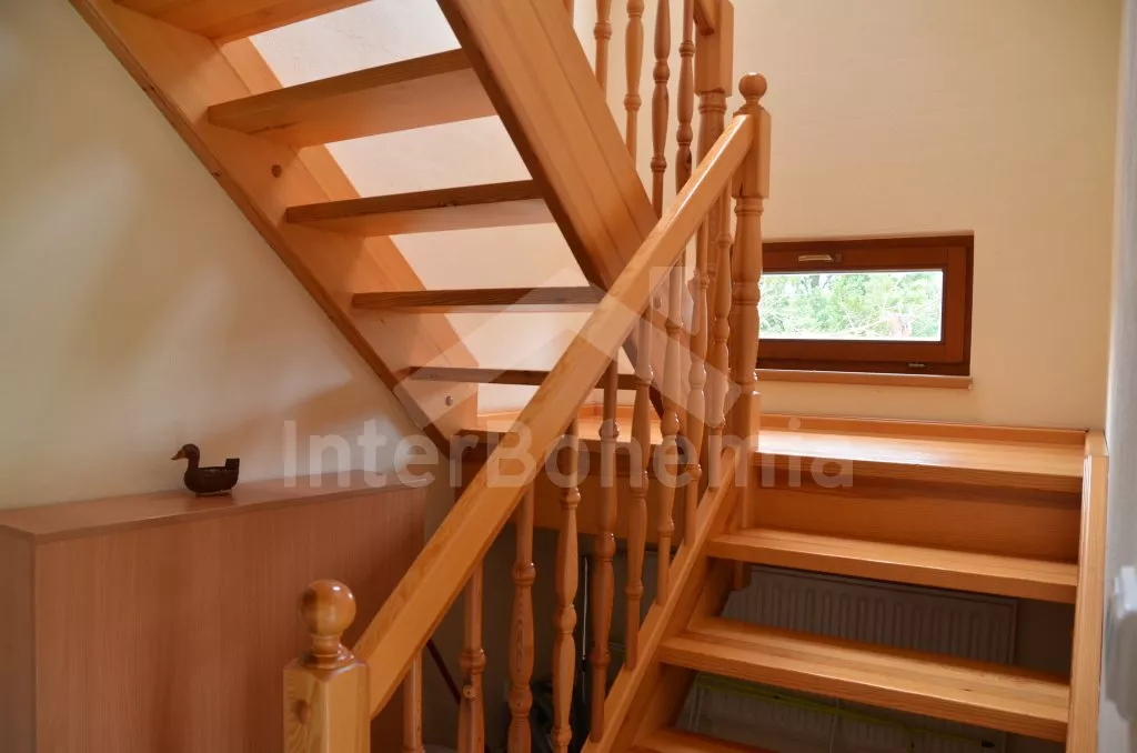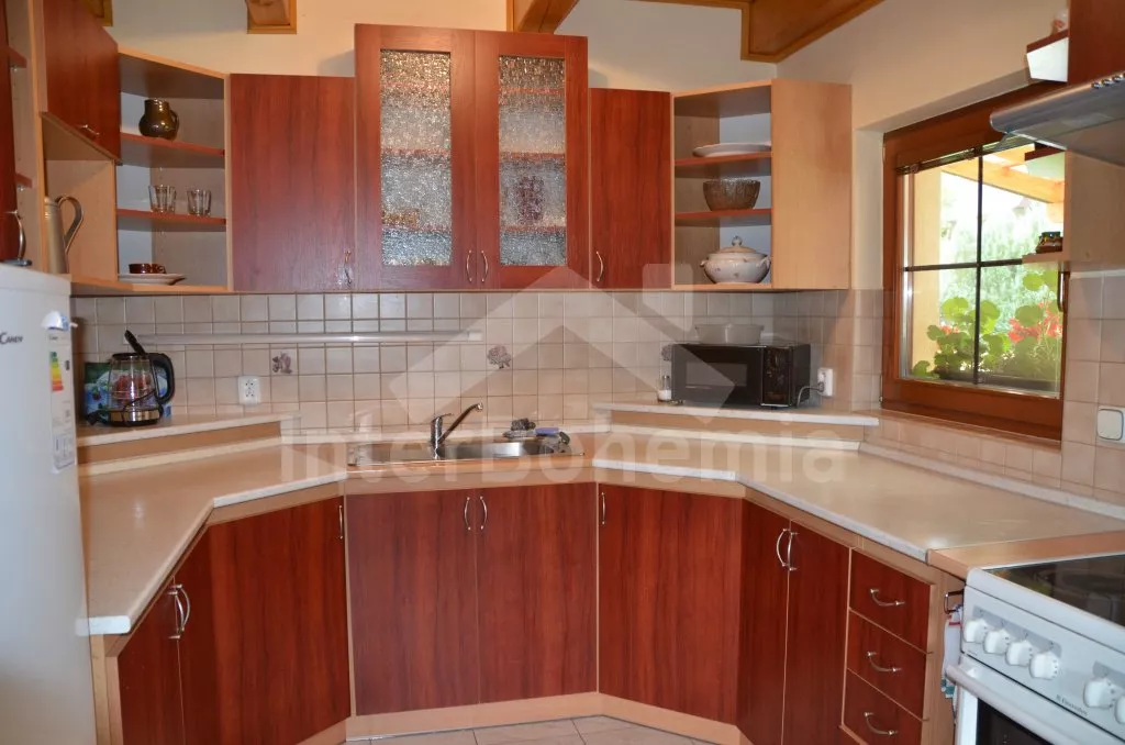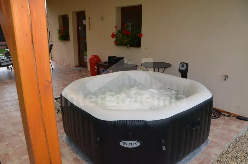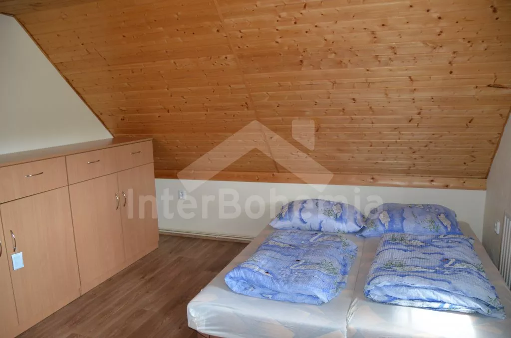 Volně stojící domek s vlastní, oplocenou zahradou. Vstup, prostorný obývací pokoj se 2 pohovkami, kamny, jídelním stolem pro 4 osoby, televizí, spojený s kuchyní se sporákem, troubou a chladničkou. Z obývacího pokoje je přímý vstup na terasu a zahradu. V přízemí dále prostorná koupelna se sprchovým koutem a wc, v prvním patře 3 samostatné ložnice, první s dvoulůžkem, druhá s dvoulůžkem a dvěma jednolůžky, třetí s dvěma jednolůžky. Možnost 2 přistýlek. Vytápění řešeno kamny. K objektu náleží prostorná oplocená zahrada s terasou, k dispozici je také vířivá vana, gril a posezení u ohně. Parkování na vlastním oploceném pozemku.
