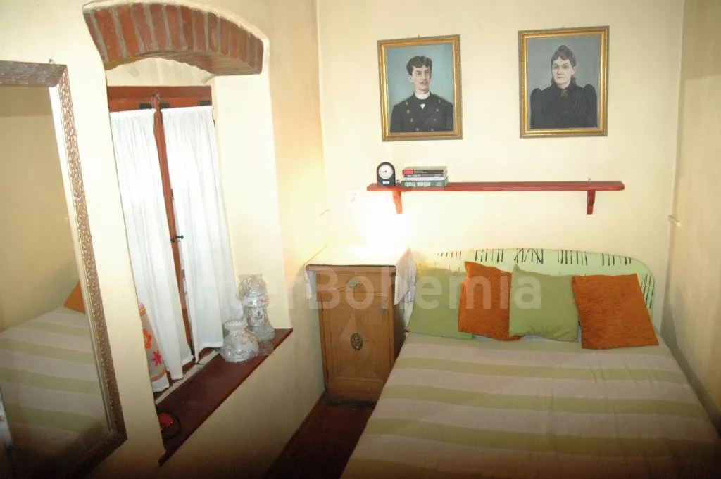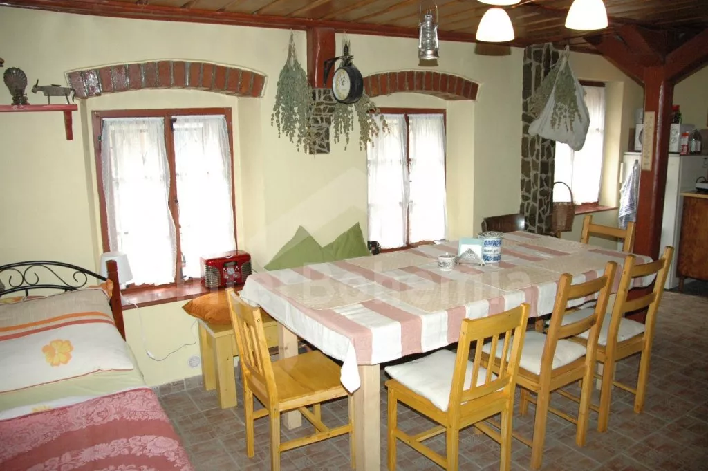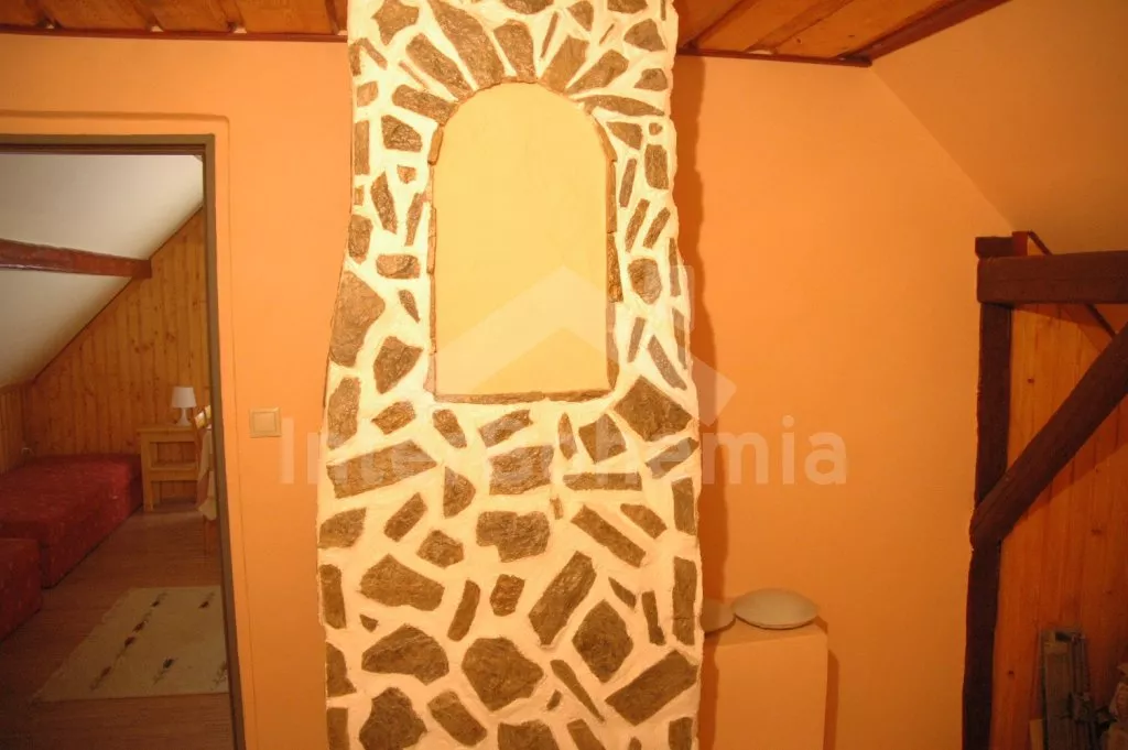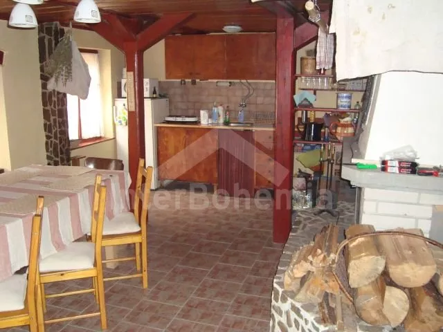 Freistehendes Landeshaus, im Jahre 2006 zum Teil renoviert, einfach aber gemütlich eingerichtet. Eingang, Flur, Wohnzimmer mit grossem Esstisch (8 Personen), Kamin, TV mit DVD und einem Einzelbett. Einfache offene Küche mit zwei Kochplatten, Kühlschrank, Schnellkochkanne und Mikrowelle. Hinter einem Vorhang steht Couch – Bett für 2 Personen (125 cm breit). Badezimmer mit Dusche und Toilette. In Oberstock befindet sich kleine Halle und geraumes Schlafzimmer mit zwei Doppelbetten, zwei Einzelbetten und eine Extrabettmöglichkeit. Heizung mit Kamin. Geräumiger Garten ist umzäunt, zur Verfügung steht Gartenmöbel – Holztisch und Bänke, übertragbarer Grill, Feuerstelle und Sandkasten. Eigener Parkplatz.