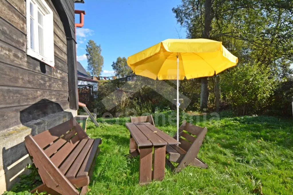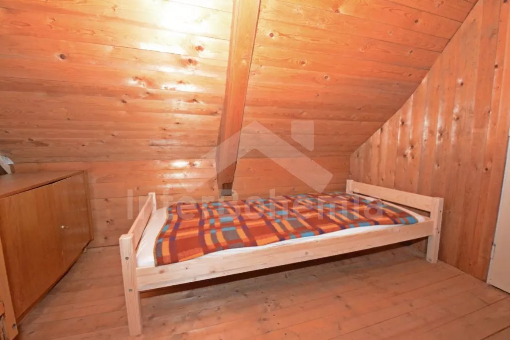Freistehendes Ferienhaus auf einem eigenen, teilweise umzäunten Garten, im Jahr 2019 renoviert. Eingang, Wohnzimmer mit Küchenzeile verbunden. Küche mit Zwei-Platten-Elektroherd, Mikrowelle, Kühlschrank mit Gefrierfach, Wasserkocher und Geschirr. Das Wohnzimmer verfügt über einen Esstisch für 6 Personen, ein Sofa und einen Kamin. Im Dachgeschoss befinden sich 2 Schlafzimmer, jeweils mit einem Doppelbett und einem Einzelbett. Im Erdgeschoss neues Badezimmer mit Dusche, Waschbecken und Toilette. Interessant sind Originaldusche und Trockentoilette, beide voll funktionsfähig. Heizung Hüttenofen mit Heißluftverteilung. Ein hölzerner Gartensitzbereich und ein tragbarer Grill stehen Ihnen zur Verfügung. Parken auf dem Grundstück beim Ferienhaus für 3 Autos.