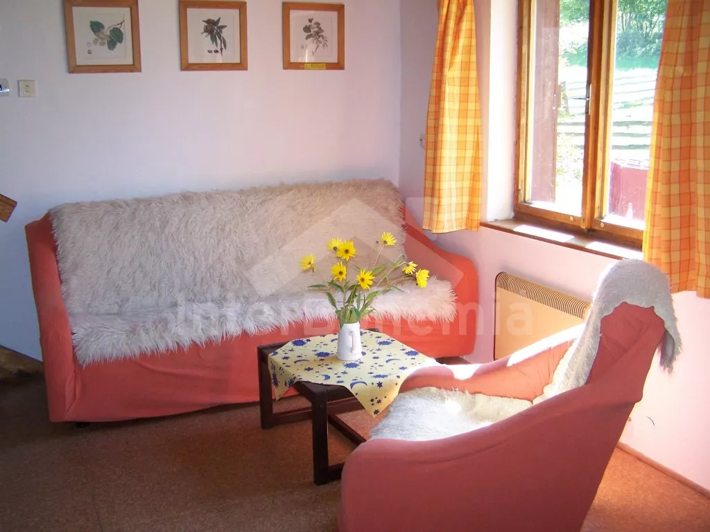 Freistehendes Berghaus. Eingang über Veranda, Flur, Raum für Ski- oder Fahrradeinlagerung. Wohnzimmer mit Essecke, Couch (dient zugleich als ein Klappextrabett – 1,5 Bett), Sat-TV und Kaminofen. Offene Küche mit Elektroherd, Kühlschrank, Schnellkochkanne und Mikrowelle. Badezimmer mit Dusche, separate Toilette. In Oberstock befinden sich zwei Schlafzimmer – ein mit einem Doppelbett und einem Einzelbett und zweites mit drei Einzelbetten. Elektrische Heizung. Haus steht auf eigenem nicht umzäuntem Grundstück, zur Verfügung steht Gartenmöbel, übertragbarer Grill und Feuerstelle. Garage und eigener Parkplatz.