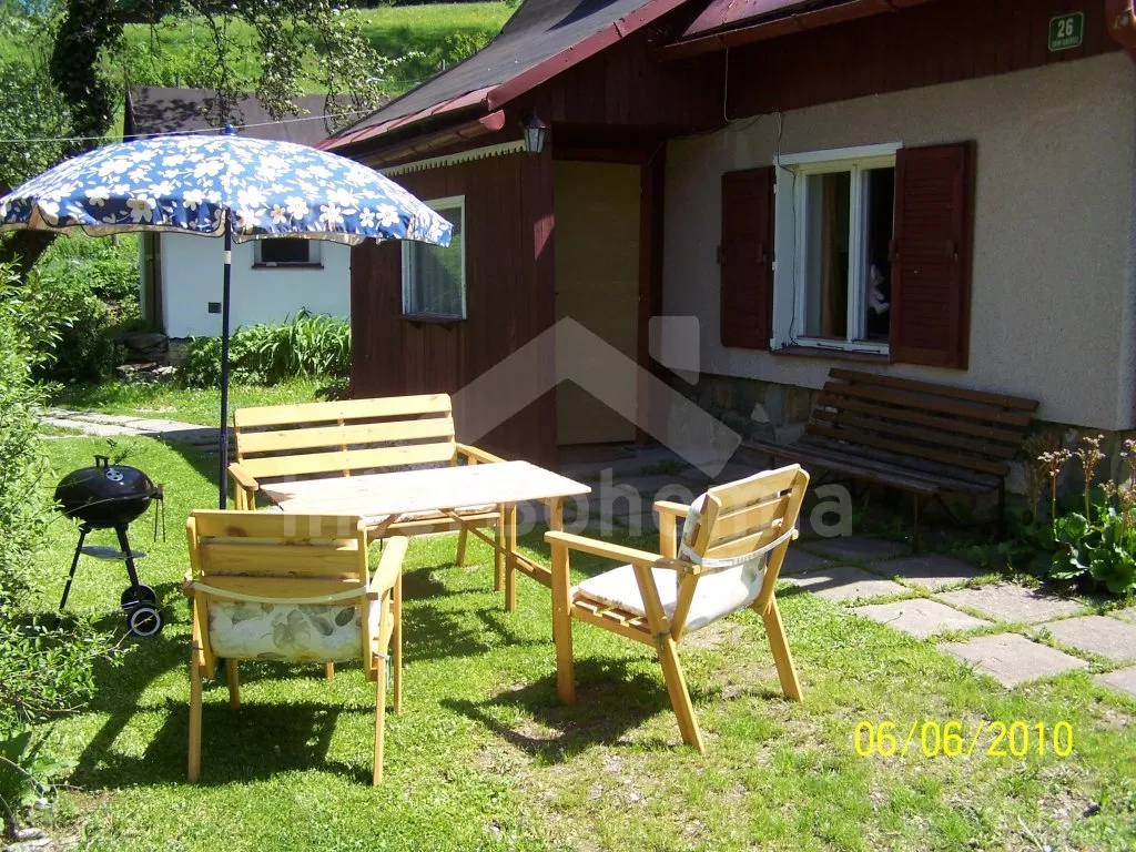 In Riesengebirge, inmitten des Nationalparks – des Naturschutzgebietes mit herrlichen Landschaftszenerien, vielen Bergen, Bergwiesen und tiefen Wäldern. Berghütte steht am Rande des Dorfes Dolni Alberice (in unmittelbarer Umgebung gibt es nur 1 anderes Berghaus) – Dorf ist etwa 3 km lang und da und dort stehen zerstreut einsame Berghäuser. Dorf befindet sich ca. 7 km nördlich von Städtchen Svoboda nad Upou und ca. 19 km nördlich von Stadt Trutnov. Haus steht in einer Böschung, in einer Seehöhe von etwa 670 m über dem Meeresspiegel, am Wald, mit herrlicher Aussicht in Umgebung, auf bewaldete Berge, Wiesen und ins Tal. Sehr ruhiger Platz, Sie werden nur von singenden Vögeln und rauschenem Bach gestört, der aus dem Berg ca. 30 m vom Haus fliesst. Gegenüber dem Haus grasen die Schafen. Ideal für diejenigen, die sich nach Ruhe im Arm der einzigartigen, wunderschönen Berglandschaft sehen. Umgebung bietet gute Bedingungen für Bergtouristik, Radfahren und Unternehmen von verschiedenen Ausflügen – z. B. Seilbahn zu dem höchsten Gipfel des Riesengebirges sowie der Tschechischen Republik Snezka (1602 m) in Pec pod Snezkou 11 km, Safari-Tiergarten in Dvur Kralove nad Labem 39 km, Schauflüge auf Sportflughafen Lanov 23 km.