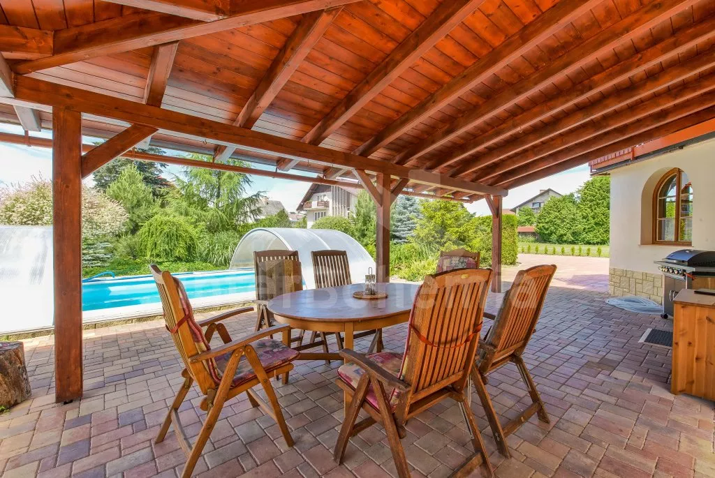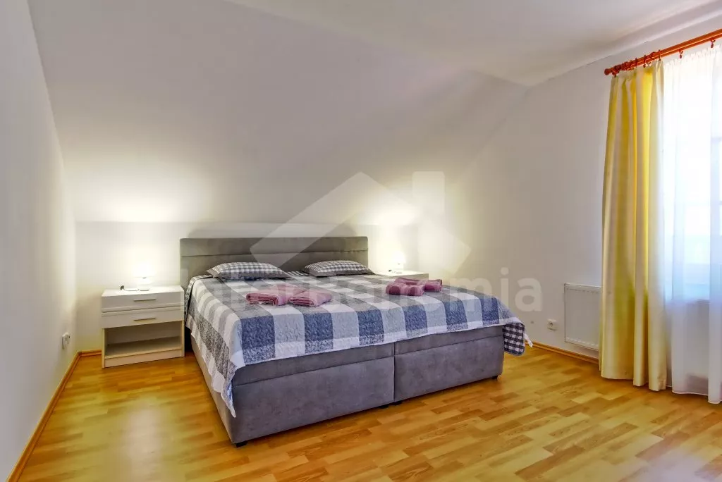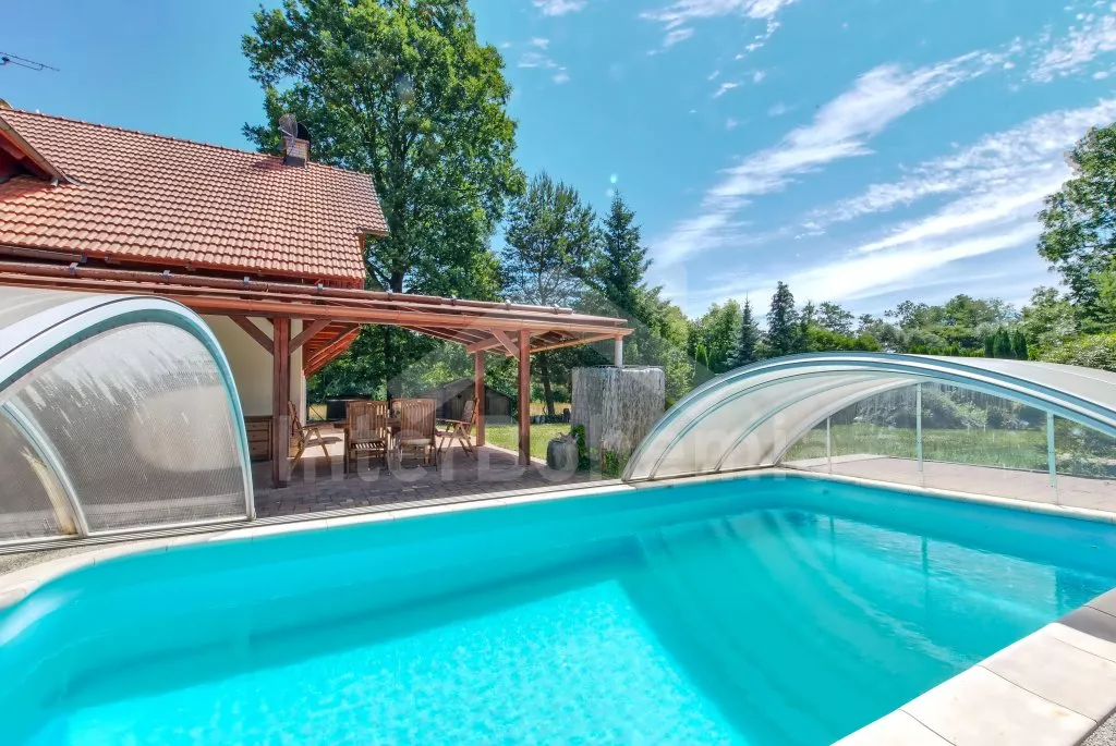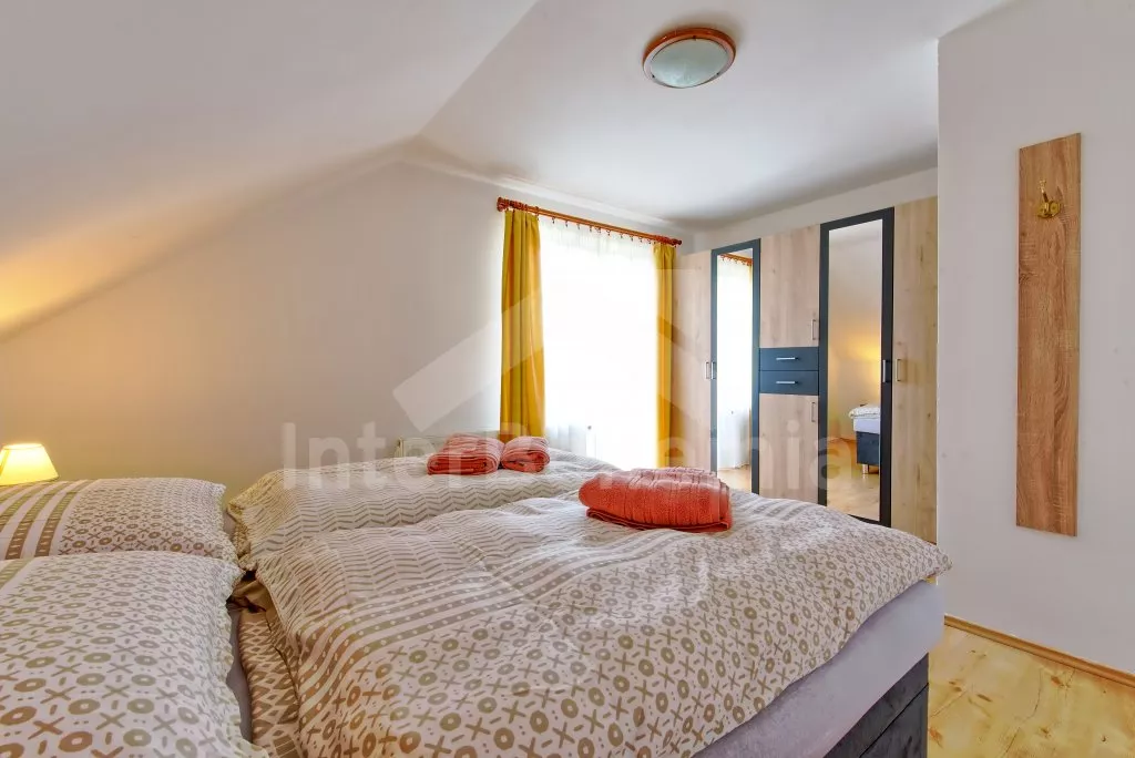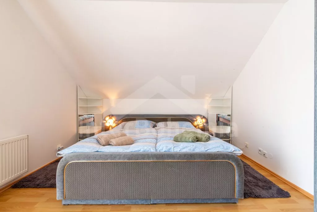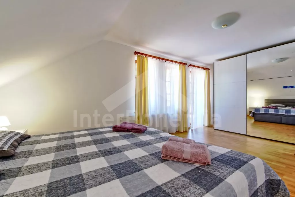 Ein geräumiges Haus mit einem großen eingezäunten Garten, Sträuchern und altem Baumbestand für Privatsphäre, einer großzügigen Terrasse und einem unterirdischen Pool mit Dach. Im Erdgeschoss eine voll ausgestattete Küche mit Herd, Gasherd, Backofen, Mikrowelle, Kühlschrank, Gefrierschrank, Geschirrspüler, Wasserkocher und anderen Kleingeräten. Ein Esszimmer mit einem Esstisch für 8 Personen und einem LED-TV, das durch ein Wohnzimmer mit einer Sofagarnitur, einem intelligenten LED-TV und einem dekorativen Kamin verbunden ist. Erstes Badezimmer mit Dusche über der Badewanne und Waschbecken. Separates WC. Insgesamt 4 Schlafzimmer im Dachgeschoss. Die ersten drei Schlafzimmer mit Doppelbetten. Viertes Schlafzimmer mit zwei Einzelbetten und Sitzecke. Alle Schlafzimmer haben Zugang zum Balkon. Im Dachgeschoss befindet sich auch ein zweites Badezimmer mit Dusche, zwei Waschbecken und einer Toilette. Separate dritte Toilette. Beheizung des Hauses zentral mit Gas. Den Gästen steht ein riesiger, vollständig eingezäunter Garten, eine überdachte Sitzecke mit Gartengrill, ein unterirdischer Pool mit Dach und eine Feuerstelle mit Sitzgelegenheiten zur Verfügung. Möglichkeit des Garagenparkens für 2 Fahrzeuge (bewacht durch eine Überwachungskamera) auf dem Grundstück.