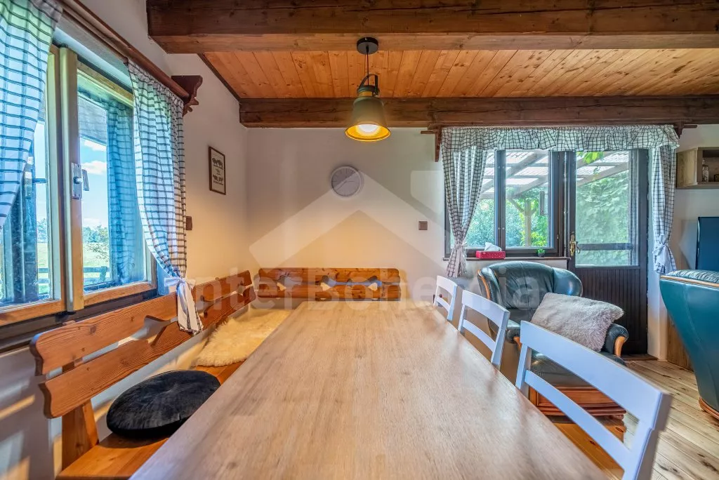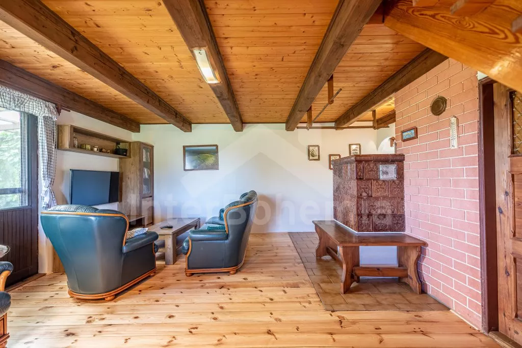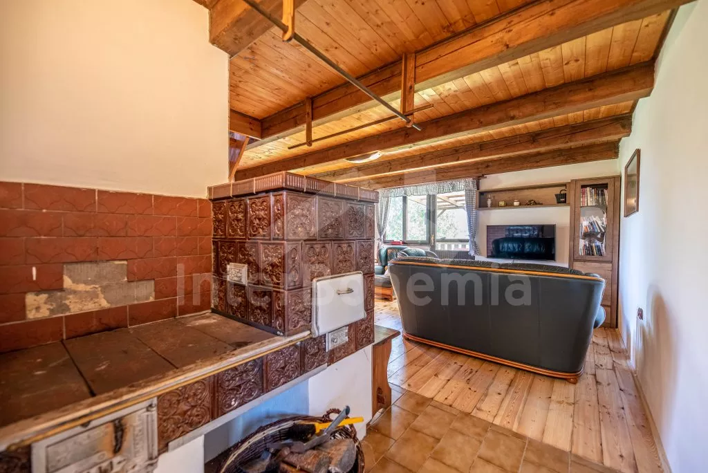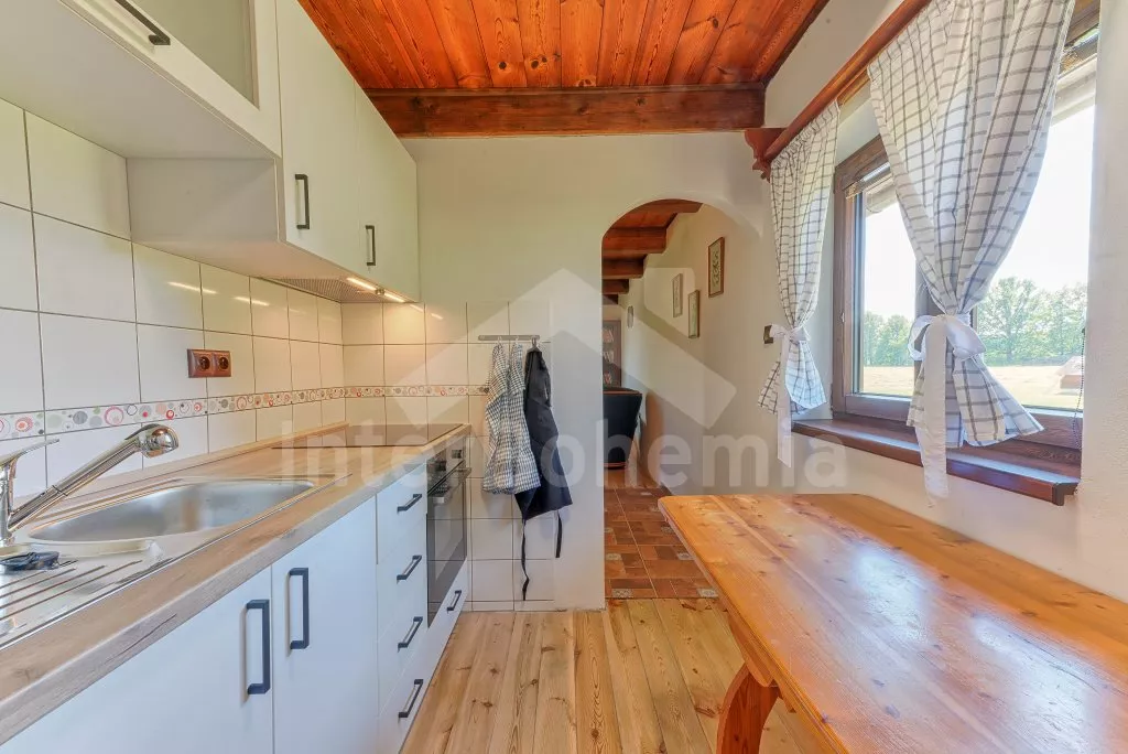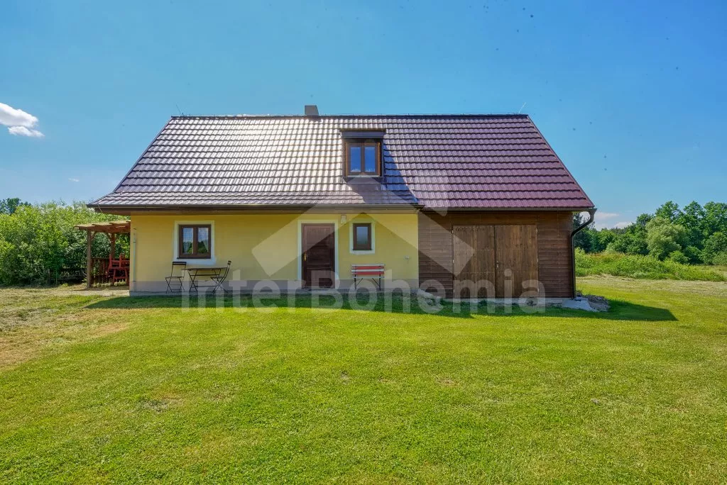 In Südböhmen, fast in einer Öde (in der Nachbarschaft sind nur 2 weitere Häuser 80 m und 150 m), in der Nähe der Gemeinde Janovka, ca. 4 km westlich von Stadt Nove Hrady und 20 km von Stadt Ceske Budejovice. Grenzübergang nach Österreich in Nove Hrady befindet sich 7 km, ein weiterer Grenzübergang in Ceske Velenice ist 20 km entfernt. Haus steht inmitten wunderschöner Landschaft mit herrlicher Aussicht in Umgebung, nahe des Waldes und zwischen zwei Teichen. Absolut ruhiger Ort mit völlige Privatheit, Sie werden nur von den singenden Vögeln und von den Wildstand gestört, der zu dem Haus grasen kommt. Umgebung ist ideal für schöne Spaziergänge, Radfahren (viele Radwege), Baden, Fischen und Besuche von verschieneden Sehenswürdigkeiten – Burgen Nove Hrady 4 km und Zumberk 5 km, Schlösser in Trebon 28 km und in Hluboka nad Vltavou (zwei Schlösser und Tiergarten) 28 km und historische Stadt Cesky Krumlov (städtisches Denkmalschutzgebiet) mit Schloss 40 km.