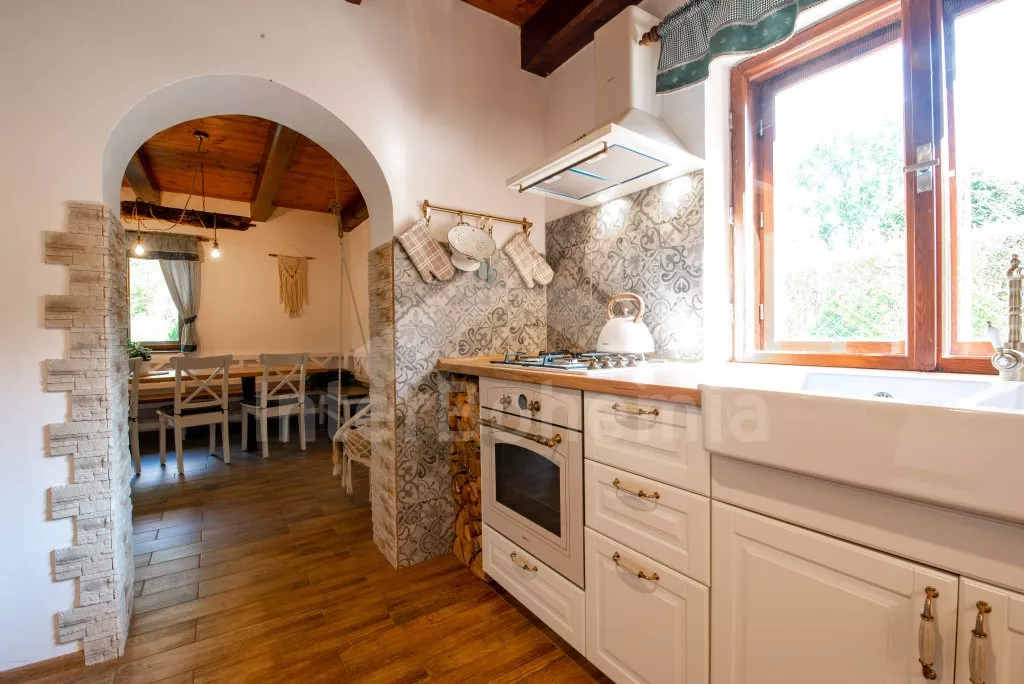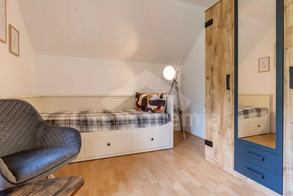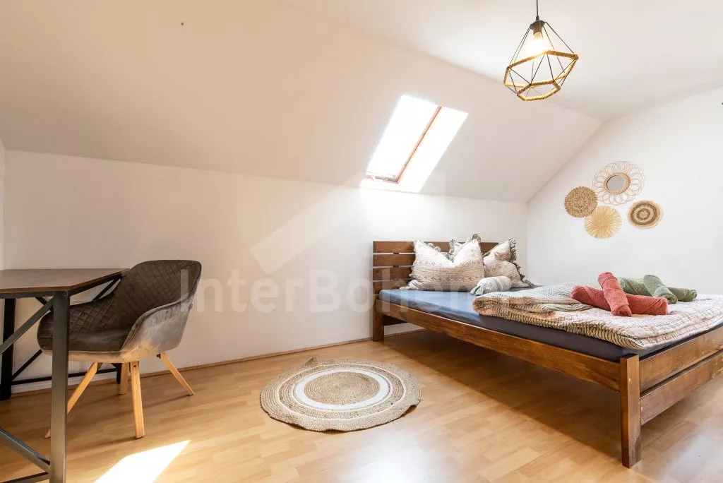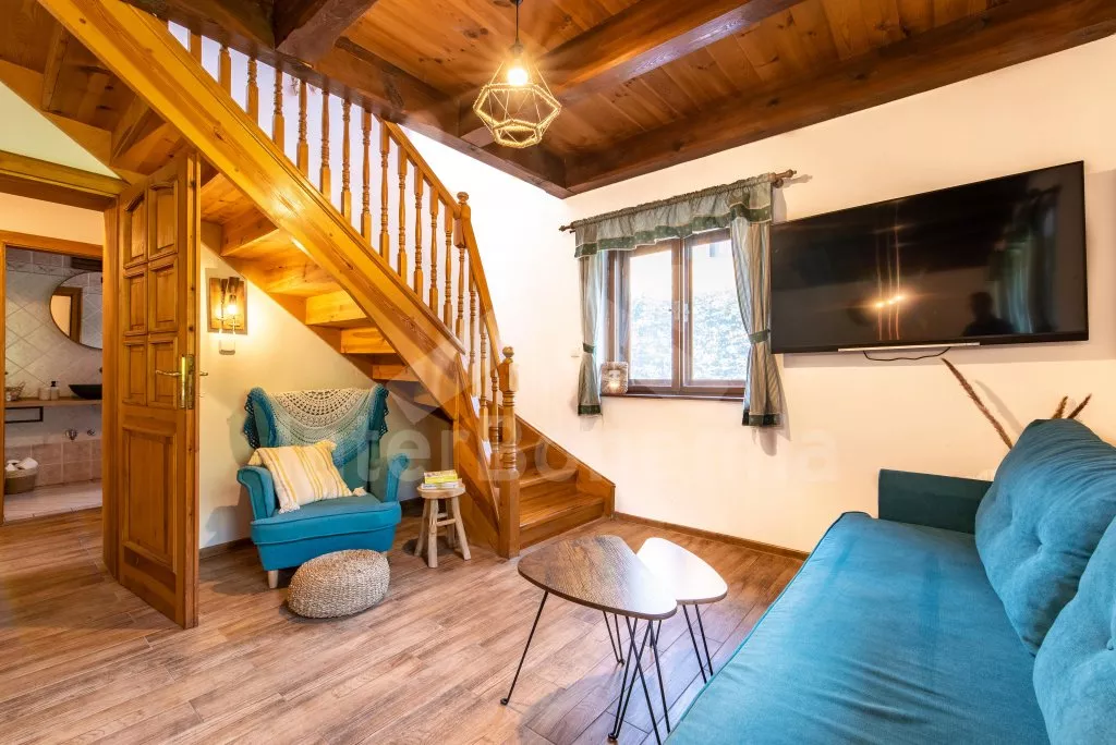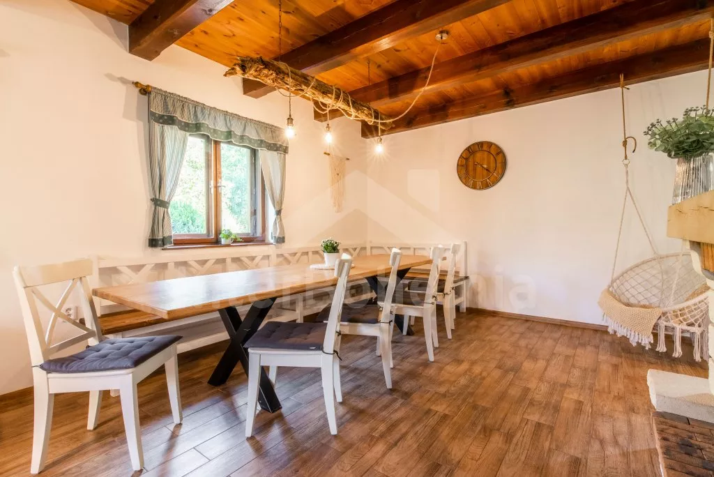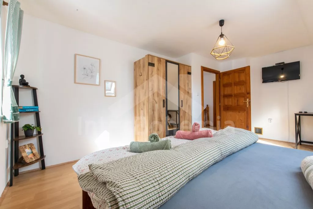 Ein Ferienhaus am Ufer des Flusses Lužnice, nach einer geschmackvollen Rekonstruktion im Jahr 2022, mit einem großen Garten und einer großen überdachten Pergola. Im Erdgeschoss ein Wohnzimmer mit einem Esstisch für 10 Personen, einem Sofa (ausklappbar zu einem Doppelbett 200x140 cm), einem Sessel, einer Schaukel, einem Kamin und einem an der Wand befestigten Fernseher. Küche mit Gasherd, Backofen, Mikrowelle, Kühlschrank, Gefrierschrank, Kaffeemaschine, Wasserkocher und Geschirrspüler. Badezimmer mit Dusche in der Badewanne, Waschbecken und Toilette. Hauswirtschaftsraum mit Waschmaschine. Insgesamt 3 Schlafzimmer im Dachgeschoss. Erstes und zweites Schlafzimmer mit Doppelbett, Schreibtisch und TV. Drittes Schlafzimmer mit einem Doppelbett, einem Einzelbett (ausklappbar zu einem normalen Doppelbett), einer Sitzecke und Zugang zu einem Balkon mit Blick auf den Fluss. Separate Toilette mit Waschbecken. Heizung des Gebäudes mit einem Kamin. Den Gästen steht ein großzügiger, komplett eingezäunter Garten, eine überdachte Pergola mit Sitzgelegenheiten, eine Gartenfeuerstelle, ein Trampolin und ein Sandkasten für Kinder zur Verfügung. Eingezäunter Parkplatz für bis zu 4 Fahrzeuge.