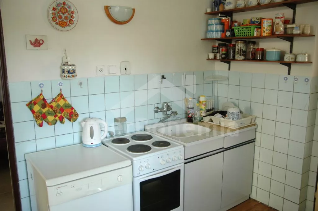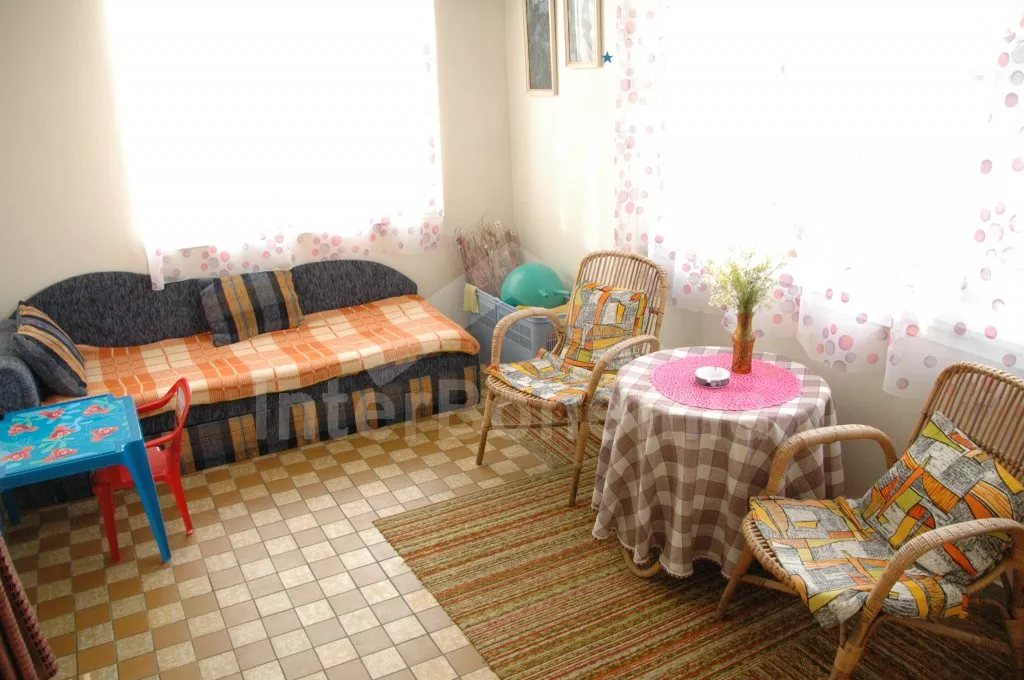 Haus – Typ „2 unter einem Dach“, einfach eingerichtet. Gäste bewohnen Erdgeschoss, Oberstock ist leer und wird nicht bewohnt. Eingang in Veranda, Flur, Wohnzimmer mit Sitzgarnitur, Fernseher und Radio. Vom Wohnzimmer ist Zutritt zu 2 Schlafzimmer – in erstem ist ein Doppelbett und ein Einzelbett und in zweitem sind 2 Einzelbetten. Küche mit Essecke, Kühlschrank, Gasherd, Geschirrspülmaschine, Kaffeemaschine, Schnellkochkanne und Mikrowelle. Drittes Wohnschlafzimmer mit einem Einzelbett und Holzofen. Badezimmer mit Dusche, Toilette separat. Heizung durch Holzofen und Elektroheizkörper. Umzäunter Garten, zur Verfügung Gartenmöbel mit Sonnenschirm, übertragbarer Grill und Rundbassin mit Durchmesser 3,6 m. Eigenparkplatz.