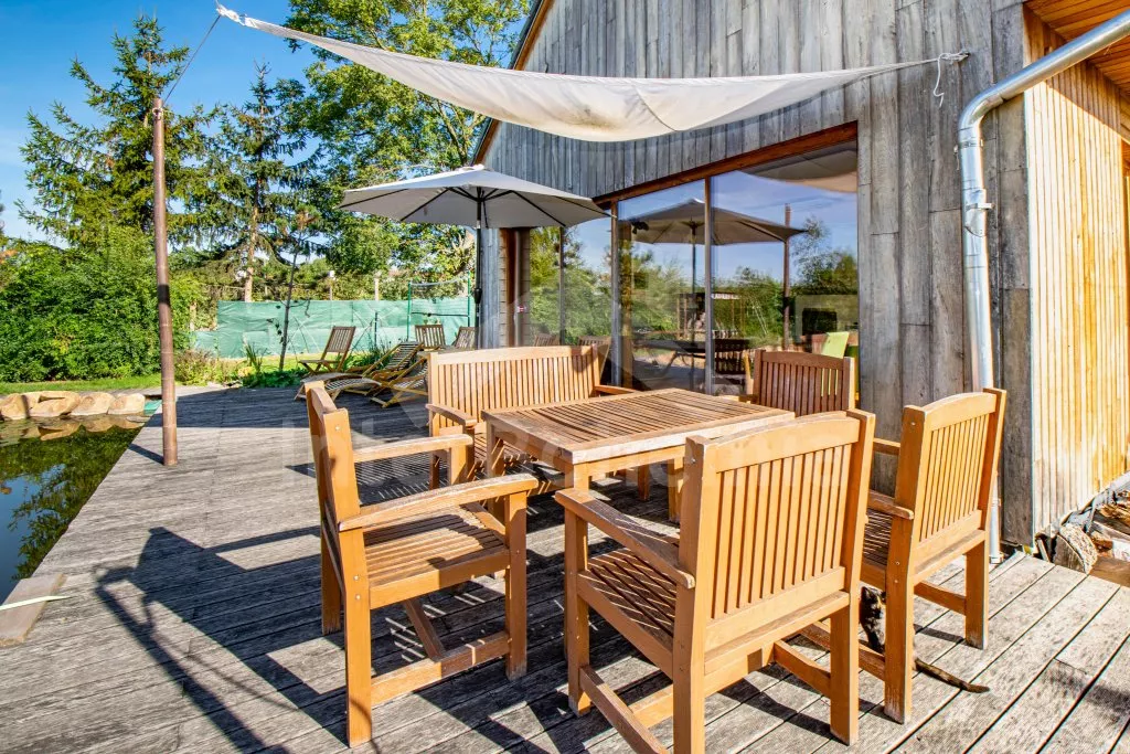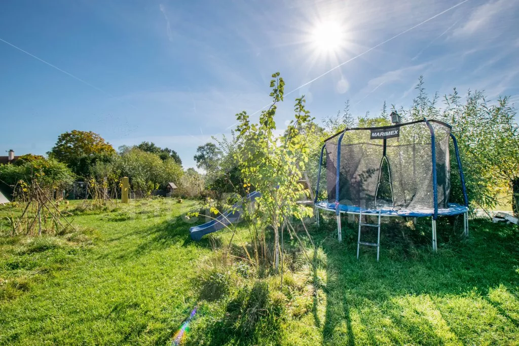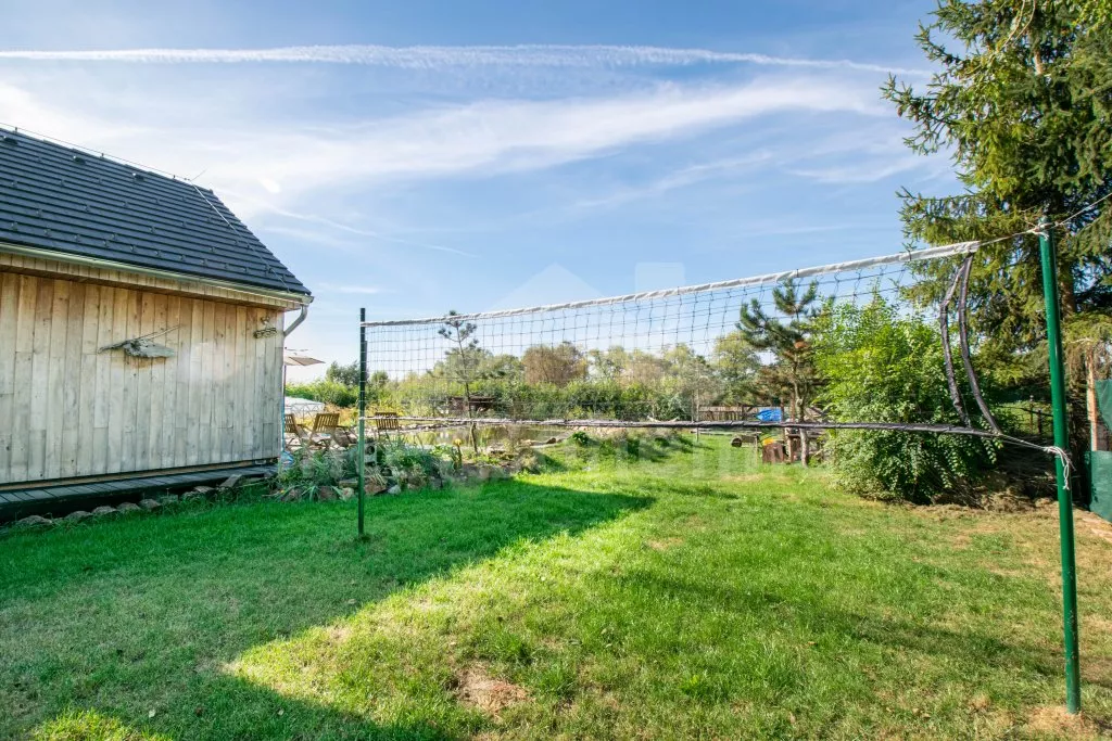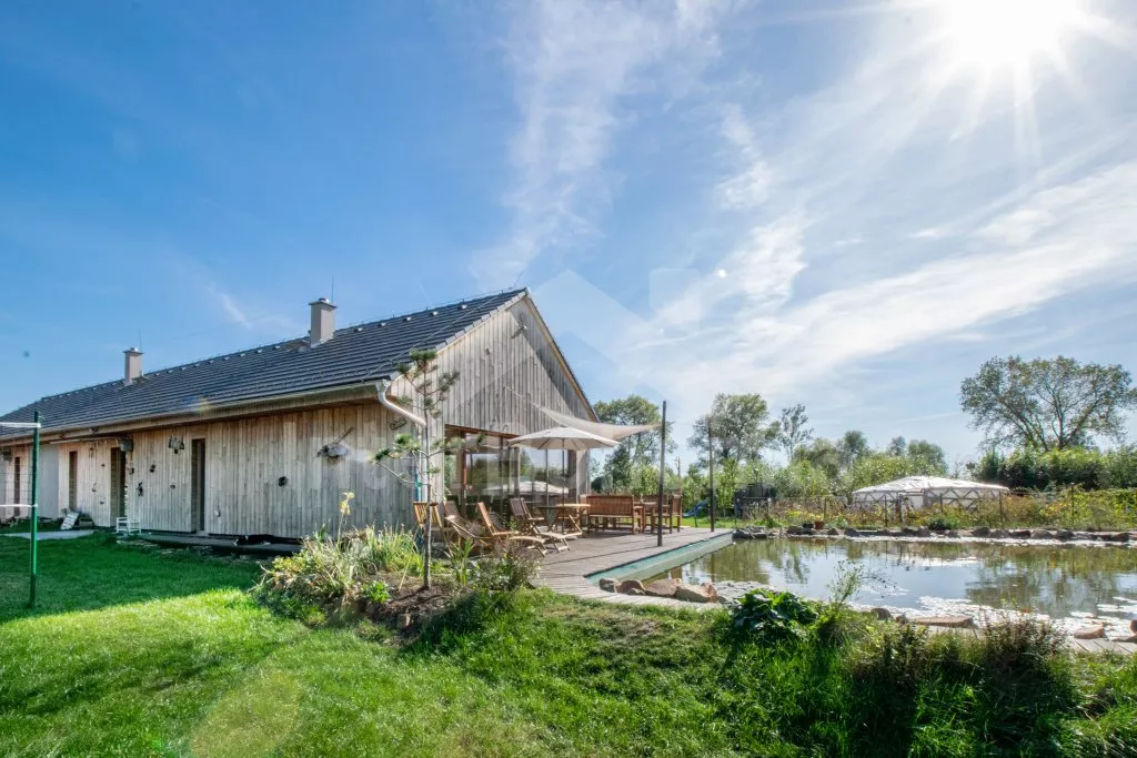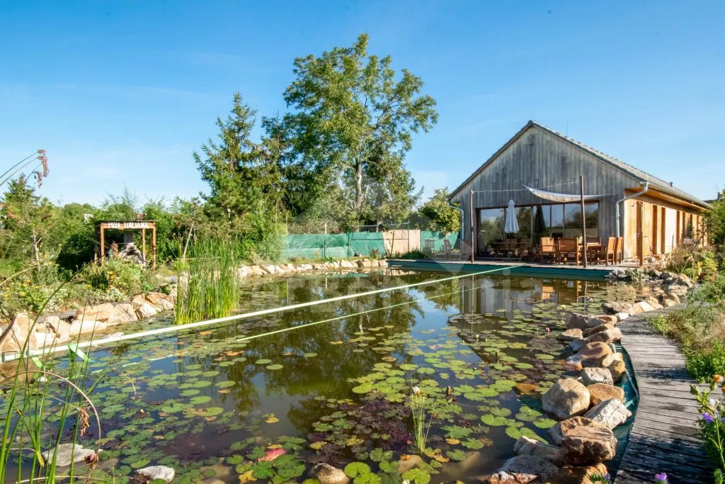 Sie wohnen in einem barrierefreien Naturhaus mit Teich und großem Garten. Geräumiges Wohnzimmer mit Esstisch für 10 Personen, TV, Doppelschlafcouch, Ofen und Klavier. Die Küchenzeile ist mit einem Esstisch für 4 Personen, einem Backofen, Kühlschrank mit Gefrierfach, Mikrowelle, Wasserkocher, Cerankochfeld, Gasherd, grundlegenden Küchengeräten und Geschirrspüler ausgestattet. Badezimmer mit Dusche, Waschbecken und Toilette. Im ersten Schlafzimmer ein Doppelbett und ein Etagenbett. Im zweiten Schlafzimmer ein Doppelbett. Drittes Schlafzimmer mit Doppelbett, zwei Zustellbetten und Kinderbett. Viertes Schlafzimmer mit zwei Betten. Badezimmer mit Badewanne, Waschbecken und Toilette. Technikraum mit Waschmaschine und Trockner. E-Heizung oder mit Holzofen. Terrasse mit Sitzgelegenheit, Sonnenschirm und Blick auf den Badesee und die umliegende Landschaft. Eingezäunter Garten mit Aktivitäten für Kinder und Erwachsene. Trampolin, Rutsche, Mini-Fußballtore, Barfußparcours, Volleyballfeld, Tischtennisplatte, großer Sandkasten mit Hängematten. Nutzung der Sauna gegen Gebühr (1000 CZK, Leintuch 50 CZK, Reinigung 400 CZK). Gartengrill vorhanden oder die Möglichkeit, ein Feuer in einem Tipi zu machen. Möglichkeit, Fahrräder zu mieten und Antiquitäten zu kaufen. Parken auf dem Grundstück für 4 Autos.