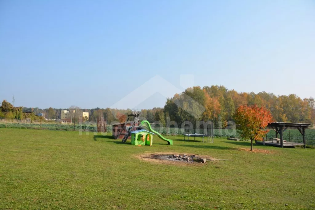 Freistehendes Haus mit umzäuntem Garten, versunkenem Pool, angenehmer und komfortabler Einrichtung. Eingangshalle, Wohnzimmer mit Sitzecke, Esstisch für 4 Personen, TV und Kamin. Küche mit Ceranfeld, el. Backofen, Geschirrspüler, Mikrowelle, Kühl- / Gefrierschrank, Wasserkocher und Esstisch für 3 Personen. Badezimmer mit Dusche, Waschbecken und Toilette. Das zweite Badezimmer hat eine Badewanne und zwei Waschbecken. Erstes Schlafzimmer mit einem Doppelbett. Zweites Schlafzimmer mit zwei Einzelbetten. Das dritte Schlafzimmer hat auch zwei Einzelbetten und ein Zustellbett auf den Boden. Heizung elektrisch und durch den Kamin. Das Haus steht auf einem eigenen, geschlossenen Grundstück mit einem großen Garten (1.400m2), Gartenmöbeln, tragbarer Grill, ein Pool mit Durchmesser von 3,6 m und einem Lagerfeuer Platz. Für die Kinder gibt es Sandkasten, Schaukel, Rutsche und Trampolin. Parken vor dem Haus und ein Auto kann im Garten stehen.