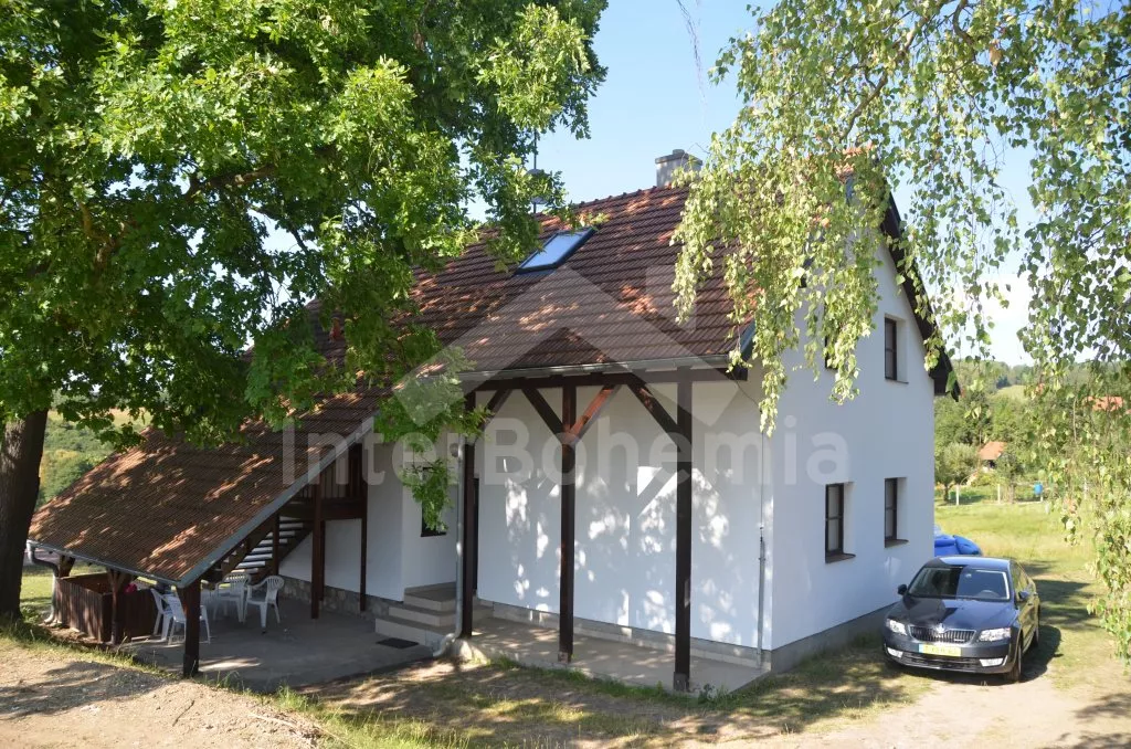 In Böhmerwald (Sumava), in wunderschöner Landschaft in der Nähe von Stausee Lipno, in Naturschutzgebiet genannt „Blansky les“, im Dorf Slupenec, auf einem Hügel über malerischem historischem Städtchen Cesky Krumlov (steht auf der UNESCO-Liste von Weltkulturerbe). Ein wirklich schöner und ruhiger Ort mit herrlicher Aussicht in die Umgebung – auf Wiesen und bewaldete Berge des Böhmerwaldes. Ideale Lokalität für anspruchsvolle Kunden – die Umgebung bietet ganze Reihe von sportlichen und kulturellen Betätigungsmöglichkeiten, in dem Gebiet gibt es viele historische Sehenswürdigkeiten, Sie können hier die verschiedensten Aktivitäten unternehmen. Das Städtchen Cesky Krumlov mit romantischen Gassen, vielen Restaurants unt Terrassen – oft über dem Fluss Vltava, das durch die Stadt fliesst, mit schönem Schloss, einzigartigem Freilichttheather und weiteren Folgeeinrichtungen ist nur 1 km entfernt. Kloster Zlata Koruna 8 km, Burg Rozmberk 19 km, die südböhmische Metropole Ceske Budejovice 23 km, Schloss Hluboka nad Vltavou, Jagdschlösschen Ohrada und Tiergarten 32 km.
