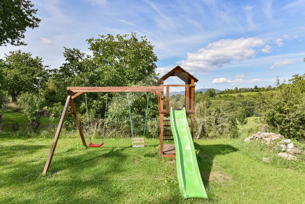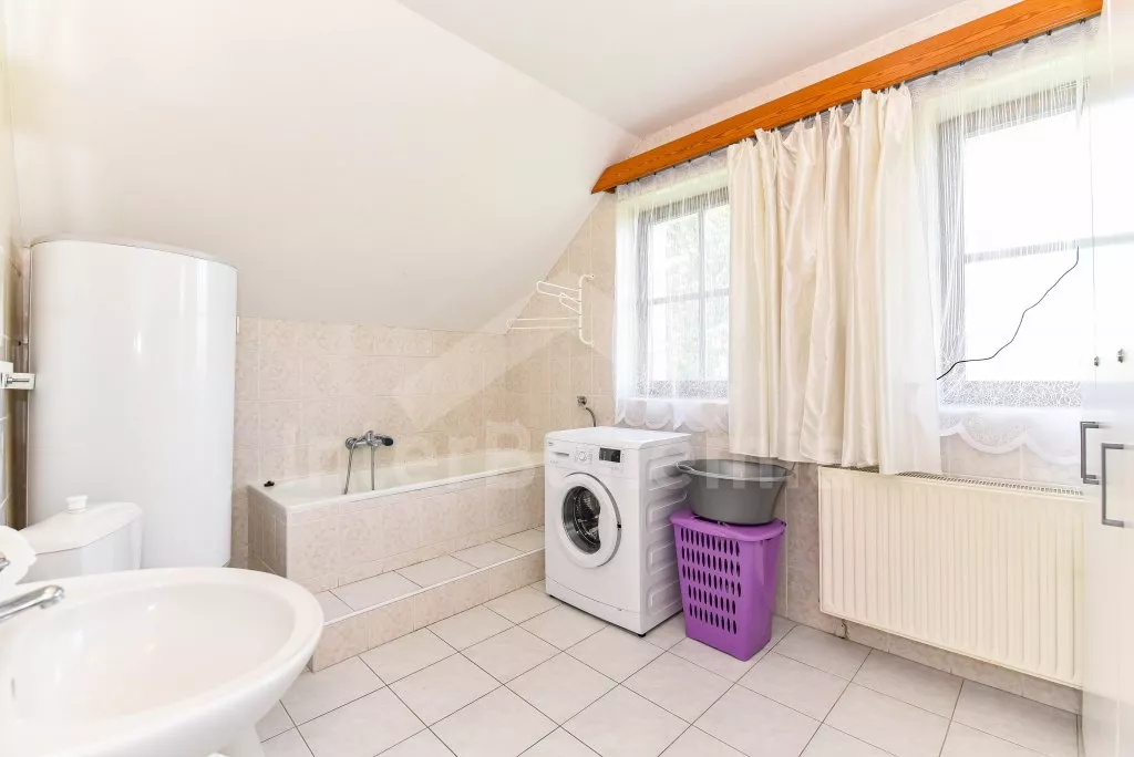 Zwischen den beiden Wohnungen befindet sich eine abschließbare Verbindungstreppe. Das Haus steht auf einem eigenen eingezäunten Grundstück, der Garten ist für beiden Wohnungen gemeinsam und verfügt über einen tragbaren Grill, für Kinder gibt es Trampolin, Rutsche, Schaukel, Sandkasten und ein kleines Bad ohne Filtration. Parken auf eigenem Grundstück.