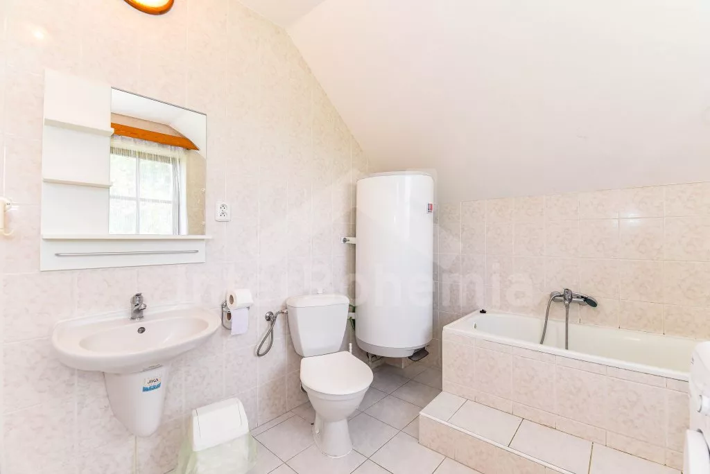 Entfernungen: Grundlebensmittelgeschäft, viele Restaurants und Supermarkt (Cesky Krumlov) 1 km. In der Stadt Krumlov finden Sie weiter Aussenschwimmbecken, Hallenbad, Sauna, Tennisplatz, Golfplatz, Bootvermietung und weitere Anstaltungen und Dienste. Pferde reiten können Sie gleich hinter dem Haus – nur 200 m! Baden im Teich 1,5 km. Wildwasserbefahren und Raftverleih (Zlata Koruna) 7 km. Grosser Erholungsstausee Lipno mit Strand, wo man baden, Wassersportarten treiben, Boots und Segelboots verleihen, fischen (mit Genehmigung) und andere Aktivitäten unternehmen kann 20 km. Fischfang (Genehmigung nötig, in Krummau möglich zu kaufen) im Fluss Vltava 1 km. Wald 300 m.