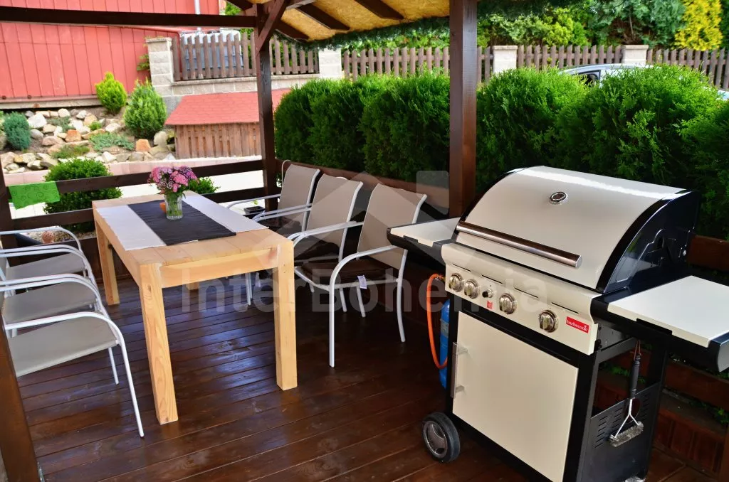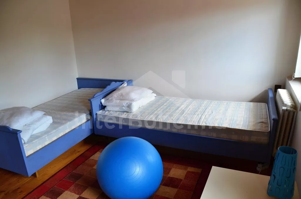 Freistehendes Ferienhaus, teilweise nach Rekonstruktion im Jahre 2015, schön und gemütlich eingerichtet. Eingang, Flur, ein geräumiges Wohnzimmer mit Sofa (genutzt auch als Zusatzbett für 2 Personen ), SAT-TV und Kaminofen. Komplett ausgestattete Küche mit Ceran-Kochfeld, Elektroherd, Geschirrspüler, Kühlschrank, Gefrierschrank, Mikrowelle, Kaffeemaschine, Wasserkocher, Toaster, Sandwichtoaster und einem Esstisch für 7 Personen. Badezimmer mit Dusche, Waschbecken, Toilette und Waschmaschine. Treppe zum ersten Stock mit drei Schlafzimmern. Erstes Schlafzimmer mit einem Doppelbett und einem Einzelbett, zweites Schlafzimmer mit einem Doppelbett und das dritte Schlafzimmer mit zwei Einzelbetten. Badezimmer mit Badewanne, Waschbecken und Toilette. Zentralheizung mit festen Brennstoffen. Möglichkeit von zusätzlichen Heizung mit dem Kaminofen. Das Ferienhaus steht auf eigenem und komplett eingezäuntem Grundstück mit einem Garten. Zur Verfügung gibt es eine überdachte Terrasse mit Gartenmöbeln und Gasgrill, die den Kunden eine angenehme Sitzmöglichkeit bietet. Es gibt auch ein kleines Wellness-Häuschen im Garten, mit Whirlpool (geeignet für 4 - 6 Personen, kein Chlor-Reinigungssystem, so dass es auch für Allergiker geeignet ist) und Infrasauna (2 - 3 Personen), Hängematte (Hawai Stil) zum Entspannen und weißen Strandsand. Parkplatz auf dem Grundstück.
