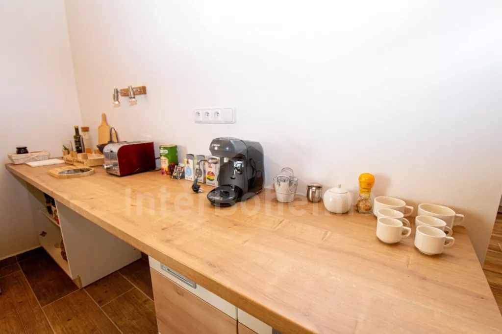 In Südböhmen, fast alleinstehend, am Rande des kleinen Dorfes Dub, das zum Ort Ratibořské Hory gehört, 17 km östlich der Stadt Tábor und weniger als 8 km nördlich von Chýnov. Die Unterkunft hat einen quadratischen Grundriss, es ist ein ehemaliger Bauernhof mit Blick auf das Tal der Stadt Tábor und bei guter Sicht auf die Berggipfel des Böhmerwaldes. Die Gegend ist ideal für einen ruhigen Urlaub oder verschiedene Ausflüge, sowohl zu Fuß als auch mit dem Fahrrad entlang der zahlreichen Rad- und Wanderwege. Zu den Sehenswürdigkeiten in der Umgebung zählen die Chýnovské-Höhlen und die Kamelfarm (8 km), der Jordán-See (10 km), die Burg Ratibořské Hory (2 km) und die Burg Chýnov (8 km), die Ruinen Choustník (15 km) und die Aussichtstürme Blaník und Hýlačka (20km). Auch die Stadt Tábor mit ihrem historischen Platz, den Katakomben und dem Burg Kotnov (17 km) ist einen Besuch wert. Die Wintersaison bietet Langlaufloipen in der Umgebung und das Skigebiet Monínec (30 km). Entfernungen: Grundnahrungsmittel, Restaurants und Post (Ratibořské Hory) 2 km, Supermarkt und Café (Tábor) 17 km, Schwimmbad (Chýnov) 8 km, Hallenbad und Aquapark ( Tábor) 17 km , Golf (Alenina Lhota) 30 km, Spa und Wellness (Bechyně) 40 km, Bushaltestelle (Dub) 300 m, Wald 300 m.