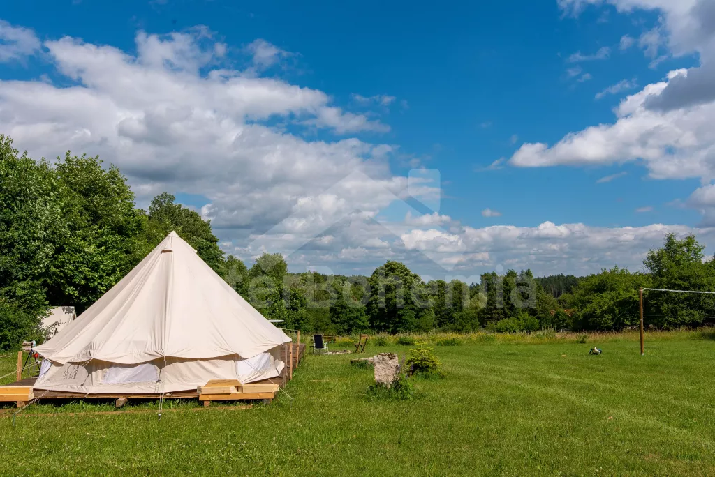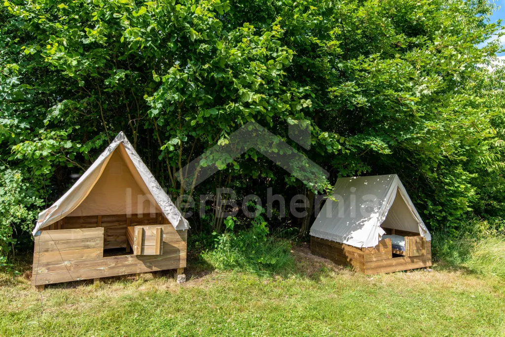Krásný glamping na naprosté samotě se stylovou venkovní kuchyní, bazénem a třemi samostatnými stany!