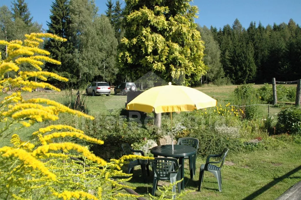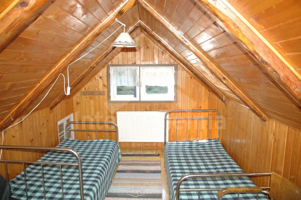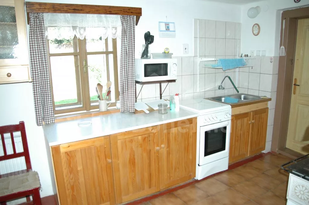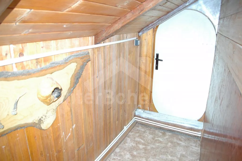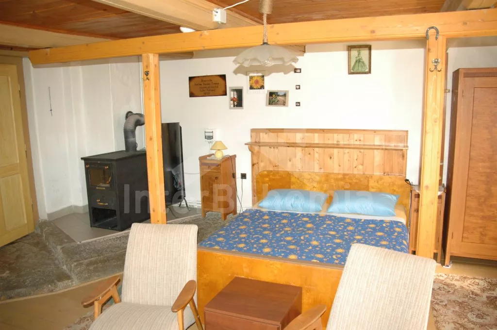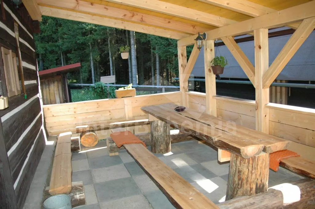 Volně stojící hájenka se zachovalými původními prvky, citlivě zrenovovaná a velmi příjemně zařízená. Vstup, chodba s lednicí, schody do podkroví a vstupem na zastřešenou pergolu. Kuchyně s jídelním koutem, původní kachlovou pecí, elektrický sporákem, varnou konvicí a mikrovlnnou troubou. V kuchyni teče pouze studená voda. Obytná ložnice s dvojlůžkem, dvěma samostatnými lůžky, posezením, krbovými kamny a televizí se satelitním příjmem. Koupelna se sprchou a toaletou. V patře se nachází druhé samostatné WC a umyvadlo a další 3 ložnice – první s dvojlůžkem a posezením, druhá se třemi samostatnými lůžky a třetí se dvěma samostatnými lůžky, posezením a malým kuchyňským koutem s lednicí a rychlovarnou konvicí. Možnost 3 přistýlek. Vytápění krbovými kamny napojenými na ústřední topení. K dispozici neoplocená zahrada, zastřešená pergola s posezením, zahradní nábytek a ohniště, samostatně stojící čtvercový zastřešený altán o rozměrech 3,4M x 3,4M. Pod altánem je sklep pro chlazení nápojů i potravin přístupný z altánu. Vše je osvětleno včetně sklípku. Parkování u domu.