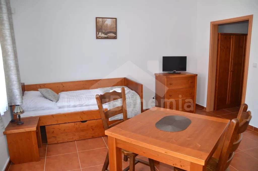 Penzion s apartmány / studii, kompletně zrekonstruovaný v roce 2014, s luxusním a komfortním vybavením se širokou škálou doplňků. K dispozici jsou 2-, 3- a 5ti lůžkové apartmány, vybavené dvoulůžky a samostatnými lůžky, kuchyňským koutem s lednicí, keramickou varnou deskou a varnou konvicí, stolem, TV se satelitním příjmem a set-top-boxem, koupelnou se sprchovým koutem, umyvadlem a toaletou. K dispozici je celkem 9 apartmánů. Prostorná jídelna s krásnými kachlovými kamny, bar a stoly se židlemi. Zahrada s místy k sezení a velká pergola se stoly a lavicemi, letní kuchyní a krbem pro grilování. Dostatek parkování na místě.