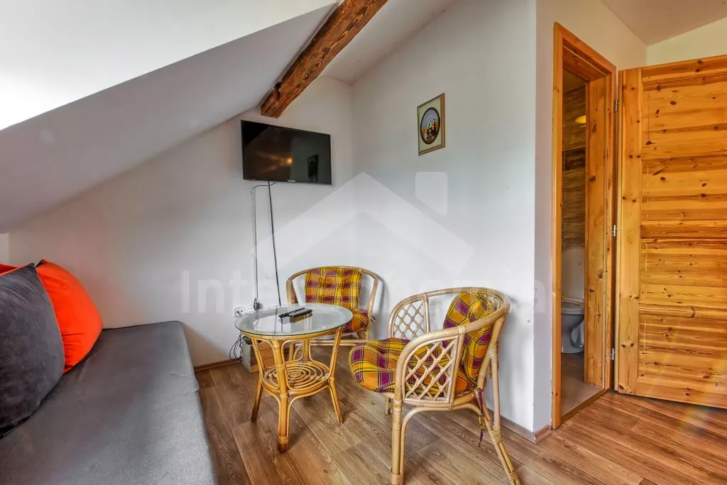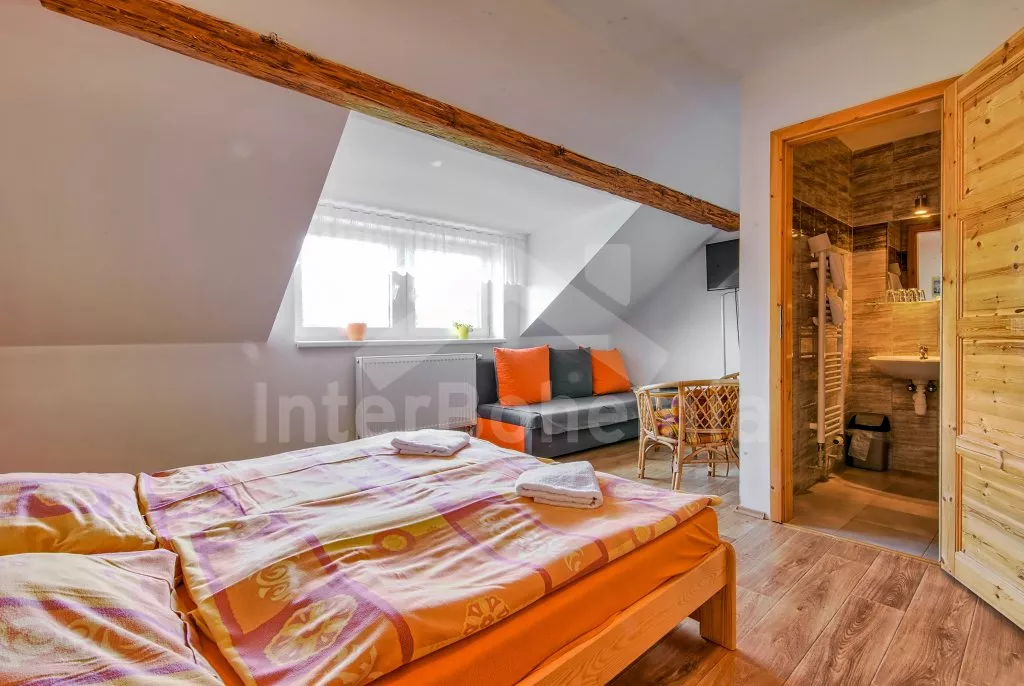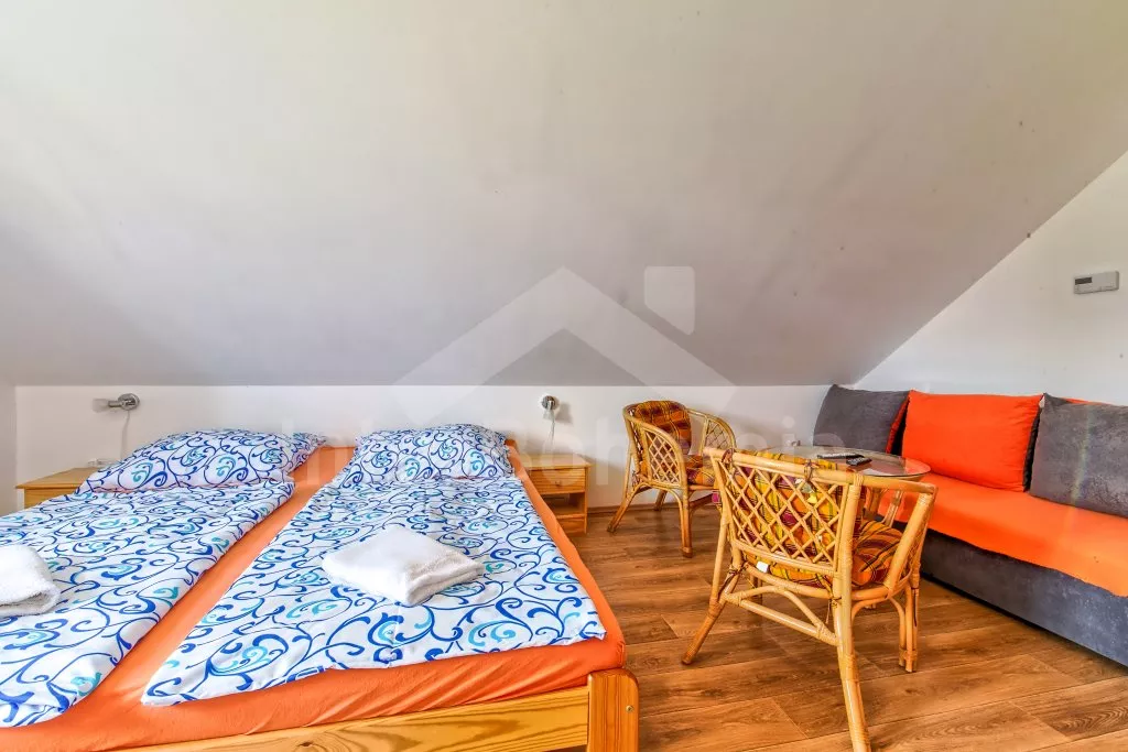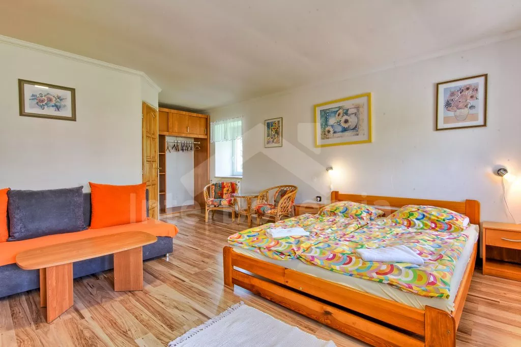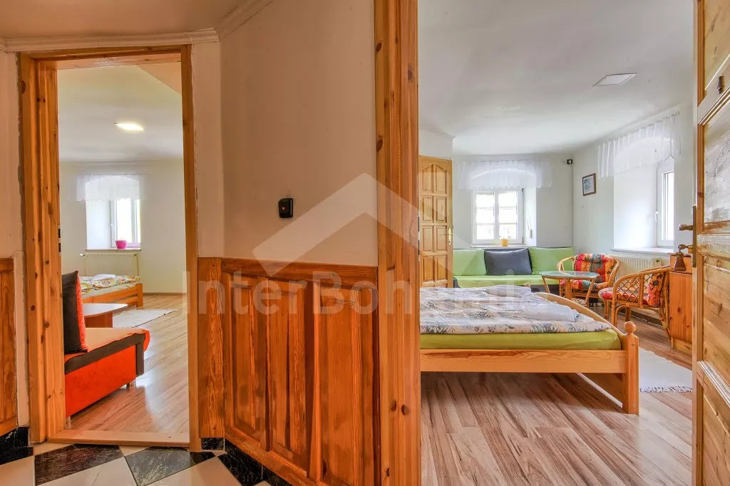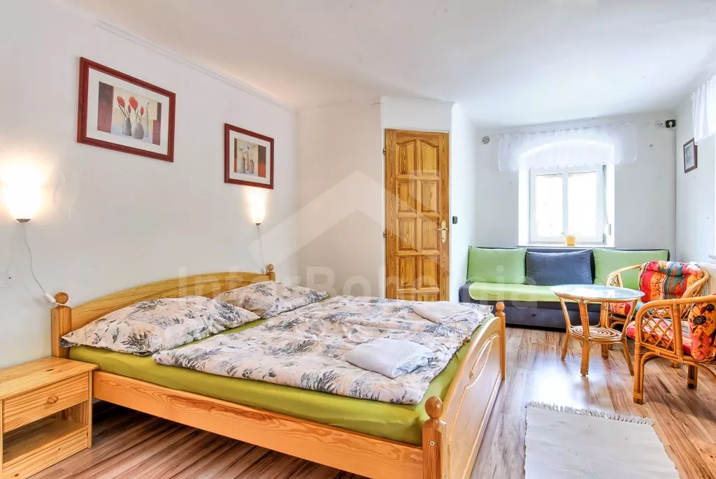 Dům je rozdělen na 7 jednotlivých apartmánů (4 v prvním patře a 3 v druhém patře). Každý apartmán má televizi a vlastní koupelnu se sprchovým koutem, umyvadlem a WC. První apartmán s dvoulůžkem a přistýlkou, druhý s dvoulůžkem, třetí s dvoulůžkem a rozkládací pohovkou (dvoulůžko), čtvrtý s dvoulůžkem a přistýlkou, pátý s dvoulůžkem, rozkládací pohovkou (dvoulůžko) a dětskou postýlkou, šestý s dvoulůžkem a přistýlkou a sedmý s dvoulůžkem, dvěma jednolůžky, rozkládací pohovkou (dvoulůžko) a dětskou postýlkou.