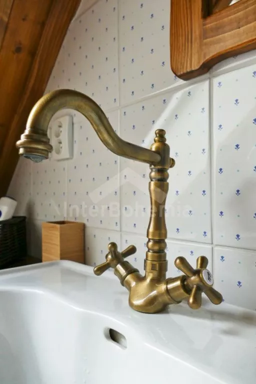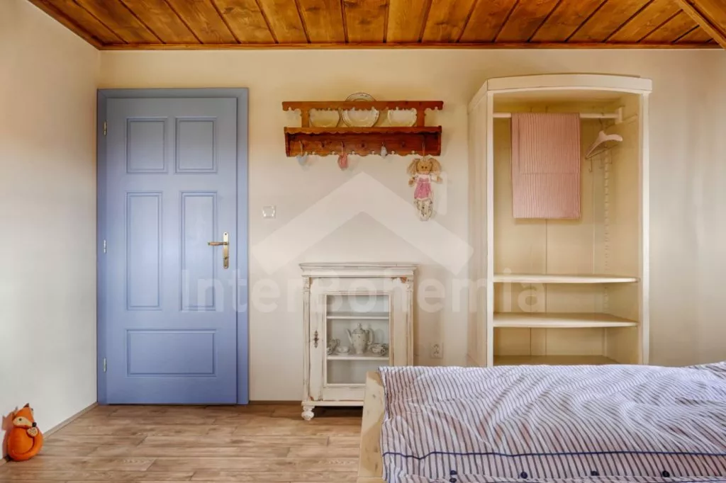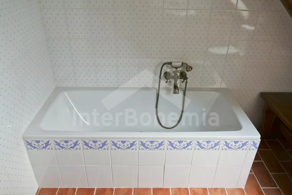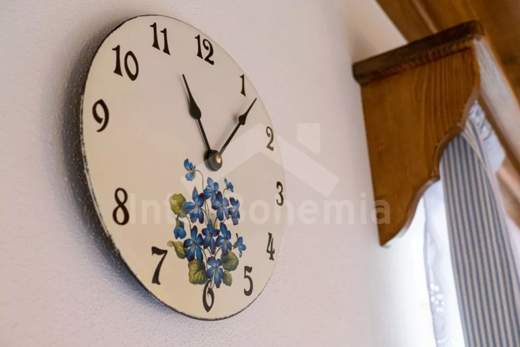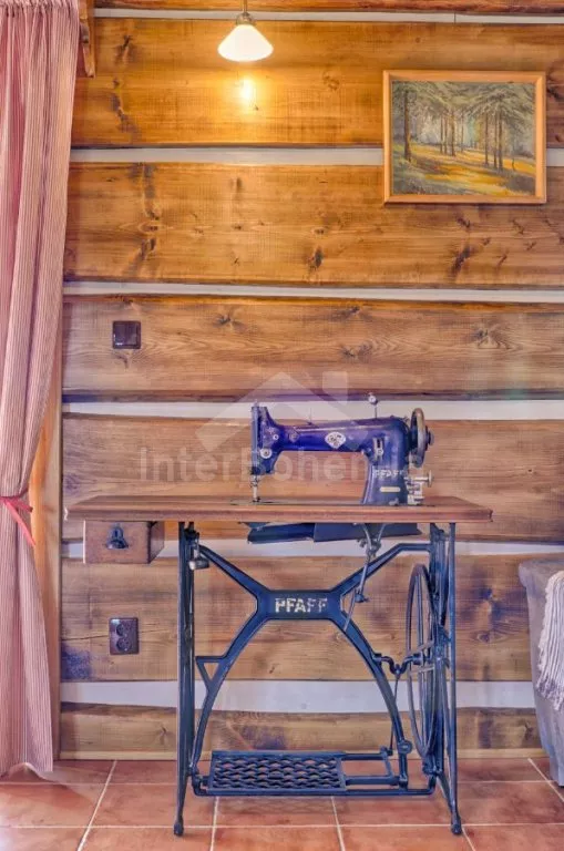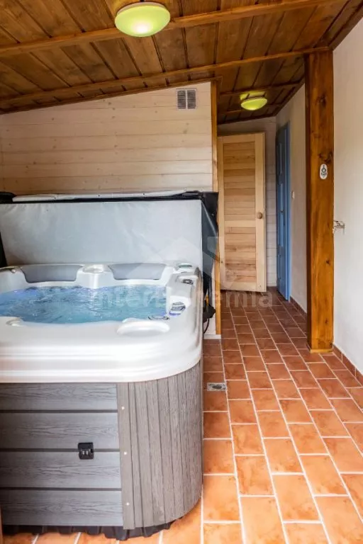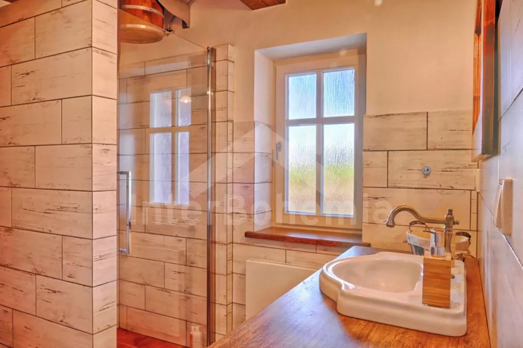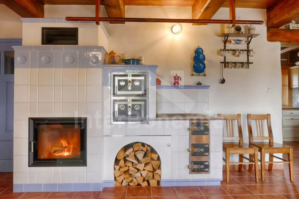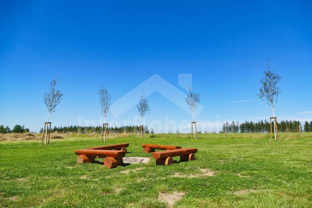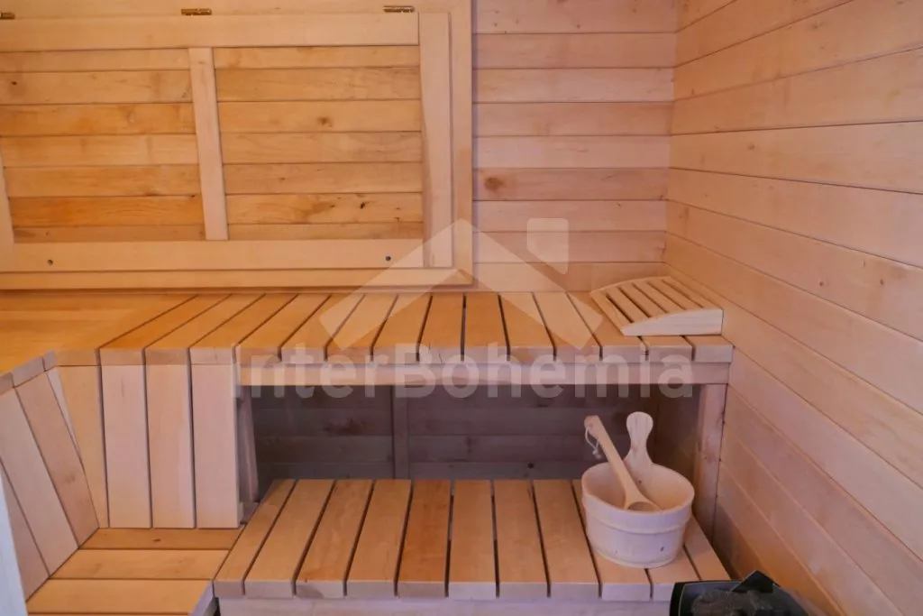 Nově postavená a dobově zařízená roubená chalupa s prostornou společenskou místností, saunou a vířivkou. Vstup, hala, obývací místnost spojená s kuchyní. Kuchyňská linka s indukční varnou deskou, troubou, mikrovlnnou troubou, lednicí s mrazákem, kávovarem, rychlovarnou konvicí, topinkovačem, nádobím a myčkou na nádobí. Na kuchyň navazuje jídelna s velkým dubovým stolem pro 8 osob a LCD televizí se satelitem.