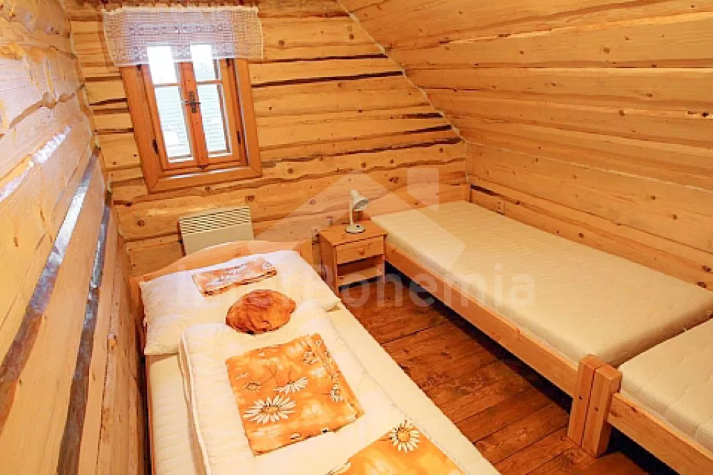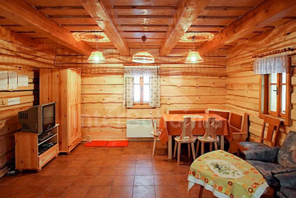 Volně stojící roubenka s unikátní mini rozhlednou a zapuštěným bazénem na zahradě. V přízemí společenská místnost s jídelním stolem, křesly a kuchyňským koutem s elektrickým sporákem, mikrovlnnou troubou, lednicí, kávovarem, varnou konvicí, pračkou a myčkou na nádobí. Koupelna se sprchovým koutem, umyvadlem a WC. V prvním patře menší společenská místnost se sedací soupravou. Dvě ložnice, každá se třemi jednolůžky. Druhá koupelna s vířivou vanou a umyvadlem. WC samostatně.