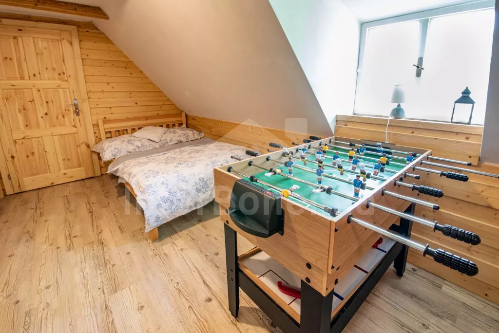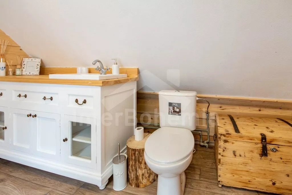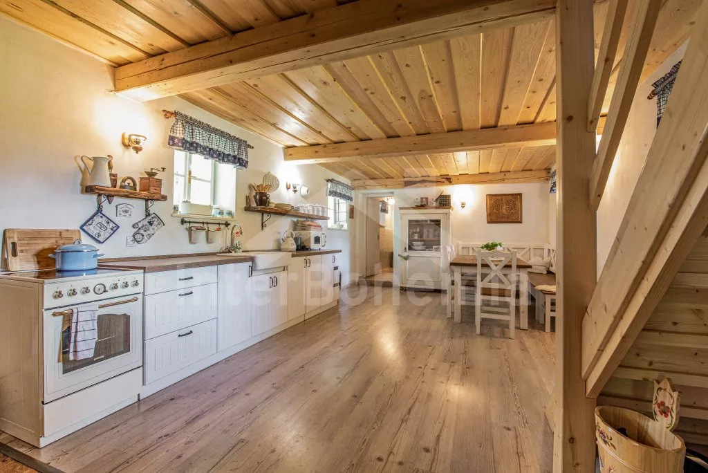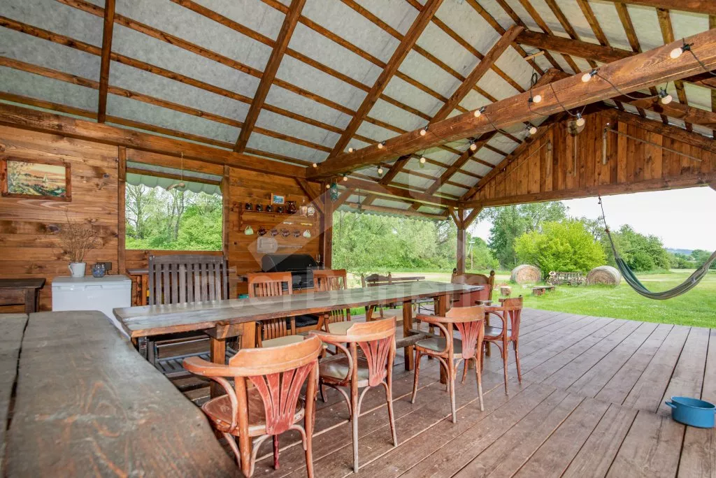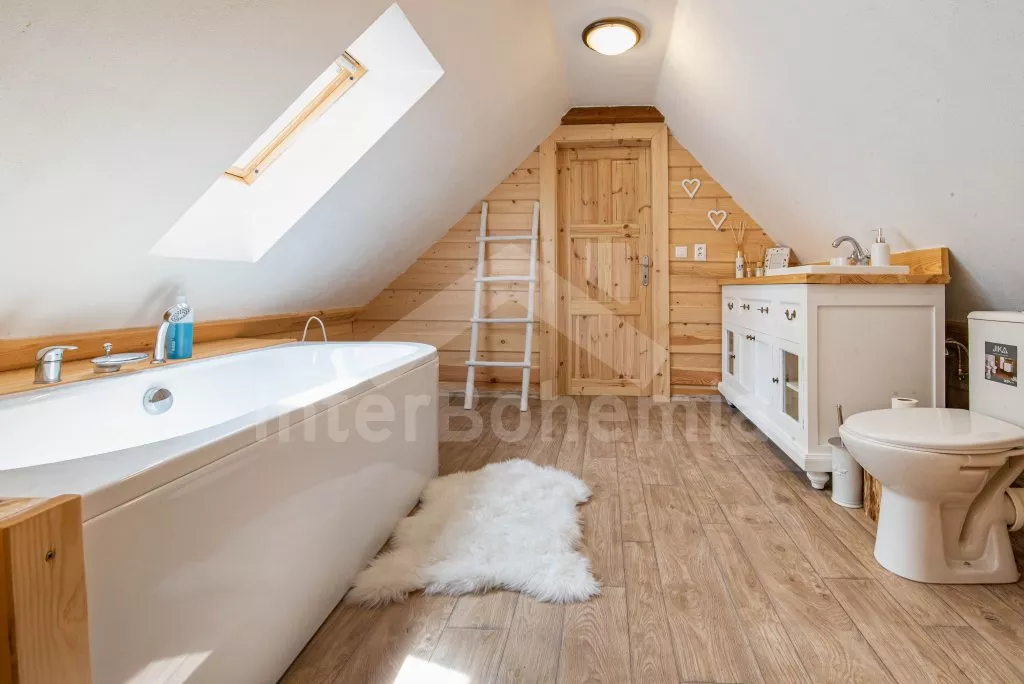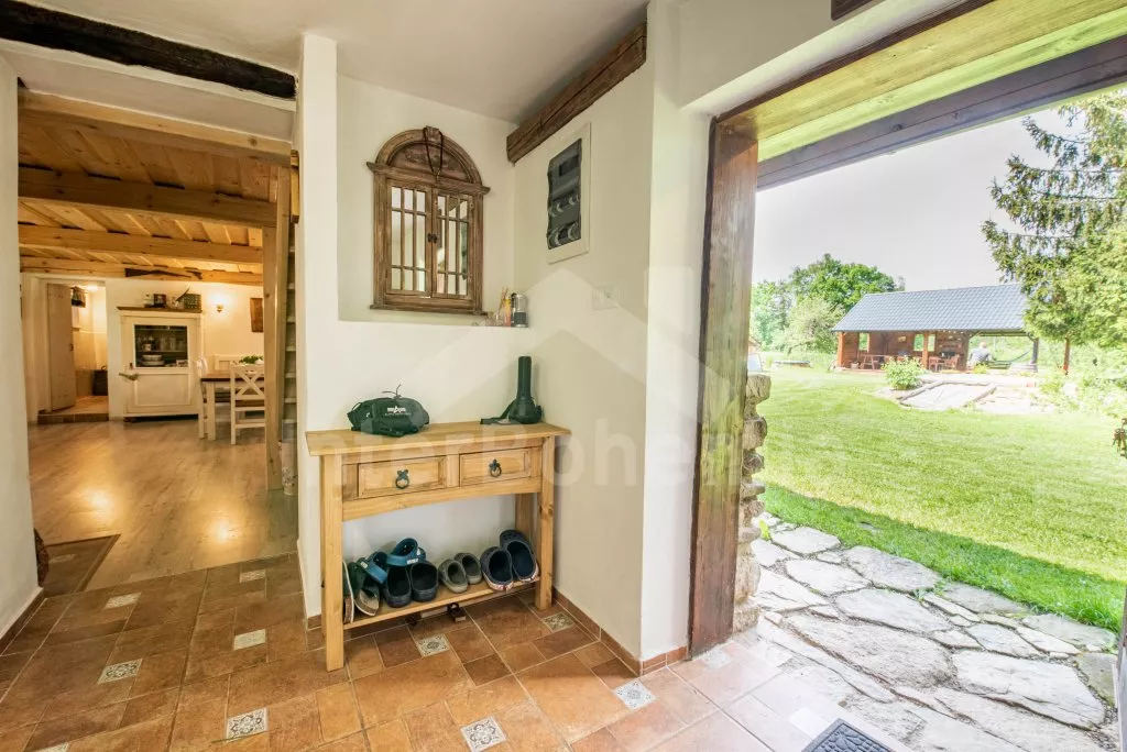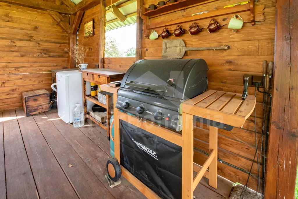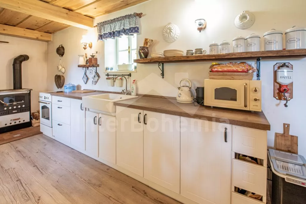 Moderně vybavená chalupa po rekonstrukci v roce 2022. Ideálním místem pro spřátelené rodiny s dětmi, které hledají klidné místo v blízkosti přírody. Prostorná kuchyně s jídelním stolem, lednicí s mrazákem, sporákem na tuhá paliva, troubou, sklokeramickou deskou, mikrovlnnou troubou, rychlovarnou konvicí a veškerým vybavením na vaření. Ložnice s 2x rozkládací pohovkou, TV a krbovými kamny. V přízemí koupelna se sprchou, umyvadlem, WC a pračkou. V podkroví ložnice s 2x dvoulůžkem a televizí. Třetí ložnice s 3x dvoulůžkem, křeslem, stolním fotbálkem a vstupem do koupelny s vanou, umyvadlem a toaletou. Objekt je vytápěn kamny. Zahrada s příjemným posezením pod pergolou vybavenou plynovým grilem, menší lednicí a hamakou. K dispozici ohniště s posezením a výhledem do okolní přírody. Toaleta se vstupem ze zahrady. Částečně zapuštěný bazén s průměrem 5 m a pro děti je připraveno „Orlí hnízdo“ - bunkr na stromě s posezením. Parkování na rozlehlém pozemku.
