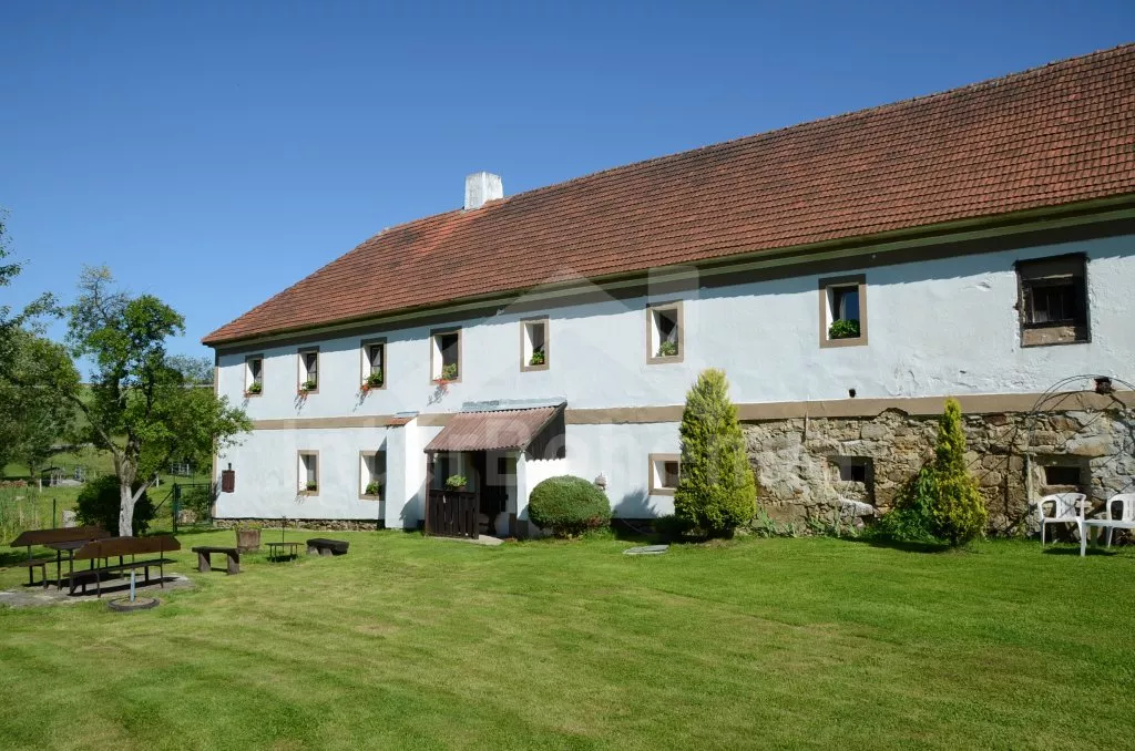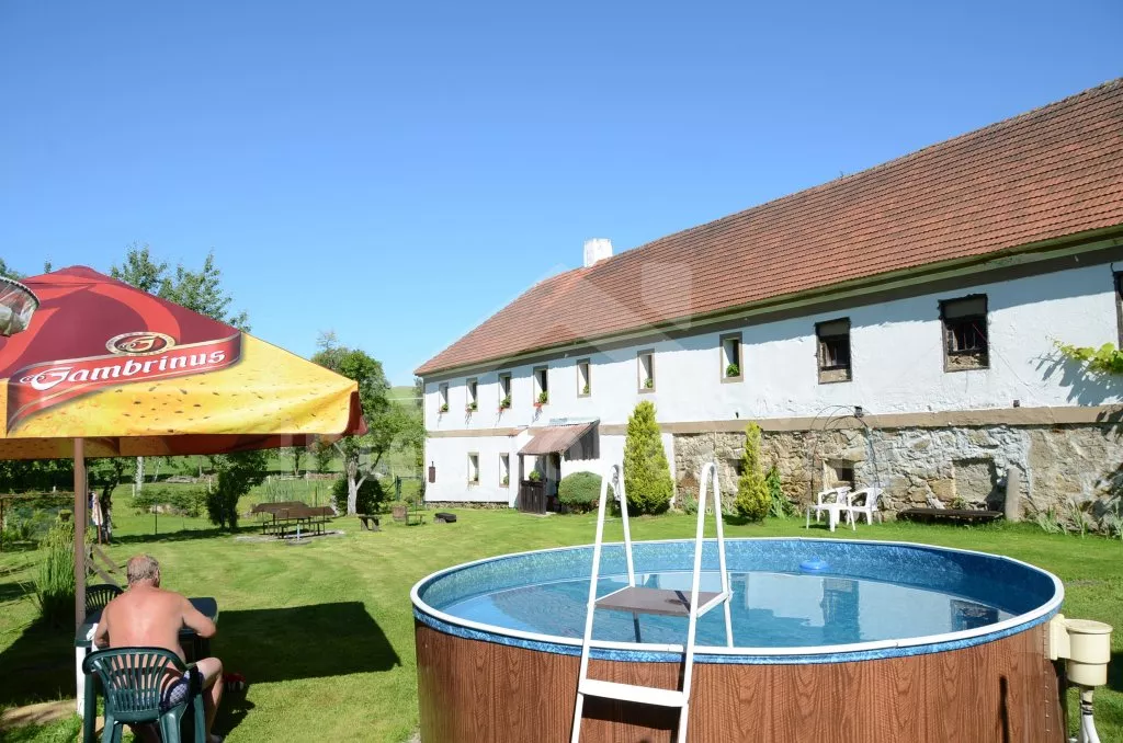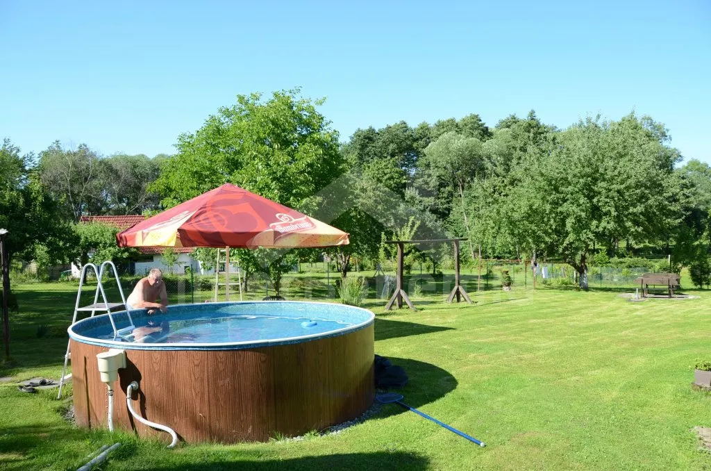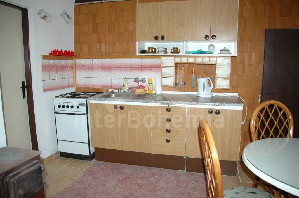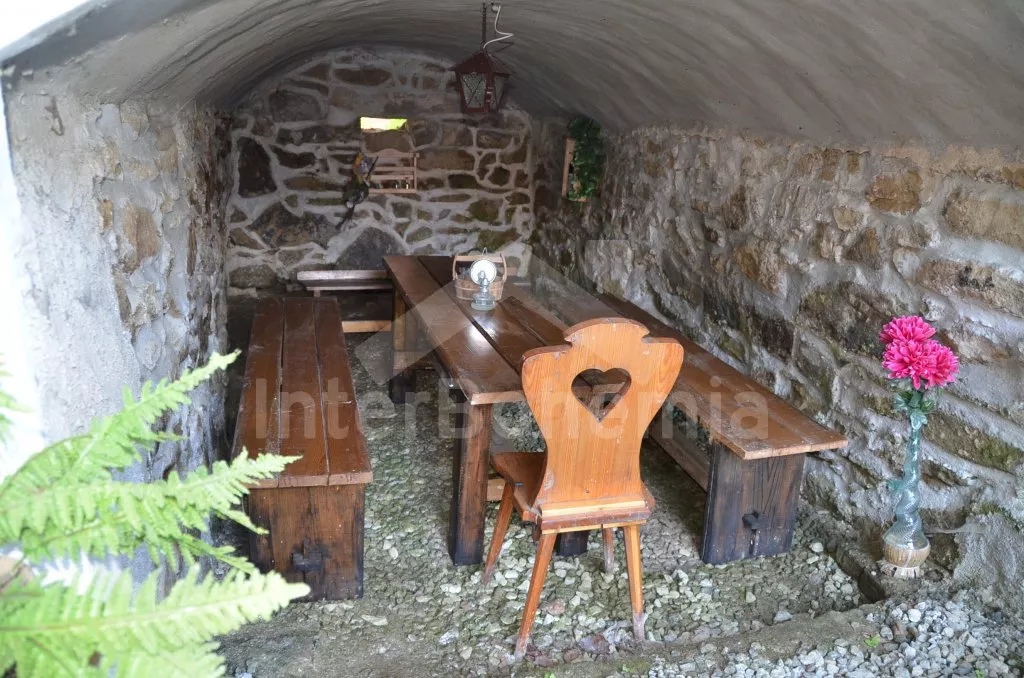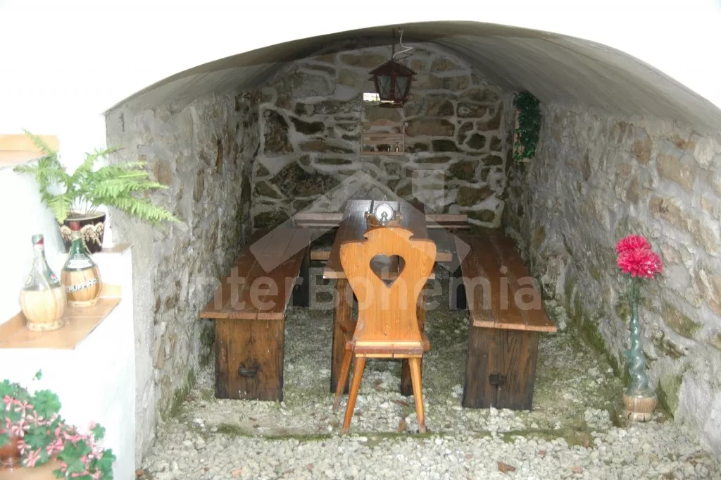 Obýváte jednu polovinu rozlehlého bývalého selského stavení s uzavřeným dvorem a velkou zahradou. Dům se dvěma samostatnými bytovými jednotkami je účelně a pohodlně zařízen. Vstup, chodba, obývací pokoj se sedací soupravou pro 6 osob (možnost až dvou přistýlek), televizí se satelitním příjmem, jídelním stolem pro 4 osoby, jídelním koutem pro dalších 6 osob a jedním samostatným lůžkem. Ložnice s dvojlůžkem a jedním samostatným lůžkem. Kuchyně s plynovým sporákem a horkovzdušnou troubou, mikrovlnnou troubou, varnou konvicí a jídelním stolem pro 3 osoby. Na chodbě je lednice s mrazákem, vstup do koupelny se sprchovým koutem a toaletou. Mlynářské schody do patra, kde se nachází druhá bytová jednotka. Kuchyně s plynovým sporákem, varnou konvicí, mikrovlnnou troubou a jídelním stolem pro 4 osoby. Obývací pokoj se sedací soupravou pro 5 osob (možnost až dvou přistýlek), televizí se satelitním příjmem a jídelním stolem pro 4 osoby. Ložnice se třemi samostatnými lůžky a palandou. Koupelna se sprchovým koutem a toaletou. Společenská místnost se stolním tenisem. Vytápěno kamny na tuhá paliva (kamna jsou v každé místnosti). K dispozici je uzavřený dvůr se zahradním nábytkem a slunečníkem, zahradní krb, příjemné posezení ve sklípku. Rozlehlá oplocená zahrada s posezením (stůl a lavice), ohništěm a solárně vyhřívaným bazénem o průměru 3,5 m a hloubce 0,9 m. Jedno parkovací místo ve stodole, dostatek parkovacího místa na oploceném pozemku.