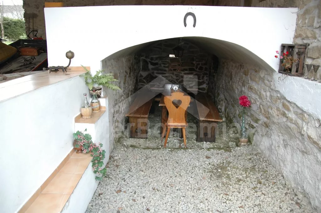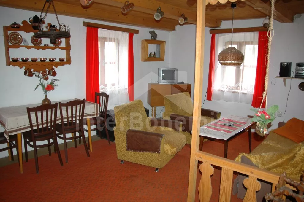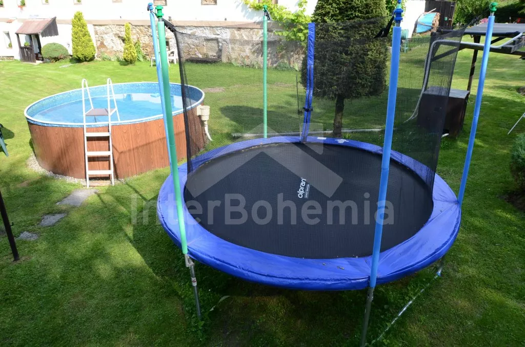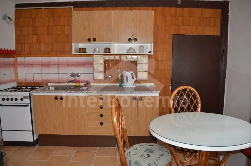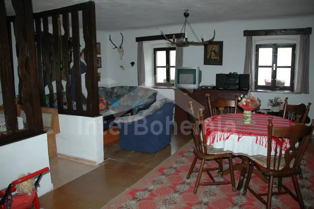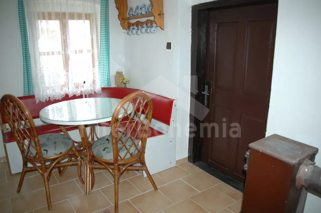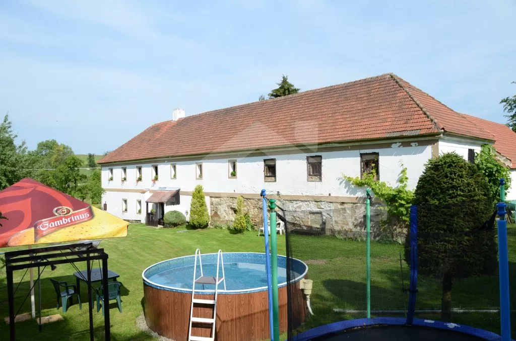 Obýváte jednu polovinu rozlehlého bývalého selského stavení s uzavřeným dvorem a velkou zahradou. Dům se dvěma samostatnými bytovými jednotkami je účelně a pohodlně zařízen. Vstup, chodba, obývací pokoj se sedací soupravou pro 6 osob (možnost až dvou přistýlek), televizí se satelitním příjmem, jídelním stolem pro 4 osoby, jídelním koutem pro dalších 6 osob a jedním samostatným lůžkem. Ložnice s dvojlůžkem a jedním samostatným lůžkem. Kuchyně s plynovým sporákem a horkovzdušnou troubou, mikrovlnnou troubou, varnou konvicí a jídelním stolem pro 3 osoby. Na chodbě je lednice s mrazákem, vstup do koupelny se sprchovým koutem a toaletou. Mlynářské schody do patra, kde se nachází druhá bytová jednotka. Kuchyně s plynovým sporákem, varnou konvicí, mikrovlnnou troubou a jídelním stolem pro 4 osoby. Obývací pokoj se sedací soupravou pro 5 osob (možnost až dvou přistýlek), televizí se satelitním příjmem a jídelním stolem pro 4 osoby. Ložnice se třemi samostatnými lůžky a palandou. Koupelna se sprchovým koutem a toaletou. Společenská místnost se stolním tenisem. Vytápěno kamny na tuhá paliva (kamna jsou v každé místnosti). K dispozici je uzavřený dvůr se zahradním nábytkem a slunečníkem, zahradní krb, příjemné posezení ve sklípku. Rozlehlá oplocená zahrada s posezením (stůl a lavice), ohništěm a solárně vyhřívaným bazénem o průměru 3,5 m a hloubce 0,9 m. Jedno parkovací místo ve stodole, dostatek parkovacího místa na oploceném pozemku.
