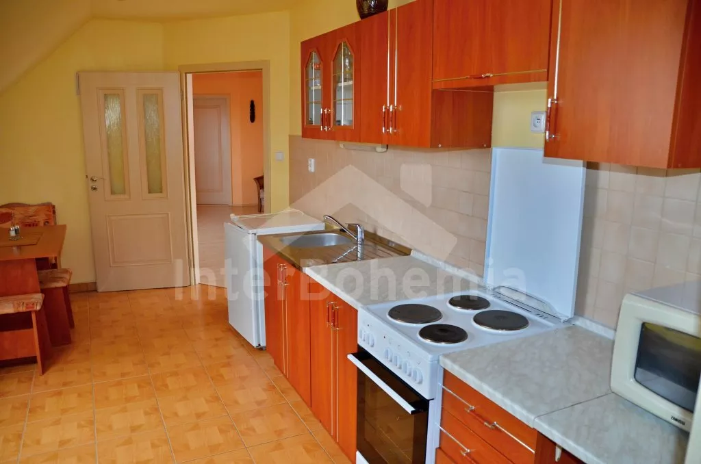 Obýváte část podkroví tohoto bývalého, volně stojícího statku. Dům byl v roce 2006 kompletně zrenovován a je velmi pohodlně zařízen novým nábytkem. Vstup, chodba a schody do podkroví. Chodba se… Více informací