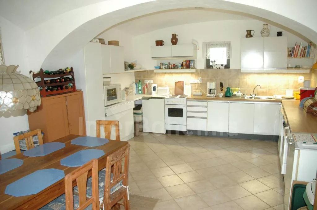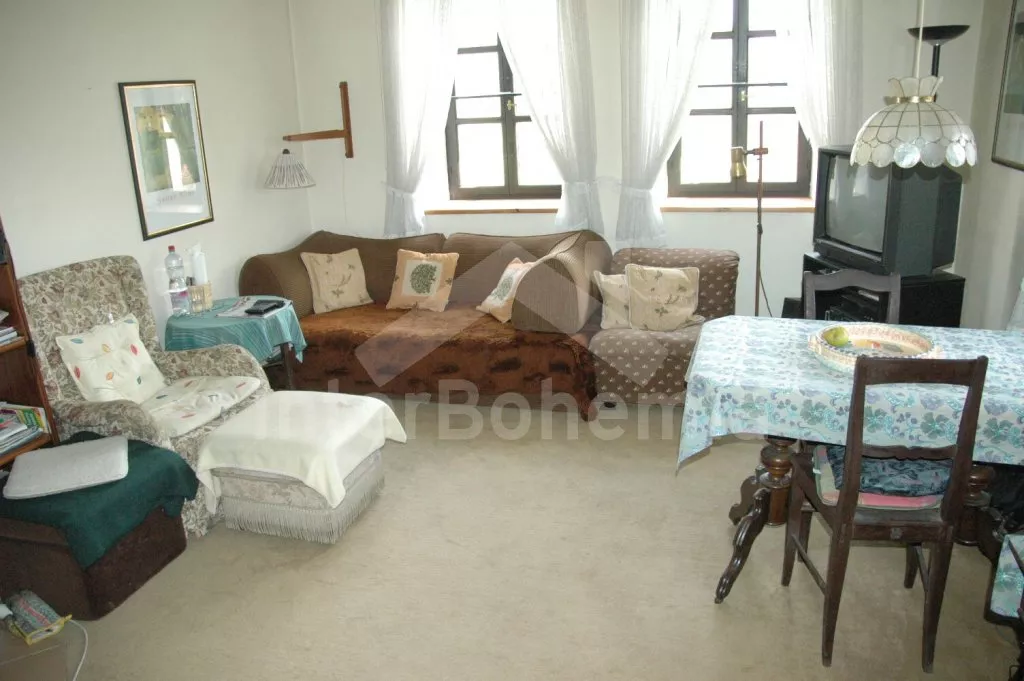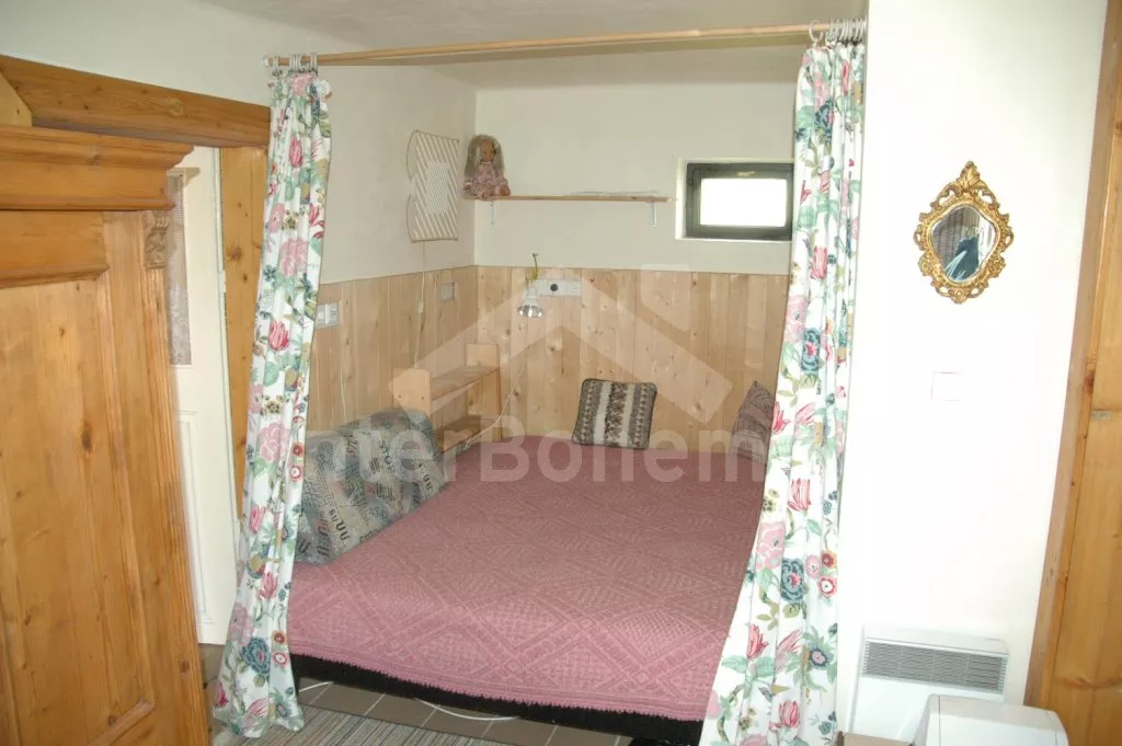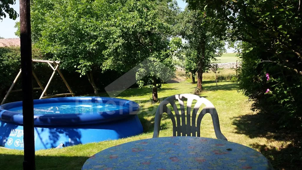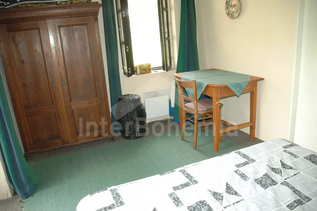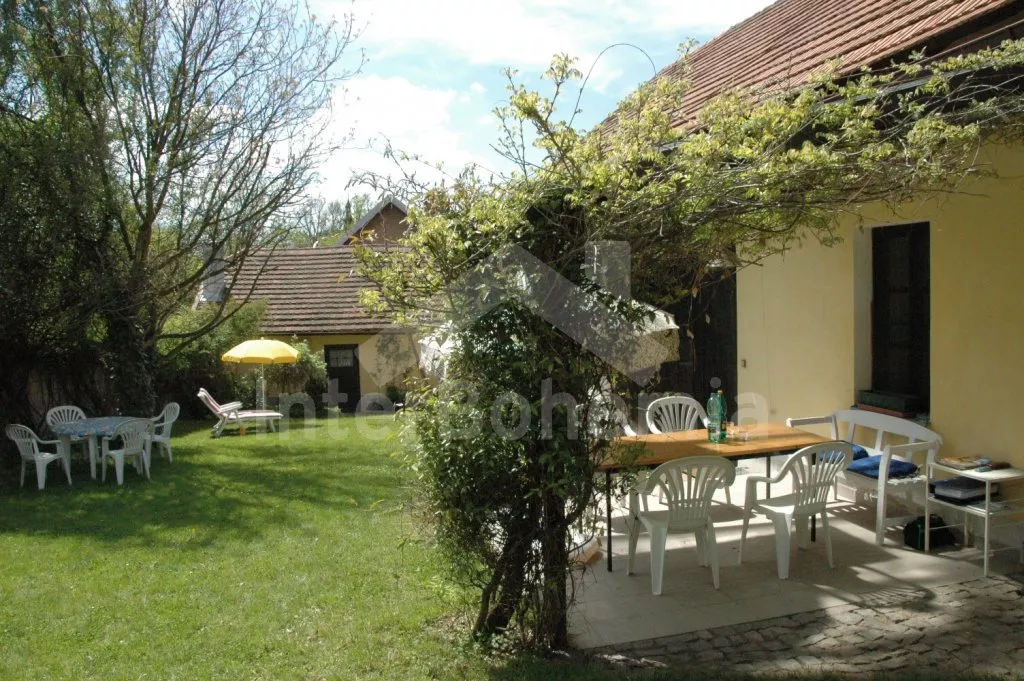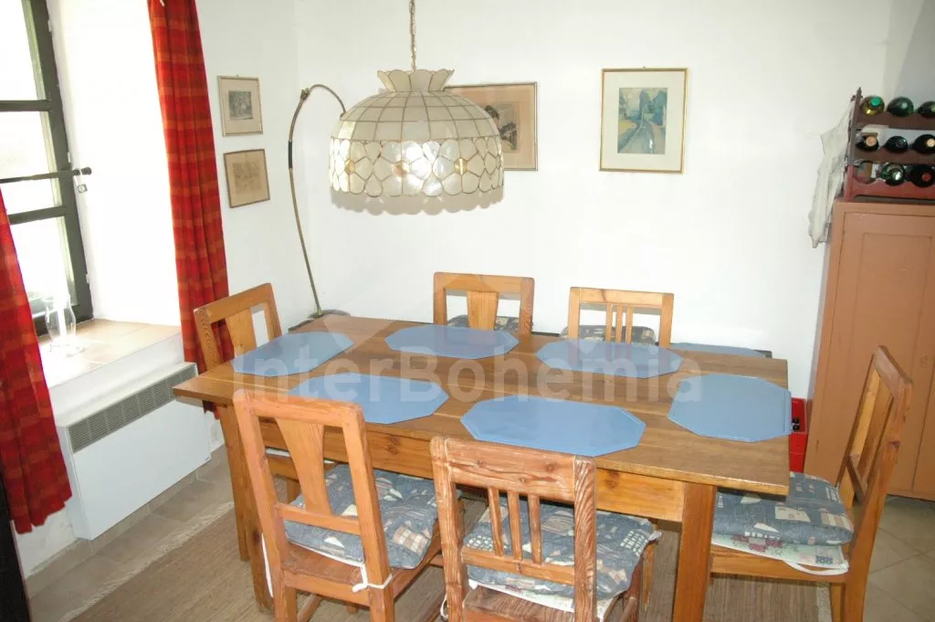Volně stojící dům, bývalý statek s uzavřeným vnitřním dvorem. Statek sestává z hlavní budovy postavené do písmene „L“ a přístavby, většina místností je přístupná přímo ze dvora. Vjezd do dvora, vstup do haly, obývací pokoj se sedací soupravou pro 5 osob, krbovými kamny a televizí se satelitním příjmem, DVD a videem. Z haly je přístup do výklenku s lůžkem (užší dvojlůžko) a televizí se satelitním příjmem. Ložnice s dvojlůžkem, z této ložnice (nebo ze dvora) se vstupuje do koupelny se sprchou a samostatnou toaletou. Do další části hlavní budovy se vstupuje přes zastřešenou terasu (pergolu). Zde se nachází prostorná obytná kuchyně s jídelním stolem pro 6 osob a naprosto kompletním vybavením – elektrický sporák s troubou, lednice s mrazákem, kávovar, varná konvice, mikrovlnná trouba a myčka na nádobí. V dalším domku v dolní části dvora je pak ještě obytná ložnice s pohovkou, kterou lze rozložit na dvojlůžko, posezením, krbovými kamny a televizí se satelitním příjmem. Další ložnice s dvojlůžkem a vstupem do zahrady. Tyto dvě ložnice mají společnou koupelnu se sprchou a toaletou. Vytápění krbovými kamny a elektrické. Na dvoře a v přilehlé zahradě je k dispozici zahradní nábytek se slunečníkem, zahradní gril a kulatý bazén o průměru 3,5 m x 0,70 m. Stodola se stolním tenisem. Parkování ve stodole nebo na dvoře.