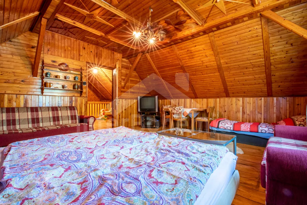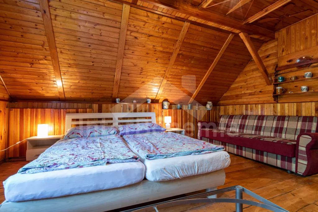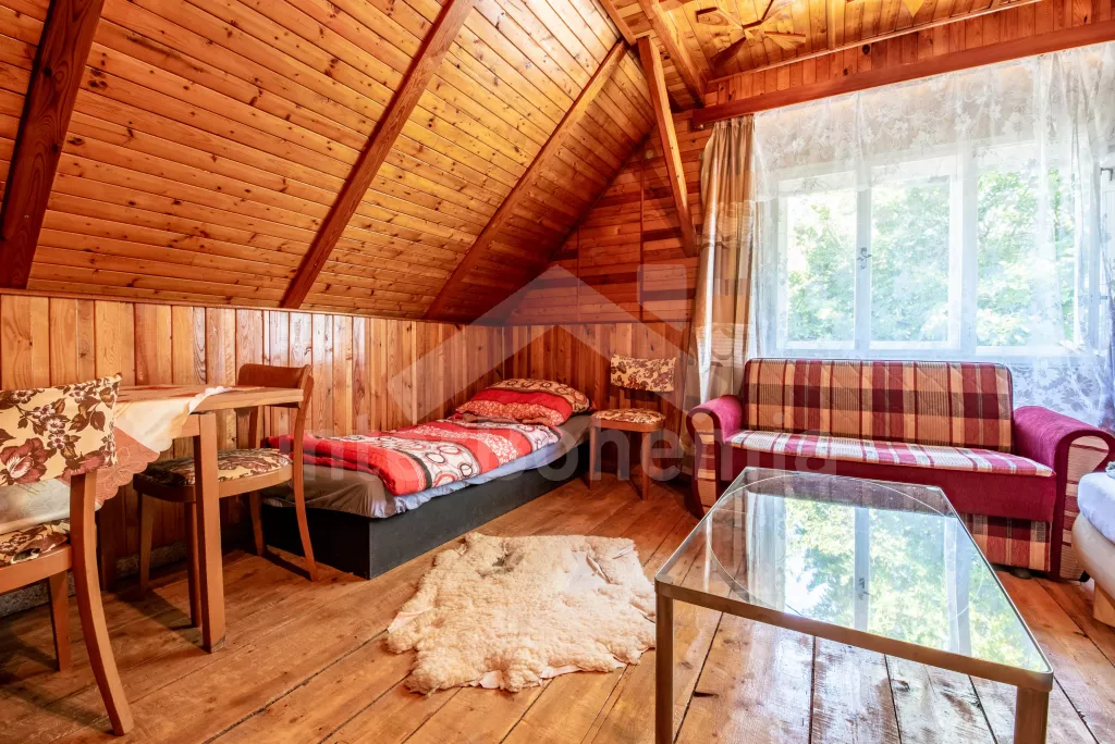 Volně stojící bývalé zemědělské stavení, účelně zařízené avšak kompletně vybavené, k samostatnému obývání. Vstup, hala se stolem a židlemi, kuchyně s jídelním stolem pro 4 osoby, elektrickým sporákem se sklokeramickou deskou a horkovzdušnou troubou, myčkou na nádobí, velkou lednicí, mikrovlnnou troubou, varnou konvicí a televizí. Koupelna s umyvadlem a vanou, WC zvlášť. Ložnice s dvoulůžkem a televizí, druhá ložnice se dvěma samostatnými lůžky, gaučem a televizí. Nahoře je třetí ložnice se stolem a židlemi, třemi samostatnými lůžky a televizí. Ústřední topení na tuhá paliva a elektrické přímotopy. Travnatý, oplocený dvůr, zahradní nábytek, zahradní gril, pingpongový stůl a vlastní bazén (průměr 5,5 m a hloubka 1,1 m). Vlastní parkoviště. Ubytování pro maximálně 7/8 osob.