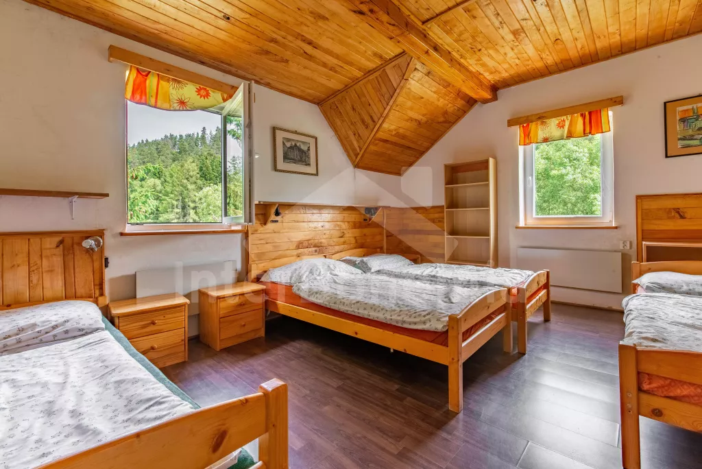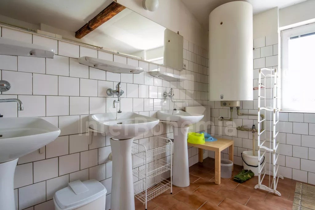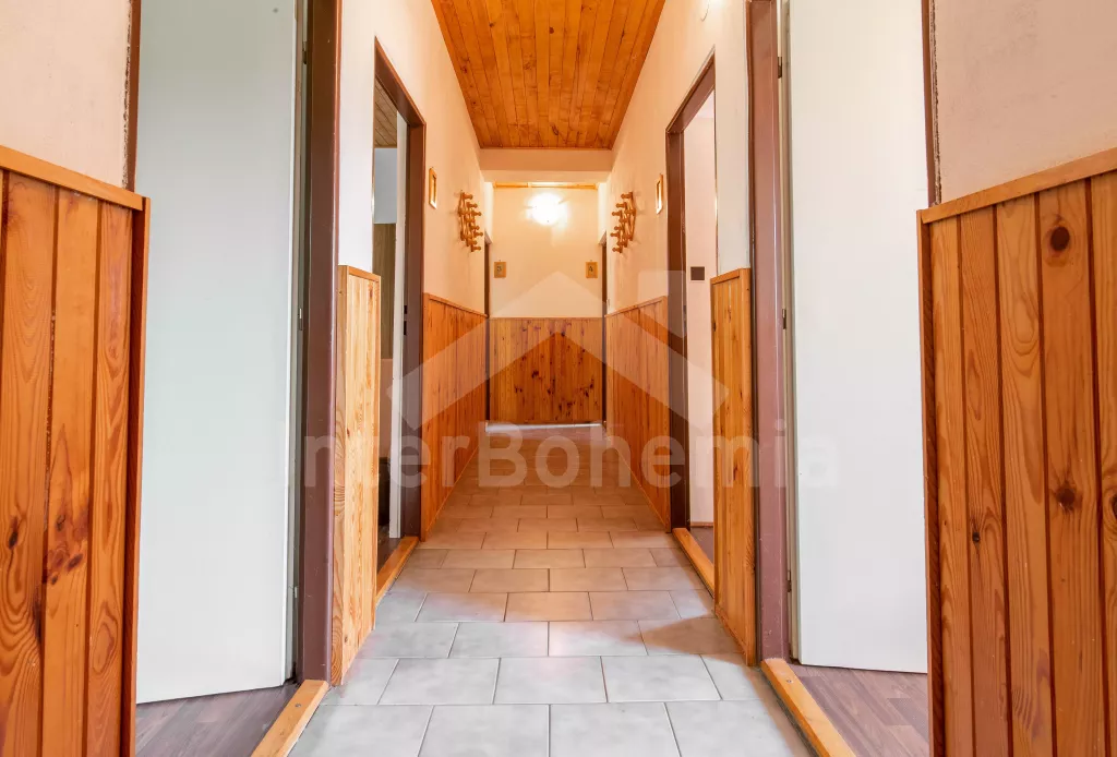 In het Boheems - Moravisch hoogland, aan de rand van het dorp Dolni Smrcne, ca 18 km ten zuidoosten van het stad Jihlava. Nabij het huis loopt een spoorweg. Het huis staat op een royaal grondstuk, aan de bosrand, direct aan de oever van de rivier. Heerlijk rustgevend uitzicht in het groen en de rivier, absolute privacy.