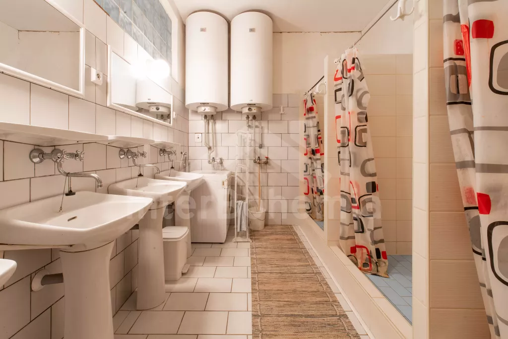 Bovenste verdieping: drie douches en twee toiletten. Twee vierpersoons slaapkamers en drie tweepersoons slaapkamers.