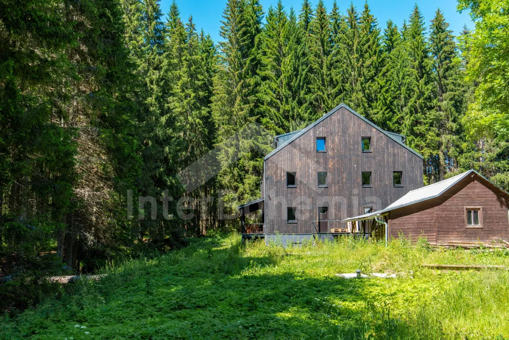 Omringd door bossen, afgelegen, dichtbij de vredige natuur van Šumava, onderdeel van het dorp Nové Hutě, 13 km met de auto ten oosten van Kvilda (7 km te voet) en 13 km ten westen van Vimperk. Fietsliefhebbers kunnen het pittoreske deel van Šumava verkennen, omringd door eindeloze oerbossen en toeristische attracties. Excursies in de omgeving zijn bijvoorbeeld Chalupská slať en Borová Lada 5 km lopen, kasteel Zdíkov 11 km, kabelbaancentrum Zadov 12 km, uitkijktoren Jezerní slať 13 km, artilleriebastion en kasteel Vimperk 13 km, uitkijktoren Boubín 21 km en de burcht Kašperk 28 km. In de winter skigebied Zadov 10 km, skigebied Kvilda 13 km met de auto, 7 km te voet, en voor kinderen en beginners het skigebied Nové Hute, dat direct vanuit het huis op ski's te bereiken is.