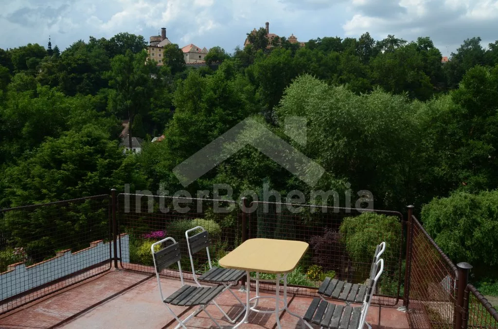 In zuid Bohemen, in de stad Tabor, op loopafstand van het historische centrum. Vanuit uw terras heeft u uitzicht over de tuin, het dal van de rivier Luznice en aan de overkant bovenaan de prachtige burcht Kotnov. Dankzij de rivier die naast de tuin stroomt is dit een ideale stek voor de vissers. Verder kunt u van de mooie stad genieten, fietsen, wandelen, zwemmen, raften en kanovaren en de verscheidene culturele en historische bezienswaardigheden bezoeken. Alle faciliteiten vindt u op loopafstand. Burcht Kotnov 1 km, burchtruïne Kozi Hradek 6 km, Chynov grotten 11 km, burcht Kamen 28 km, burcht Choustnik 20 km, klooster Milevsko 20 km, kasteel Cervena Lhota 30 km en nog veel meer. Tevens behoort een dagtrip naar de hoofdstad Praag op 90 km tot de mogelijkheden. Verder de mooie omliiggende zuidboheemse steden, stadjes en dorpjes zoals Cesky Krumlov, Hluboka nad Vltavou met dierentuin, Trebon, Holasovice en meer.