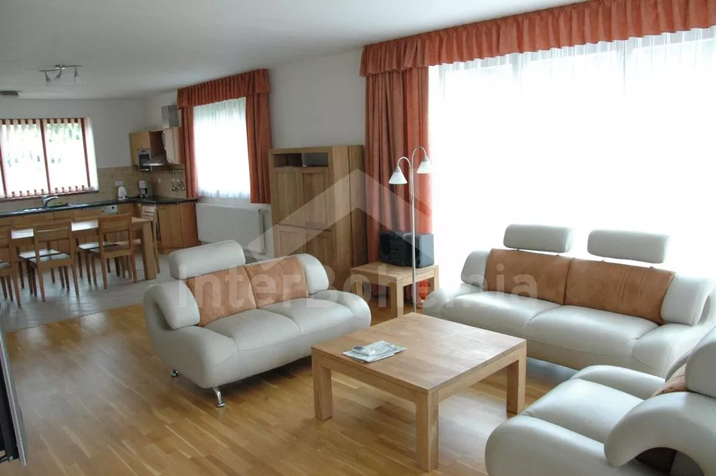 Typ: „Amsterdam“. Volně stojící, luxusní vila, velmi pohodlně zařízená. Přízemí a podkroví. Obytná plocha 265 m2. Velký obývací pokoj se sedací soupravou, jídelním koutem, plynovým krbem, televizí se… Více informací