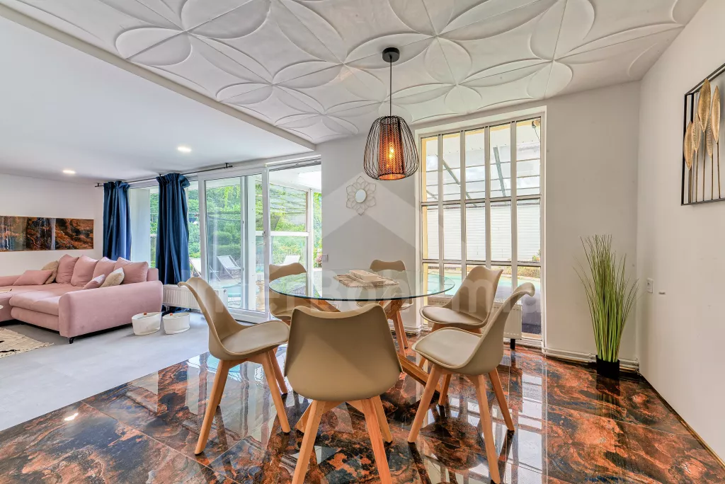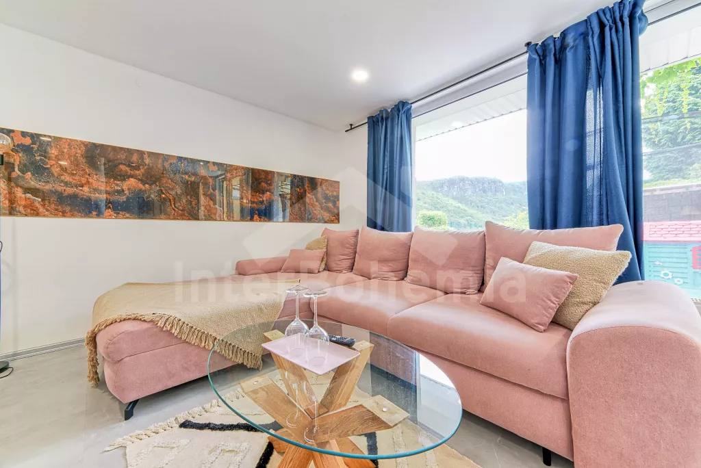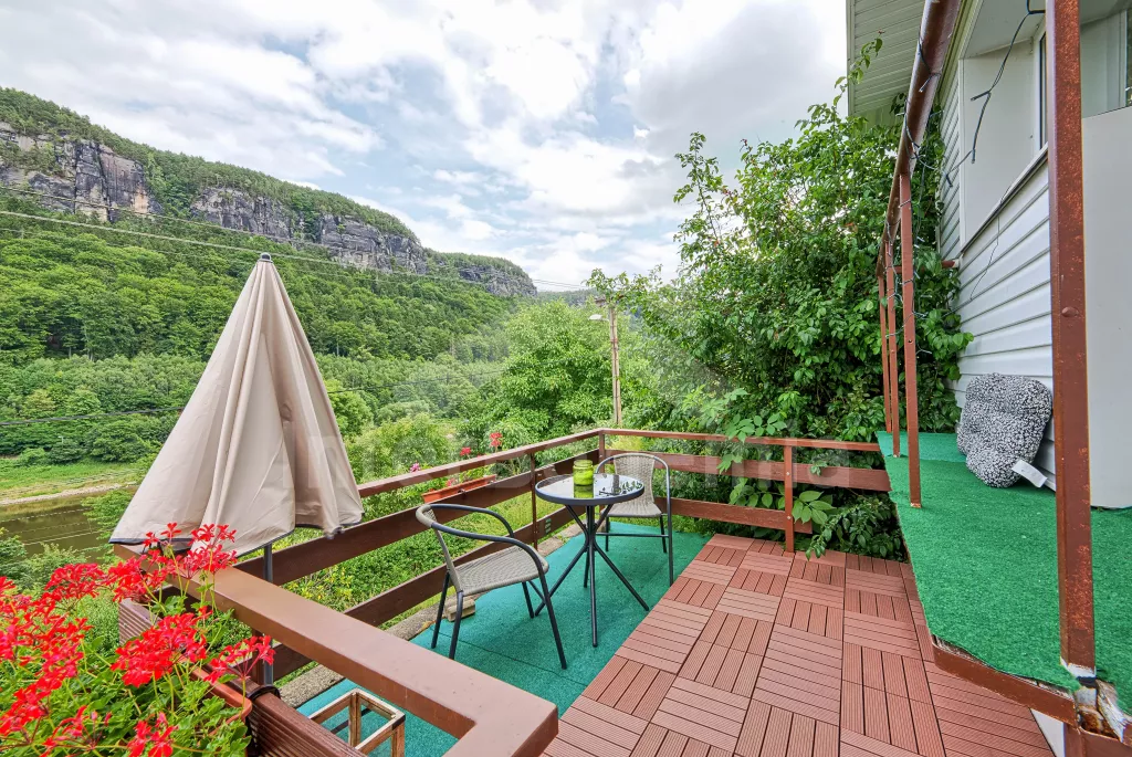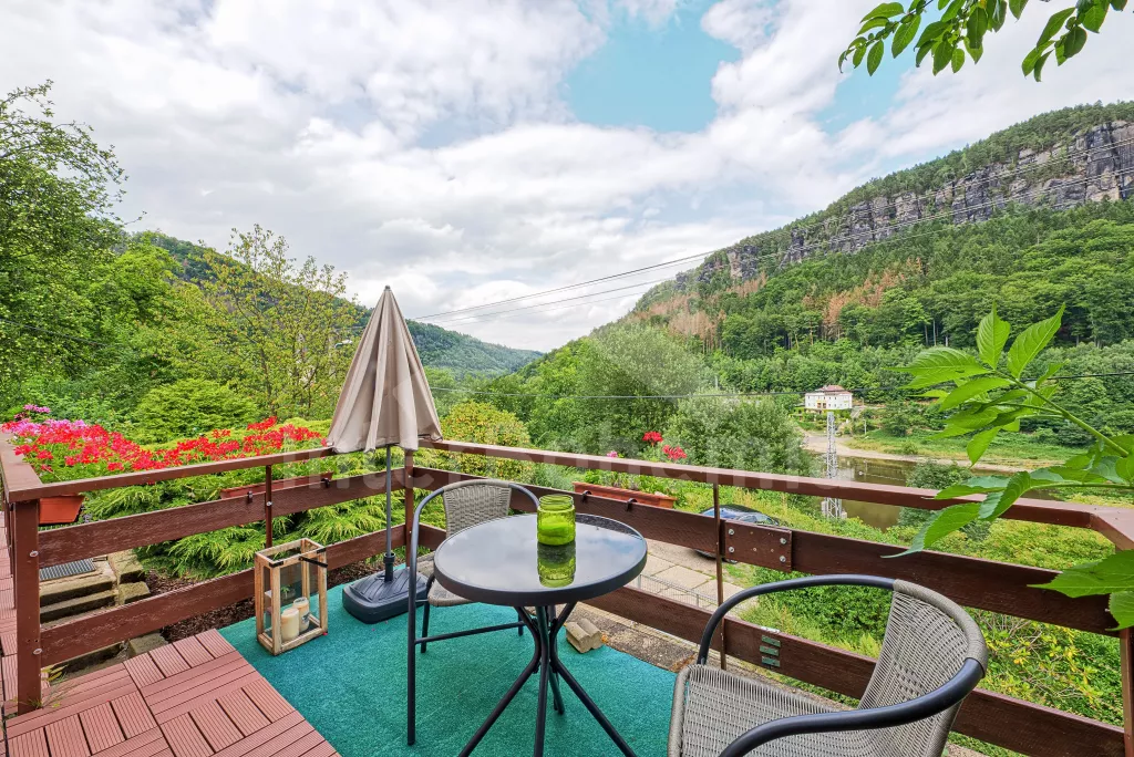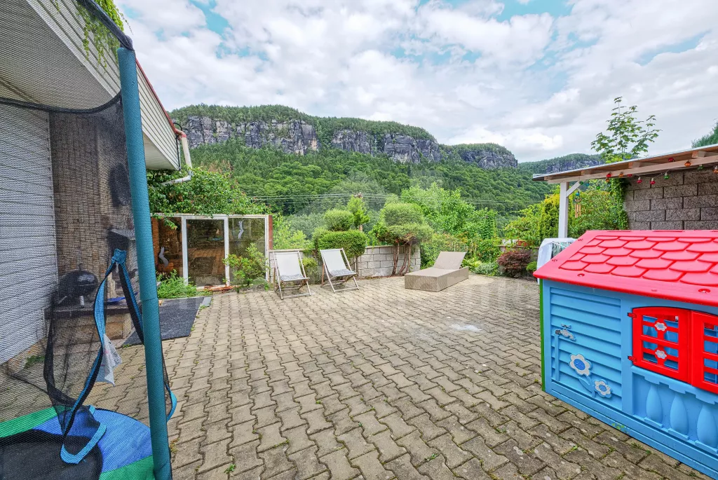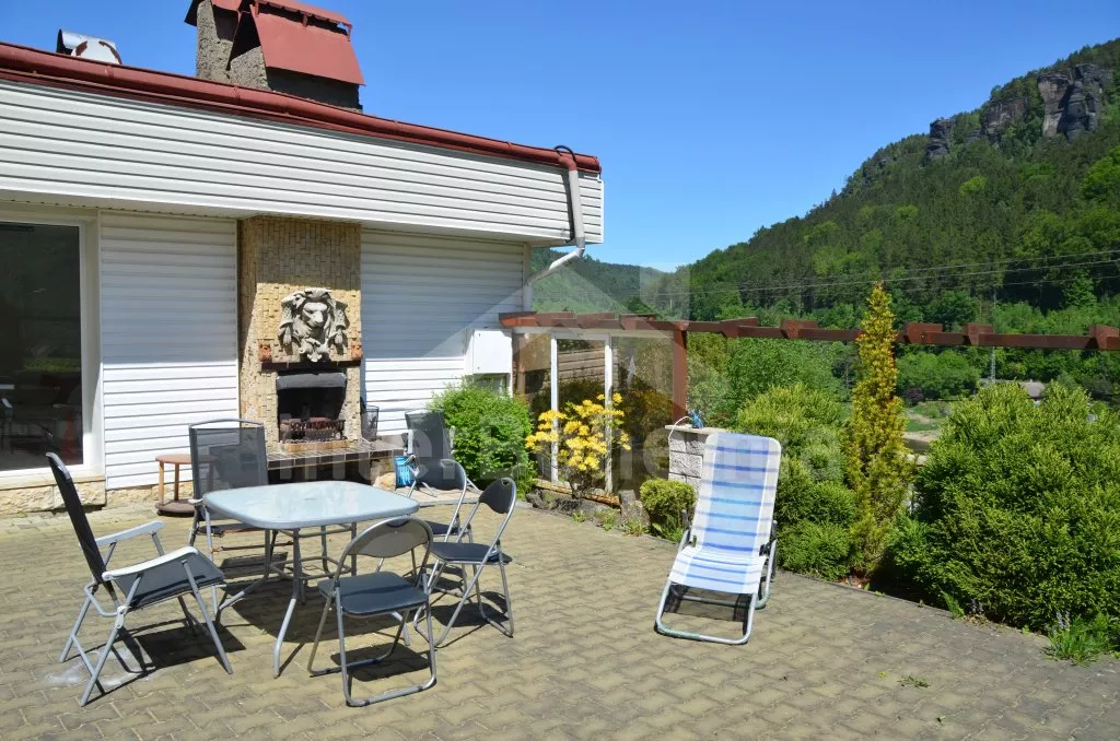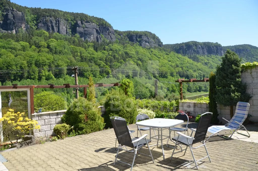 Nádherný výhled z terasy na labské pískovce, krásný bazén s terasou.