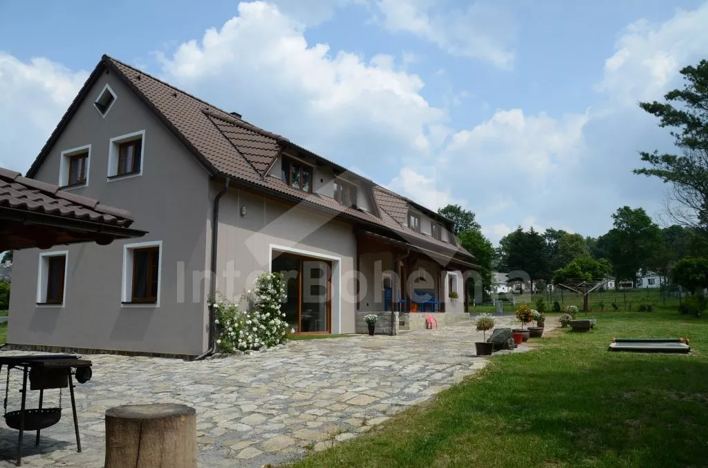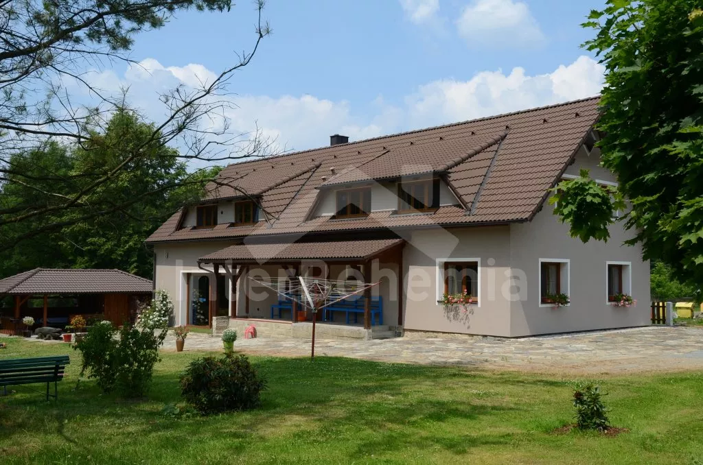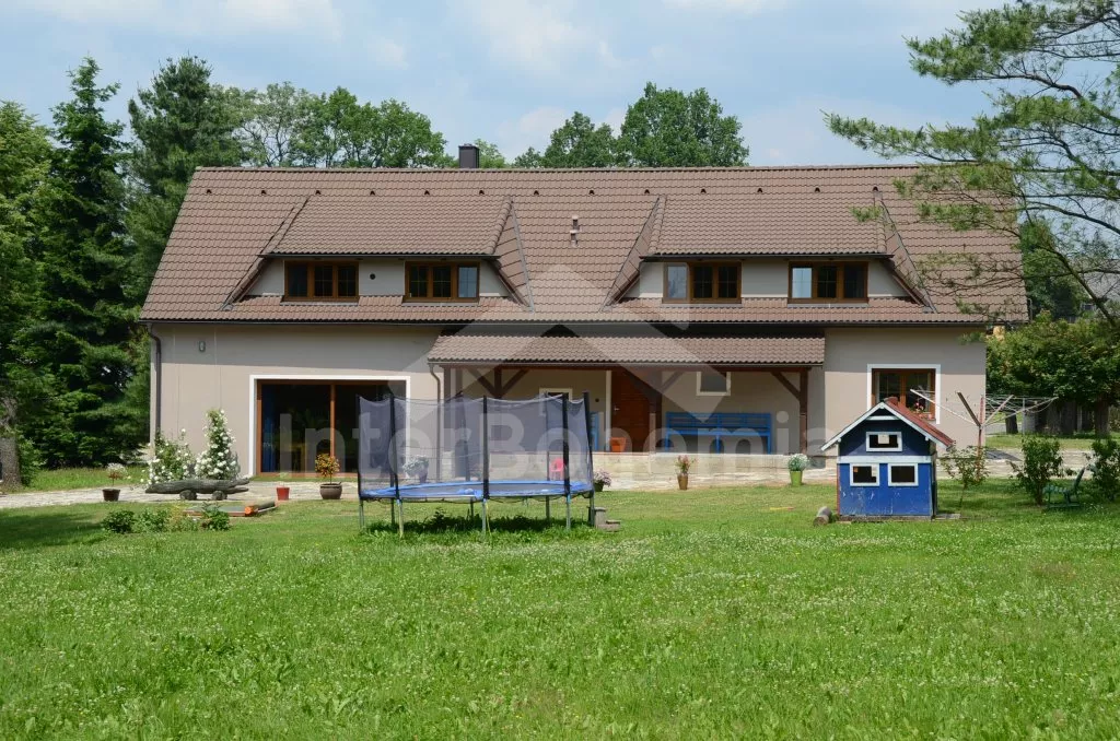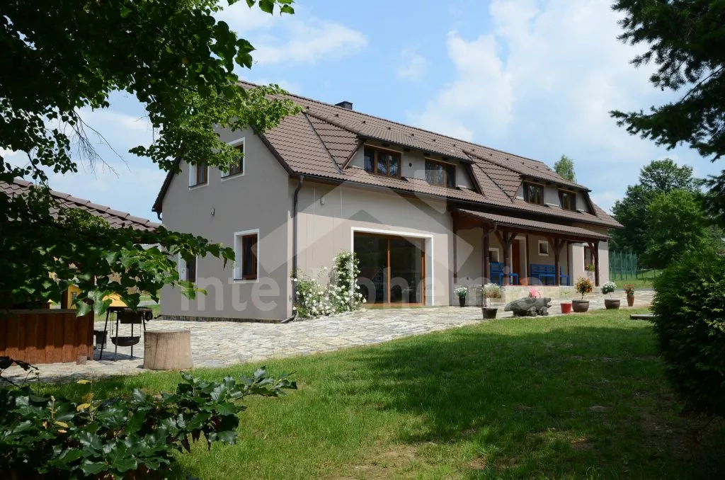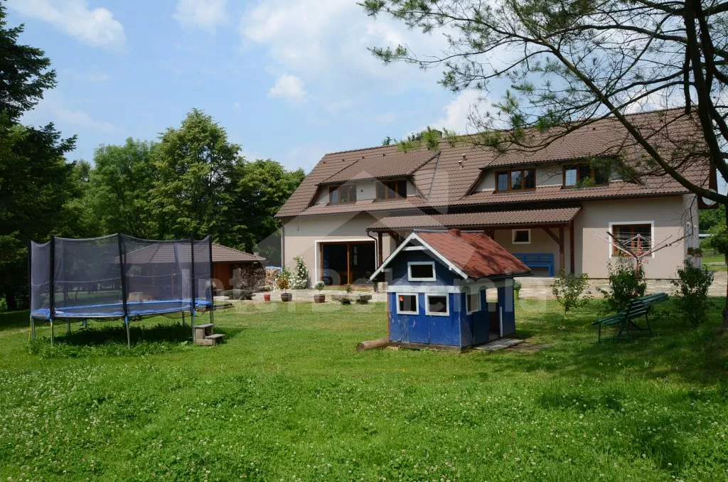 Volně stojící, v roce 2012 kompletně renovovaný, velmi prostorný, naprosto fantastický a luxusní dům s veškerým vybavením a komfortem. Vkusně zrekonstruovaný, vkusně zařízený, s obytnou plochou 270 m2! K dispozici jsou dvě patra, v každém patře je kompletní a plně zařízená bytová jednotka. Vstup, chodba, hala s posezením, prostorný obývací pokoj 50 m2 s posezením a jídelním koutem, krbem a vstupem na zahradu. Otevřená kuchyně s kombinovanou lednicí s mrazákem, elektrickým sporákem s keramickou varnou deskou a horkovzdušnou troubou, digestoří, myčkou nádobí, mikrovlnnou troubou, varnou konvicí a kávovarem. Koupelna s umyvadlem, sprchovým koutem a toaletou, druhá koupelna s vanou, dvojitým umyvadlem a toaletou, samostatná třetí toaleta. Druhá hala se schodištěm do podkroví a vstupem na zastřešenou terasu a do zahrady. Ložnice s dvojlůžkem a umyvadlem, druhá ložnice s dvojlůžkem, třetí ložnice s palandou se 3 lůžky. V podkroví je prostorný obývací pokoj s posezením, dětským koutkem a TV se satelitním příjmem. Prostorný obývací pokoj 50 m2 s prostorným obývacím pokojem, jídelním koutem a krbem. Otevřená kuchyně s lednicí / mrazákem, elektrickým sporákem s keramickou varnou deskou a troubou, odsavačem a myčkou nádobí. Koupelna se sprchovým koutem, umyvadlem a toaletou. Druhá samostatná toaleta. Tři ložnice, každá s jedním dvojlůžkem. Jedna z ložnic má žebříkové schody s patrem s nízkým stropem a přistýlkou pro dvě děti. Vytápění krbem s tepelným rozvodem do pokojů. Dům stojí na velkém pozemku, k dispozici je terasa, zahradní posezení, pergola, krb, dětský domeček, pískoviště, houpačka a trampolína. Soukromé parkoviště.
