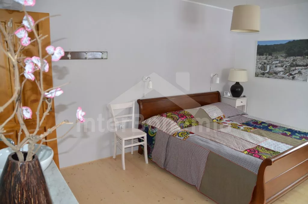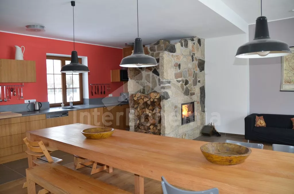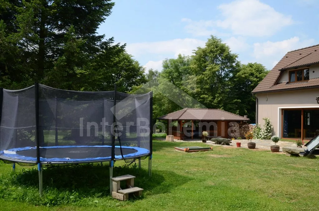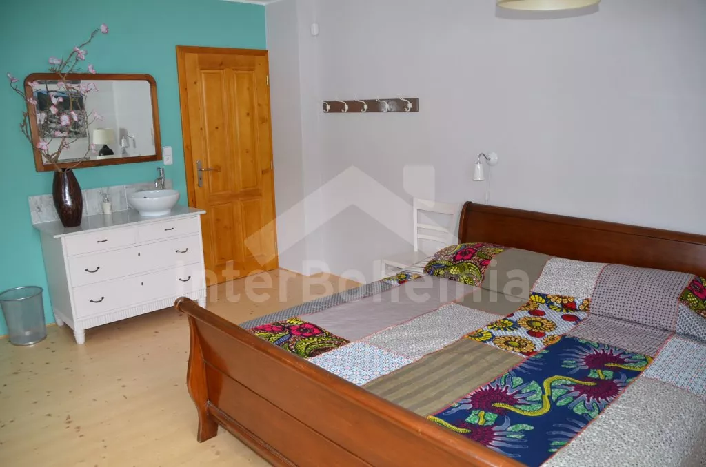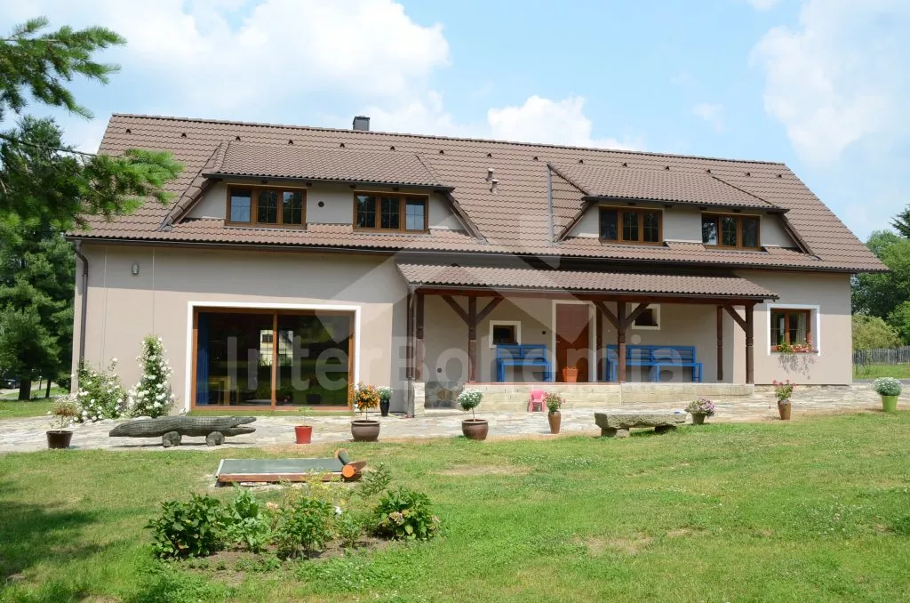 Volně stojící, v roce 2012 kompletně renovovaný, velmi prostorný, naprosto fantastický a luxusní dům s veškerým vybavením a komfortem. Vkusně zrekonstruovaný, vkusně zařízený, s obytnou plochou 270 m2! K dispozici jsou dvě patra, v každém patře je kompletní a plně zařízená bytová jednotka. Vstup, chodba, hala s posezením, prostorný obývací pokoj 50 m2 s posezením a jídelním koutem, krbem a vstupem na zahradu. Otevřená kuchyně s kombinovanou lednicí s mrazákem, elektrickým sporákem s keramickou varnou deskou a horkovzdušnou troubou, digestoří, myčkou nádobí, mikrovlnnou troubou, varnou konvicí a kávovarem. Koupelna s umyvadlem, sprchovým koutem a toaletou, druhá koupelna s vanou, dvojitým umyvadlem a toaletou, samostatná třetí toaleta. Druhá hala se schodištěm do podkroví a vstupem na zastřešenou terasu a do zahrady. Ložnice s dvojlůžkem a umyvadlem, druhá ložnice s dvojlůžkem, třetí ložnice s palandou se 3 lůžky. V podkroví je prostorný obývací pokoj s posezením, dětským koutkem a TV se satelitním příjmem. Prostorný obývací pokoj 50 m2 s prostorným obývacím pokojem, jídelním koutem a krbem. Otevřená kuchyně s lednicí / mrazákem, elektrickým sporákem s keramickou varnou deskou a troubou, odsavačem a myčkou nádobí. Koupelna se sprchovým koutem, umyvadlem a toaletou. Druhá samostatná toaleta. Tři ložnice, každá s jedním dvojlůžkem. Jedna z ložnic má žebříkové schody s patrem s nízkým stropem a přistýlkou pro dvě děti. Vytápění krbem s tepelným rozvodem do pokojů. Dům stojí na velkém pozemku, k dispozici je terasa, zahradní posezení, pergola, krb, dětský domeček, pískoviště, houpačka a trampolína. Soukromé parkoviště.