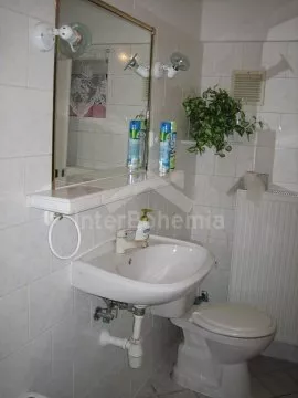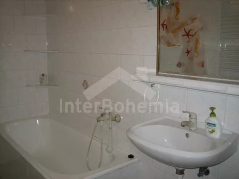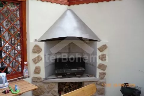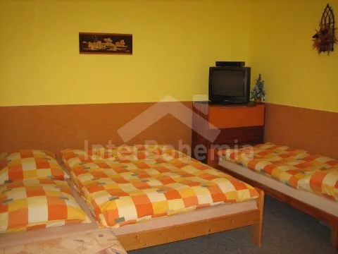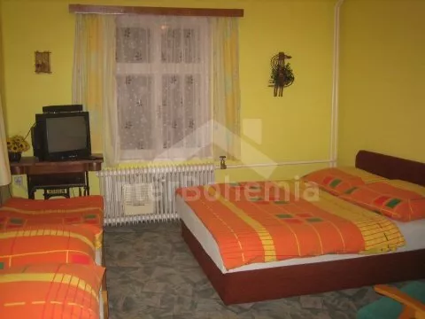 Volně stojící vila ze třicátých let. Vstup, chodba, společenská místnost se stoly a lavicemi, krbem a stolním tenisem. Obytná kuchyně s jídelním stolem pro 8 osob, plynovým sporákem s elektrickou troubou, lednicí, kávovarem, varnou konvicí a mikrovlnnou troubou. Ložnice s dvojlůžkem, dvěma samostatnými lůžky a televizí se satelitním příjmem. Druhá ložnice s dvojlůžkem, jedním samostatným lůžkem, dvěma přistýlkami a televizí se satelitním příjmem. Koupelna s vanou, sprchou a toaletou. V patře se nachází malá hala, druhá koupelna se sprchou a toaletou, druhá kuchyně s jídelním stolem pro 4 osob, plynovým sporákem s elektrickou troubou, lednicí, varnou konvicí a mikrovlnnou troubou. Dále třetí ložnice s dvojlůžkem, jedním samostatným lůžkem a televizí se satelitním příjmem. Ústřední plynové topení. Zahrada je oplocená, k dispozici je dřevěný zahradní nábytek, ohniště, pískoviště, houpačka, skluzavka, zahradní domeček pro děti a hezký zapuštěný bazén 7 m x 3 m se solárním ohřevem. Vlastní parkoviště.
