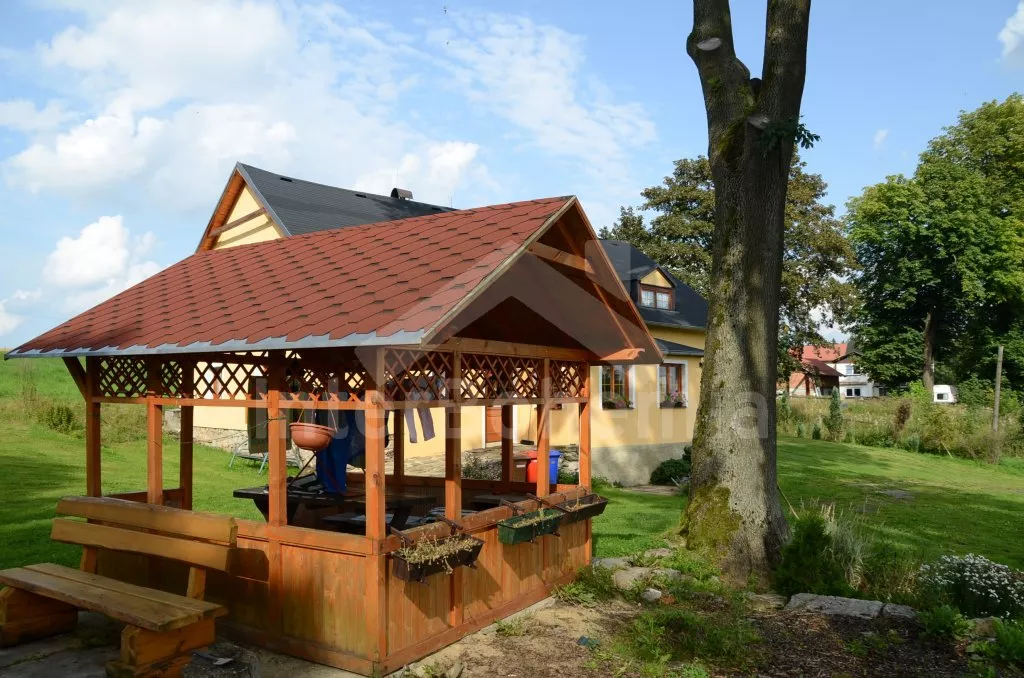 Volně stojící vila, účelně a hezky zařízená. Vstup, chodba, obývací pokoj se sedací soupravou, krbem, televizí se satelitním příjmem a vstupem na terasu. Kuchyně s elektrickým sporákem s keramickou varnou deskou, lednicí, myčkou na nádobí, kávovarem, varnou konvicí, mikrovlnnou troubou a toustovačem. Jídelna se třemi stoly pro celkem 12 osob. Koupelna se sprchou a toaletou, druhá samostatná toaleta. V patře se nachází malá hala, koupelna a tři ložnice. První ložnice s dvojlůžkem a dvěma samostatnými lůžky, druhá ložnice s dvojlůžkem a dvěma samostatnými lůžky je průchozí do třetí ložnice s dvojlůžkem a rozkládací pohovkou (přistýlka pro 2 osoby). Dvě z ložnic jsou vybaveny televizí se satelitním příjmem. Objekt je vytápěn tepelným čerpadlem a krbem. Vila stojí na neoploceném pozemku, k dispozici je zahradní altán s dřevěným zahradním nábytkem, zahradní nábytek, zahradní gril, pískoviště a houpačka. U domu je dostatek prostoru k parkování.