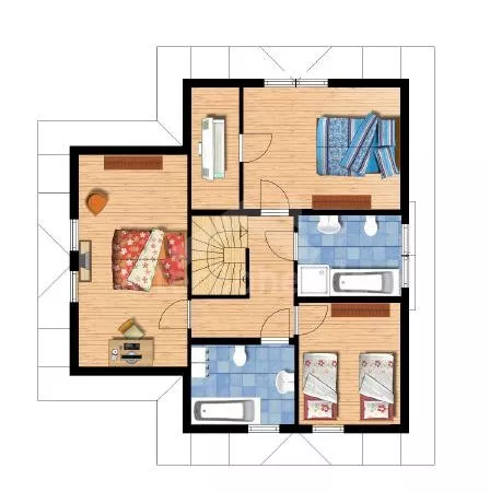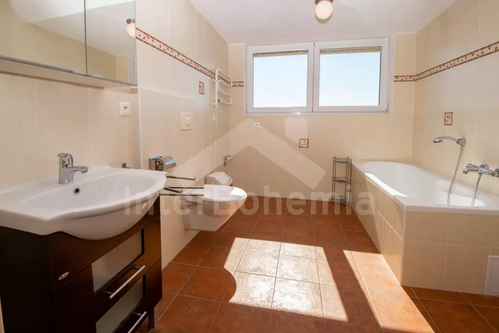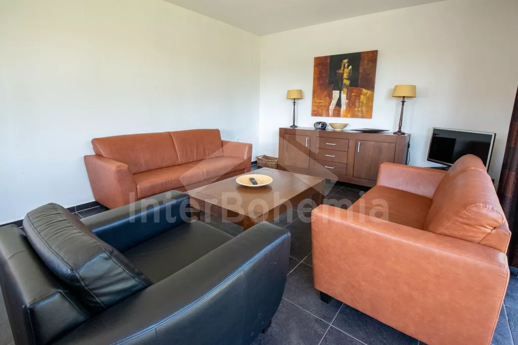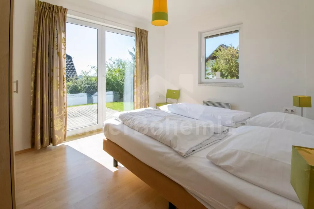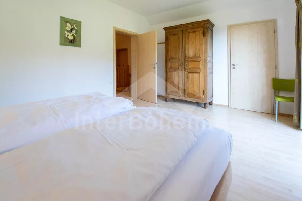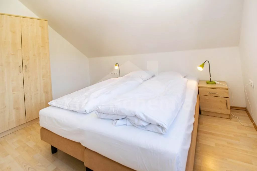 Typ BETA. Volně stojící vila, v roce 2008 nově postavená a nově zařízená. Obytná plocha 200 m2. Vstup, hala, obývací pokoj se sedací soupravou, jídelním stolem, kabelovou televizí a vstupem na terasu. Otevřená kuchyně s keramickou varnou deskou, troubou, lednicí, myčkou na nádobí, kávovarem, varnou konvicí a mikrovlnnou troubou. Koupelna se sprchou a toaletou. Dvojlůžková ložnice. V patře se nachází další dvě koupelny s vanou a toaletou a dále tři dvojlůžkové ložnice. Vytápění. Zahrada, prostorná terasa se zahradním nábytkem. Garáž.