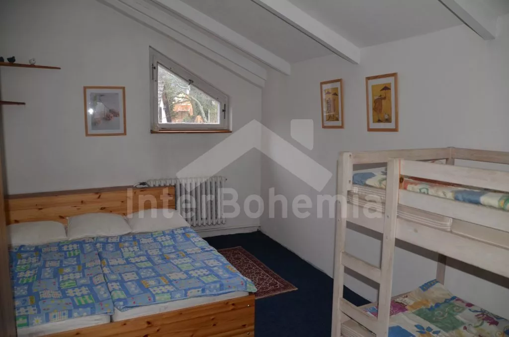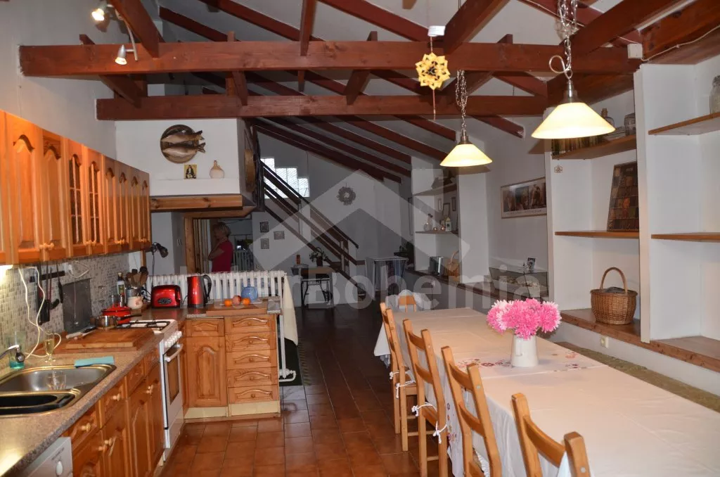 Samostatně stojící vila, jedinečně navržená a velmi pěkně a prakticky vybavená. Vila je hravým způsobem postavena v různých úrovních, disponuje 5ti ložnicemi a obývacím prostorem o rozloze téměř 200 m2. Vstupní hala, obývací pokoj s posezením, krbem, TV se satelitním příjmem a jídelním stolem pro 4 osoby. Prostorná kuchyně s jídelním stolem pro 12 osob, lednicí / mrazákem, elektrickou troubou a 4 plotýnkami, myčkou na nádobí, mikrovlnnou troubou, kávovarem a přístupem na terasu. Ložnice s manželskou postelí a dětskou postýlkou. Koupelna s vanou, sprchovým koutem, dvěma umyvadly a toaletou. V patře se nachází chodba, toaleta a čtyři ložnice. Tři s jedním dvojlůžkem a čtvrtá s jedním dvojlůžkem a palandou. Ústřední vytápění kamny. K dispozici je oplocená zahrada s terasou s pergolou a dřevěným nábytkem a grilem, bazén 9 x 4,5 m široký a 1,6 m hluboký se slanou vodou. Soukromé parkoviště.