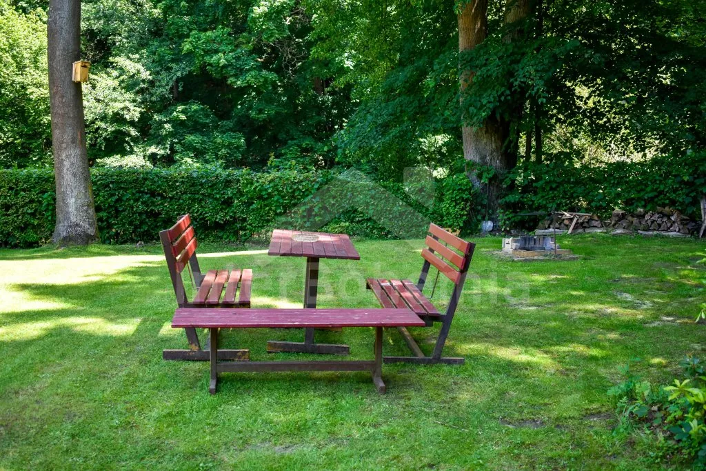 Hosté mají k dispozici velkou zahradu se saunou, koupacím sudem s funkcí vířivky, zahradním posezením a ohništěm s grilovacím roštem. Myslelo se i na děti, které zajisté ocení pískoviště, prolézačky, možnost půjčení hracího setu na badminton a petanque, míčů na fotbal/volejbal/basketbal a nafukovacího příslušenství pro vodní radovánky. Parkování 250 m od objektu pro 4 automobily (přechod lávky přes řeku, dále cesta až k chatě), terénní vozy mohou zajet až k objektu (přebrodit řeku).