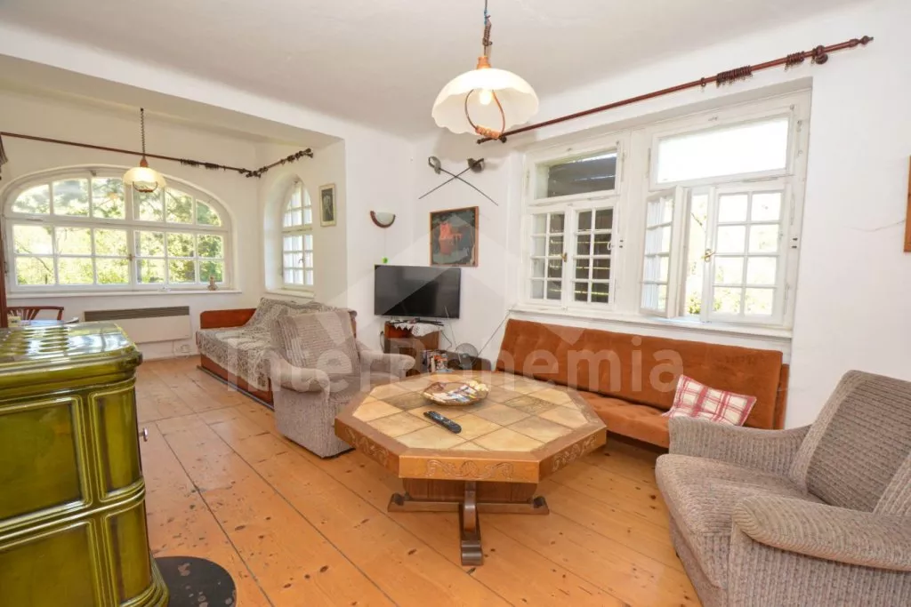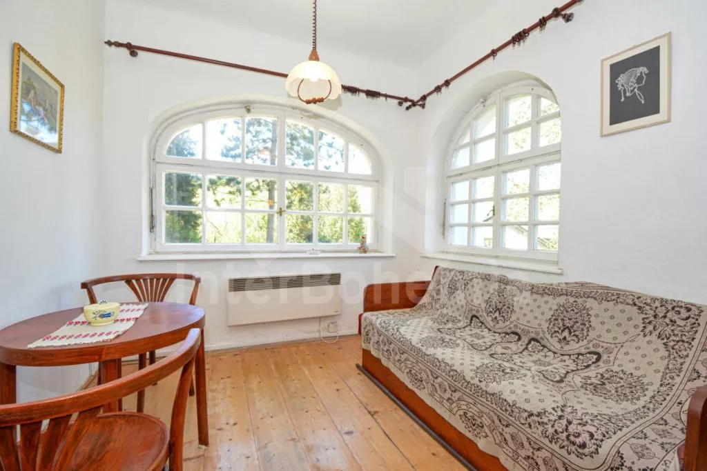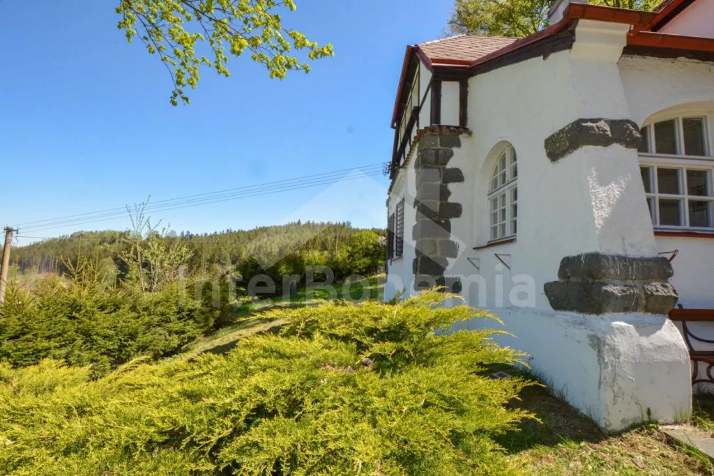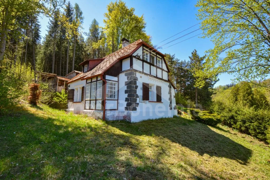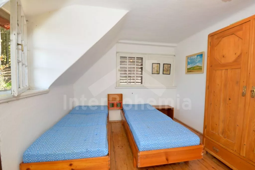 Jedinečná prvorepubliková vila z roku 1907 na vlastním oploceném pozemku, po částečné rekonstrukci v roce 2017. Vstup, hala, prostorná kuchyně s jídelním stolem pro 5 osob. Kuchyňská linka se sporákem (elektrický), troubou, mikrovlnnou troubou, lednicí s integrovaným mrazákem, kávovarem, rychlovarnou konvicí, toustovačem a nádobím. Obývací pokoj s centrálními dominantními krbovými kamny, sedací soupravou (extra lůžko pro 2 osoby), konferenčním stolkem a LCD televizí. V podkroví se nacházejí 2 ložnice, první s dvoulůžkem a jedním jednolůžkem, druhá s dvěma jednolůžky. Z první ložnice je pěkný výhled na údolí a protilehlé kopce. V přízemí koupelna s vanou (výhled do lesa), umyvadlem a WC. Vytápění objektu elektrickými přímotopy a lokálně kamny. Hosté mají k dispozici oplocenou zahradu, zahradní posezení, kamenný gril a ohniště. Vstup do lesa přímo z pozemku. Parkování před objektem pro 2 automobily.