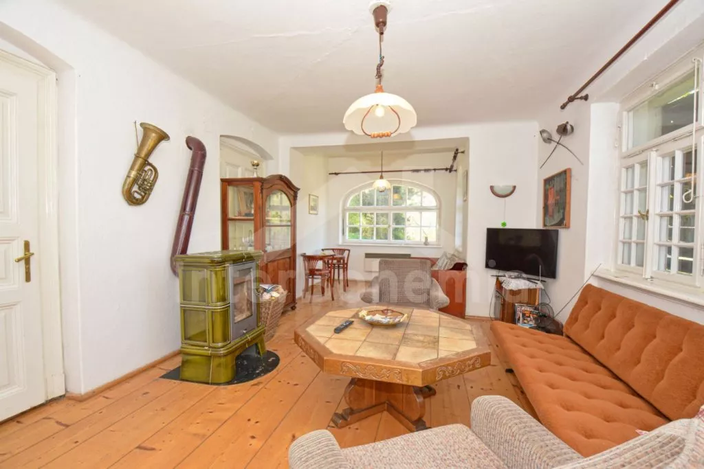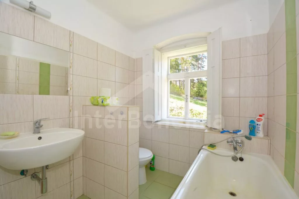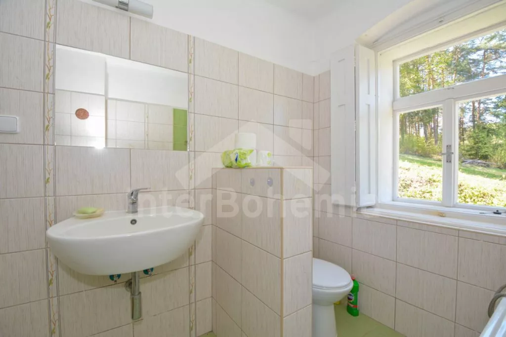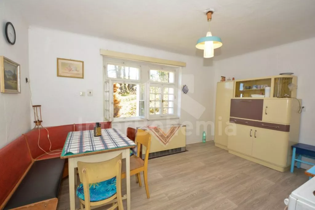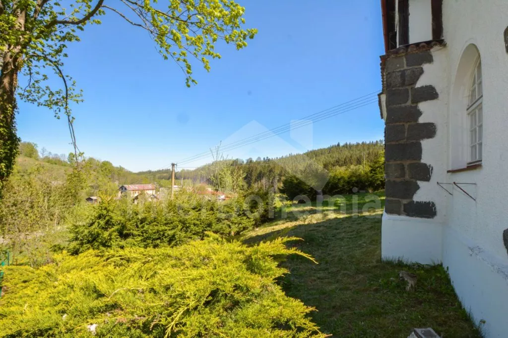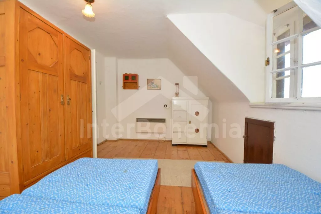 Jedinečná prvorepubliková vila z roku 1907 na vlastním oploceném pozemku, po částečné rekonstrukci v roce 2017. Vstup, hala, prostorná kuchyně s jídelním stolem pro 5 osob. Kuchyňská linka se sporákem (elektrický), troubou, mikrovlnnou troubou, lednicí s integrovaným mrazákem, kávovarem, rychlovarnou konvicí, toustovačem a nádobím. Obývací pokoj s centrálními dominantními krbovými kamny, sedací soupravou (extra lůžko pro 2 osoby), konferenčním stolkem a LCD televizí. V podkroví se nacházejí 2 ložnice, první s dvoulůžkem a jedním jednolůžkem, druhá s dvěma jednolůžky. Z první ložnice je pěkný výhled na údolí a protilehlé kopce. V přízemí koupelna s vanou (výhled do lesa), umyvadlem a WC. Vytápění objektu elektrickými přímotopy a lokálně kamny. Hosté mají k dispozici oplocenou zahradu, zahradní posezení, kamenný gril a ohniště. Vstup do lesa přímo z pozemku. Parkování před objektem pro 2 automobily.